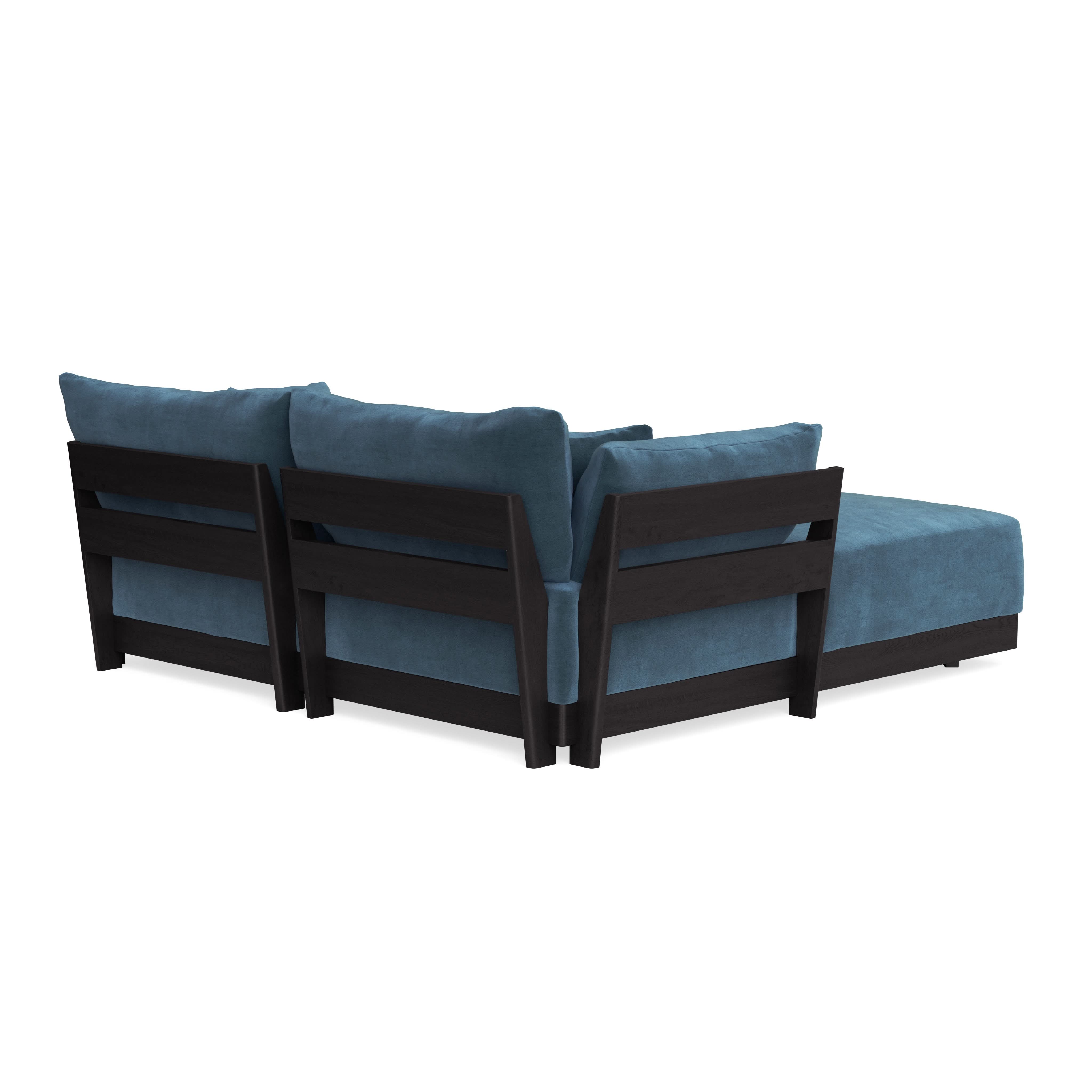 Modular Bondi Black 2-Seater Sectional in Oxford Blue | Memory Foam Blend