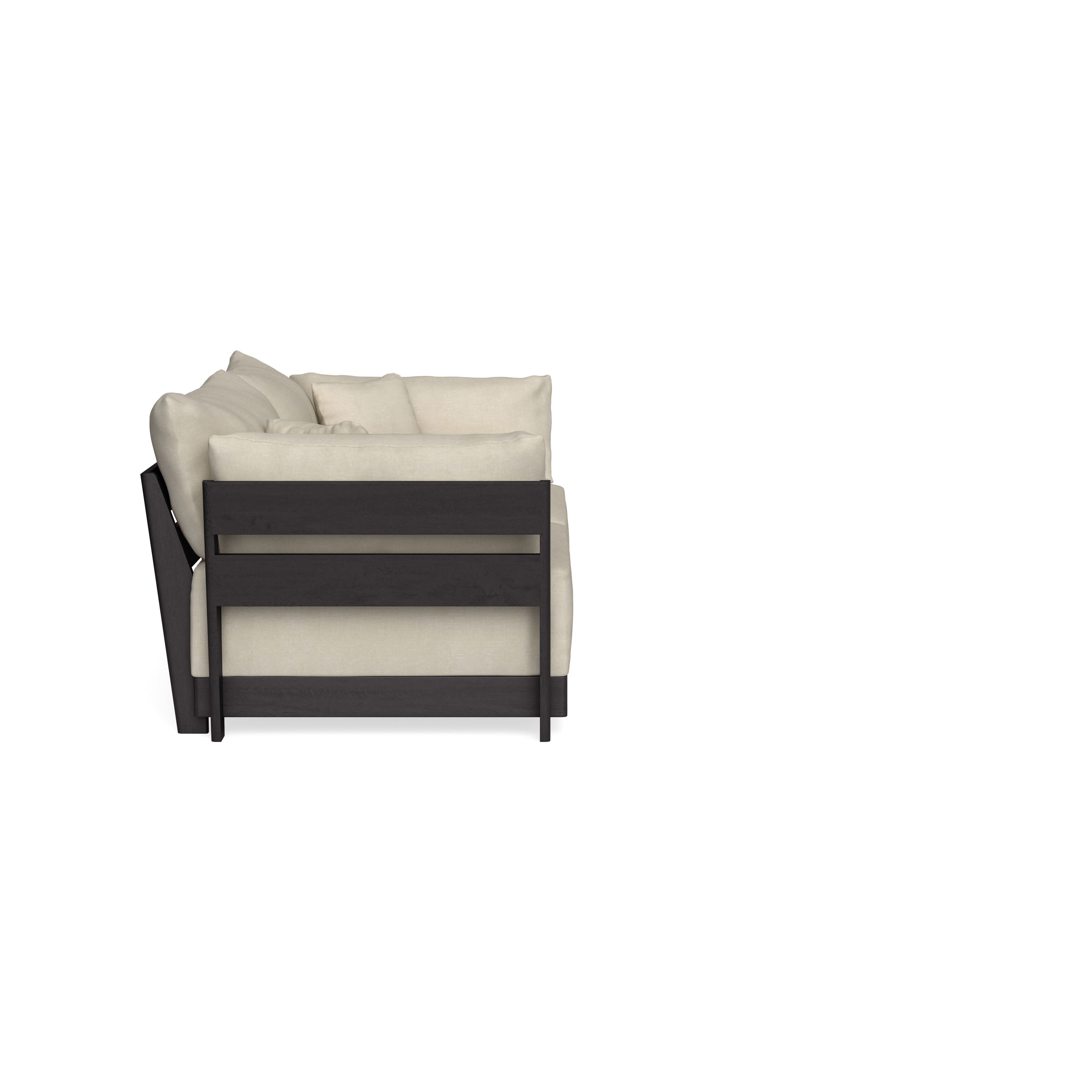 Made to move and adapt with your ever-changing lifestyle. Every patent pending seat block is alike and can be used in the middle, on the end, or as a corner piece in your sofa. Likewise, every slatted solid wood panel is identical and can be used as either an “arm” or a “back”. And the ottomans? Also adaptable! Ottomans can stand alone or serve as an extension to your sofa by connecting to any seat module at its base.
