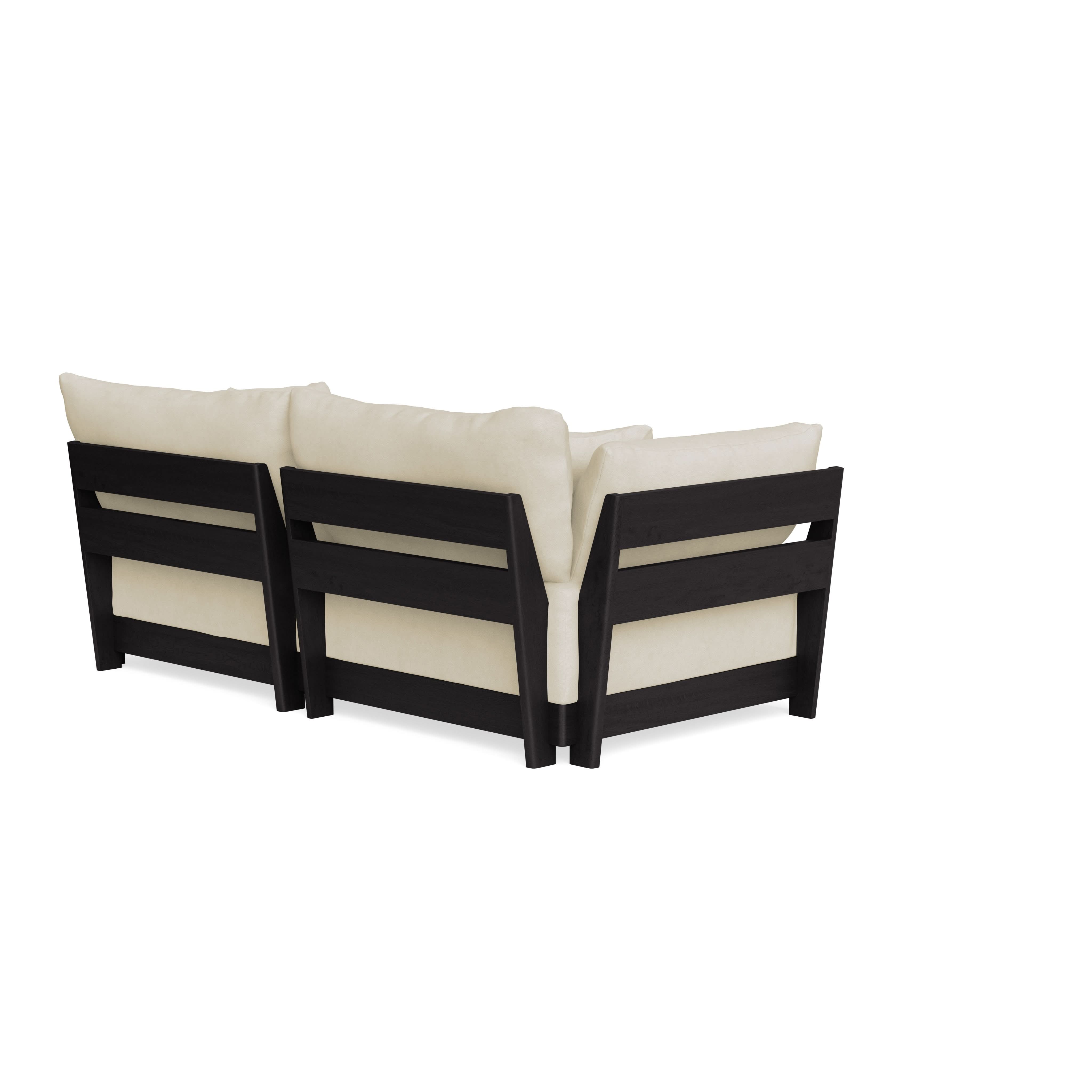 Every seat block is alike and can be used in the middle, on the end, or as a corner piece in your sofa. Each solid wood arm/back panel is identical and can be attached to any three sides of a seat block. Ottomans are adaptable too, as they can stand alone or serve as an extension to your sofa by being attached to any seat block at its base. Note that arm/back panels cannot be attached to an ottoman base.