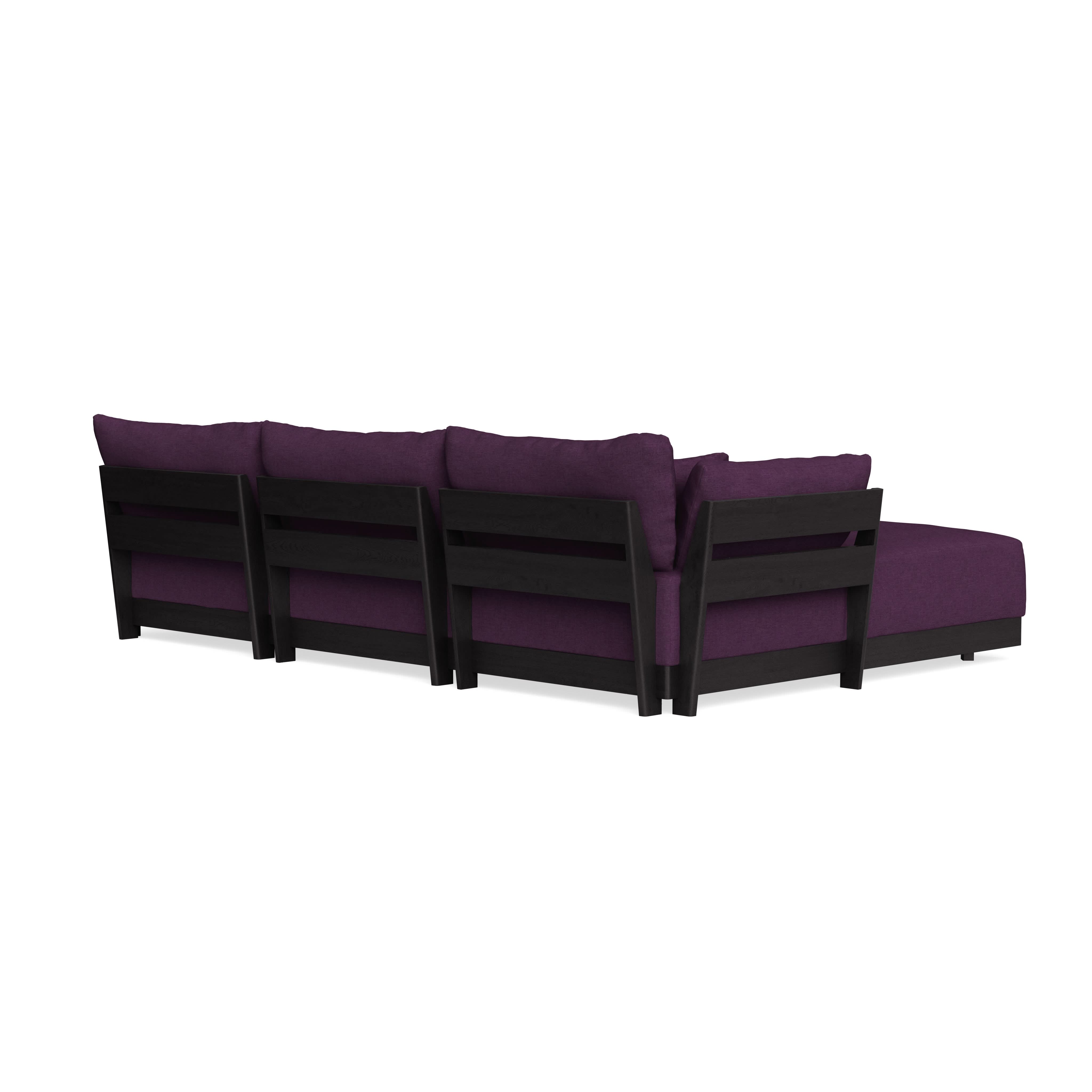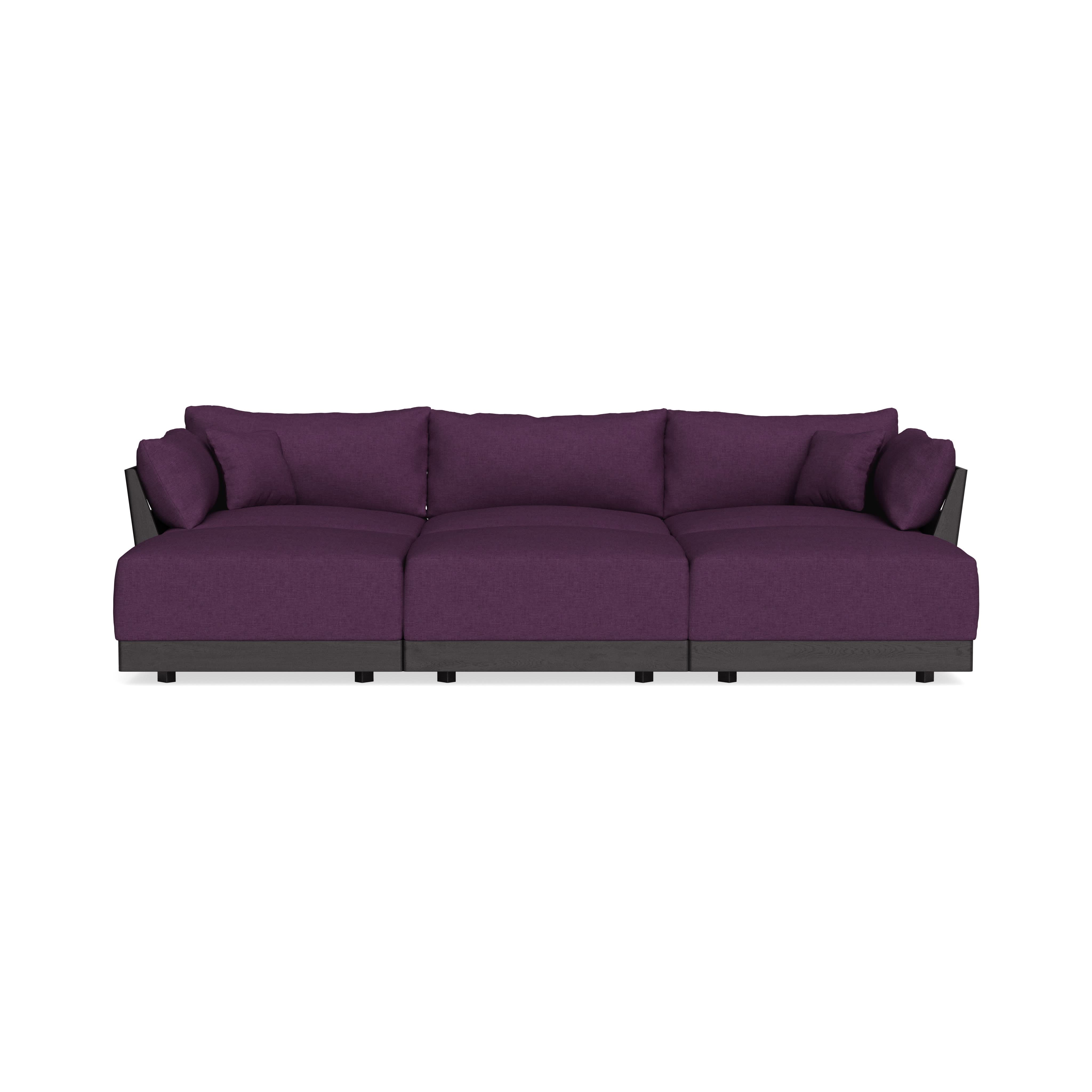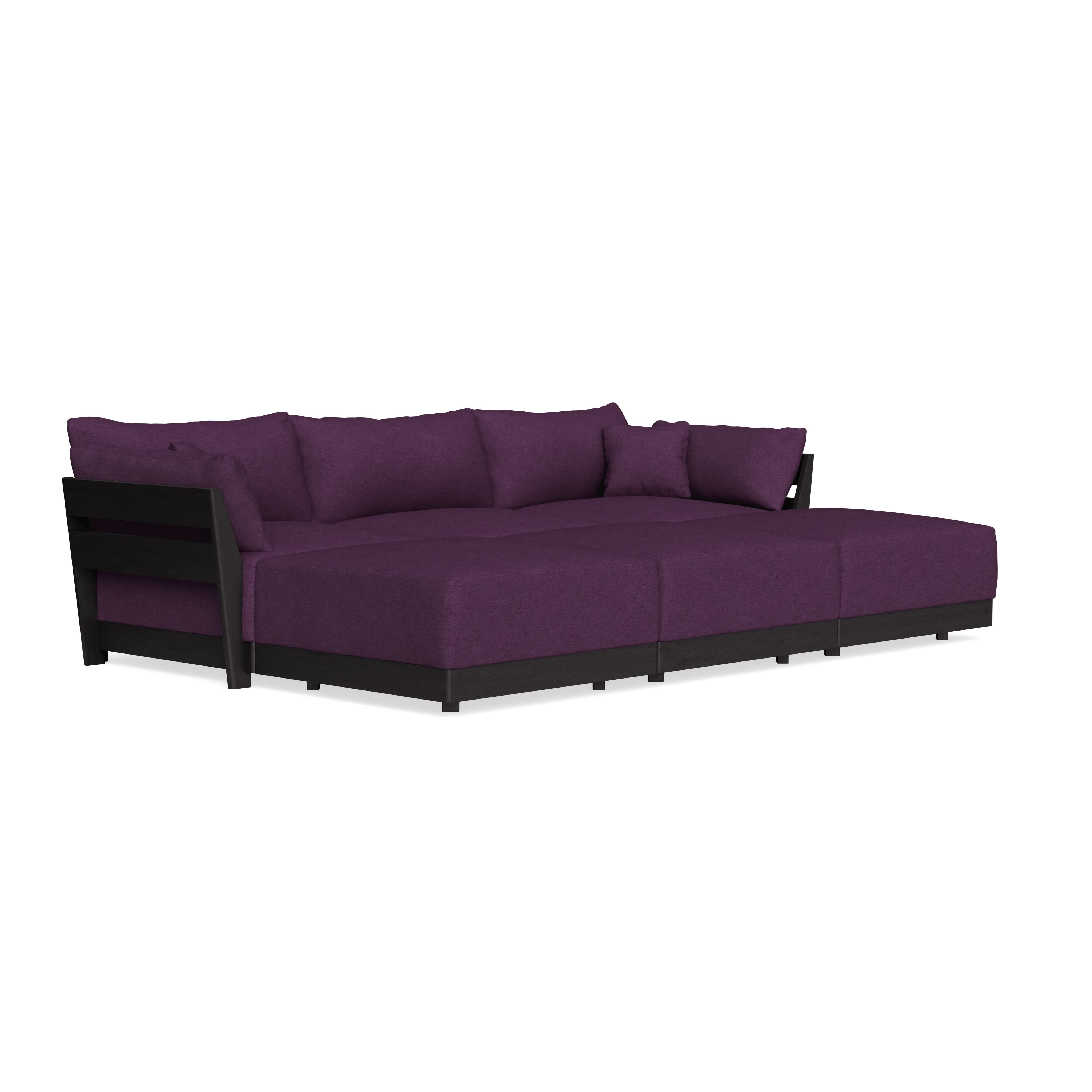 Modular Bondi Black 3-Seater Daybed Sofa Sectional in Aubergine | Memory Foam Blend