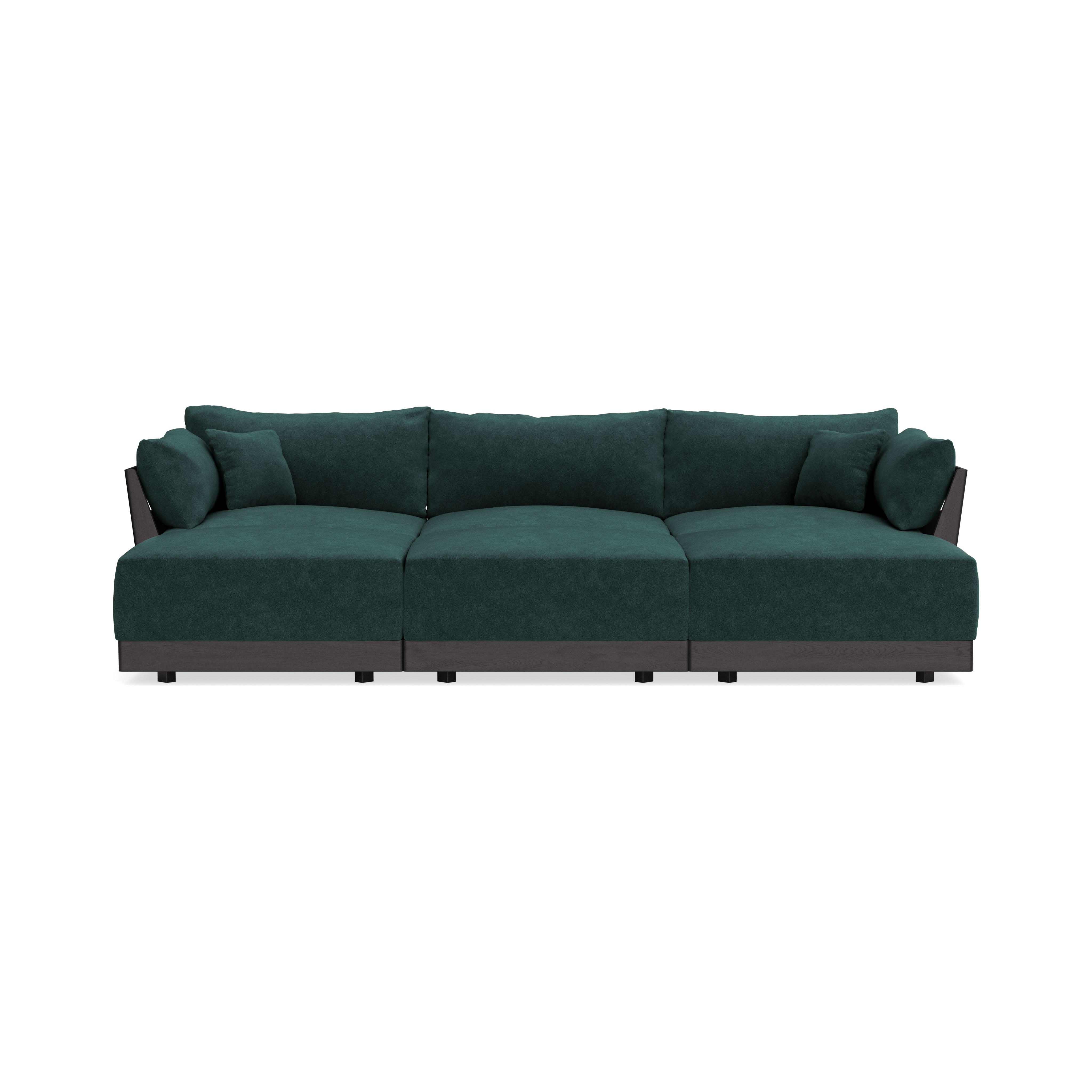 Modular Bondi Black 3-Seater Daybed Sofa Sectional in Harbor Blue | Classic Blend