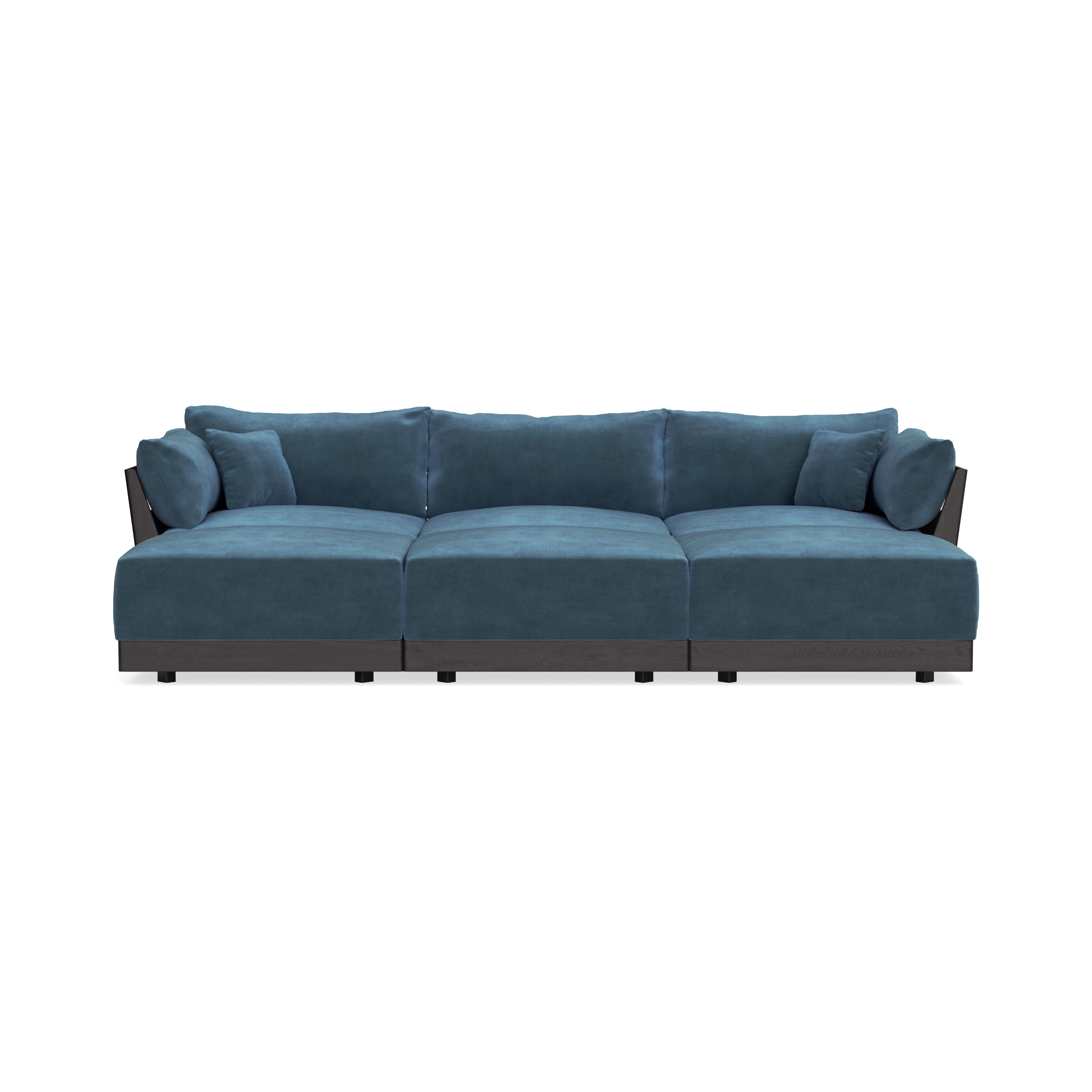 Modular Bondi Black 3-Seater Daybed Sofa Sectional in Oxford Blue | Memory Foam Blend