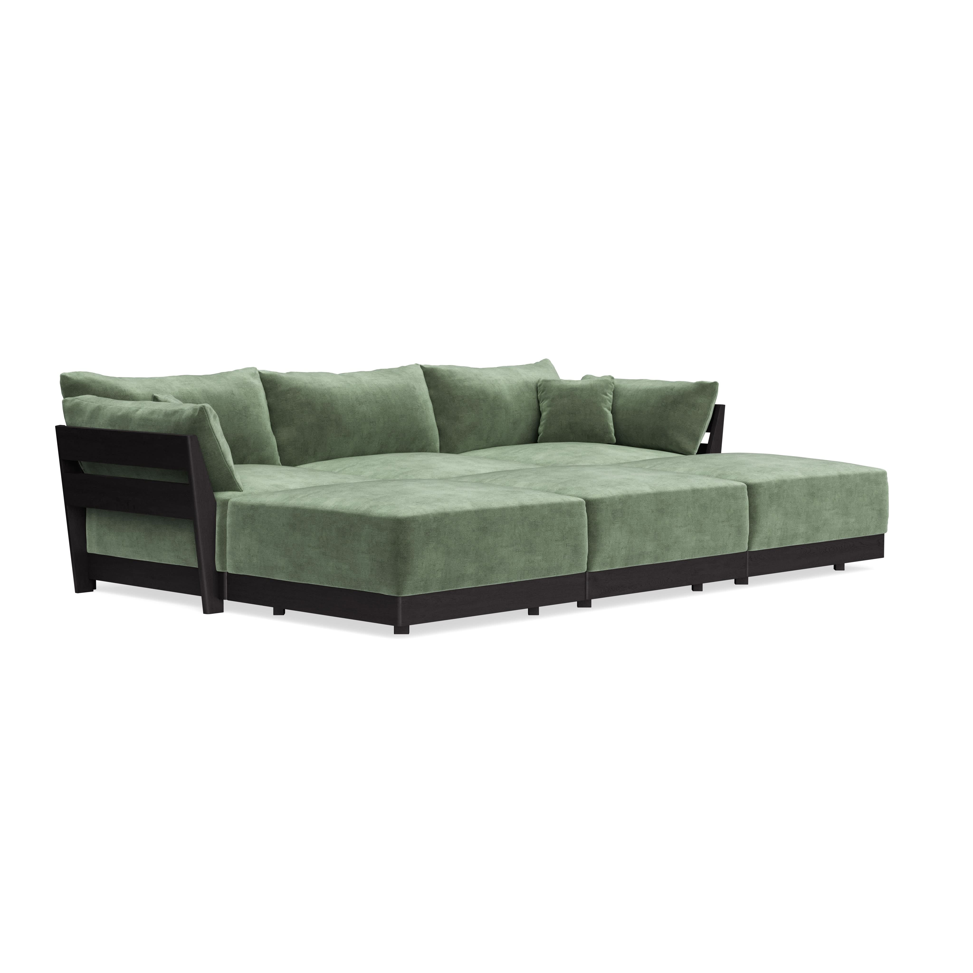 Modular Bondi Black 3-Seater Daybed Sofa Sectional in Rosemary | Memory Foam Blend