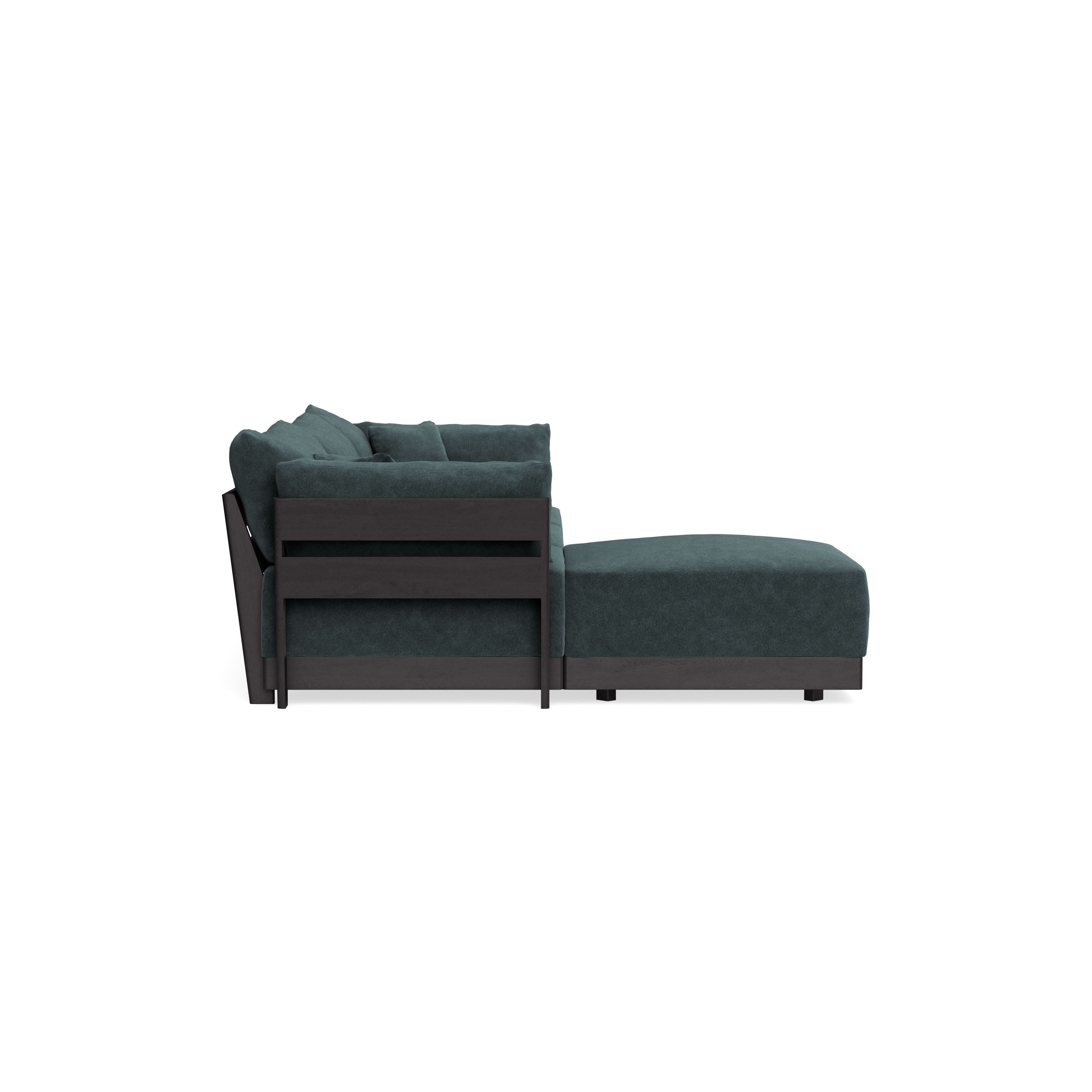 Made to move and adapt with your ever-changing lifestyle. Every patent pending seat block is alike and can be used in the middle, on the end, or as a corner piece in your sofa. Likewise, every slatted solid wood panel is identical and can be used as either an “arm” or a “back”. And the ottomans? Also adaptable! Ottomans can stand alone or serve as an extension to your sofa by connecting to any seat module at its base.