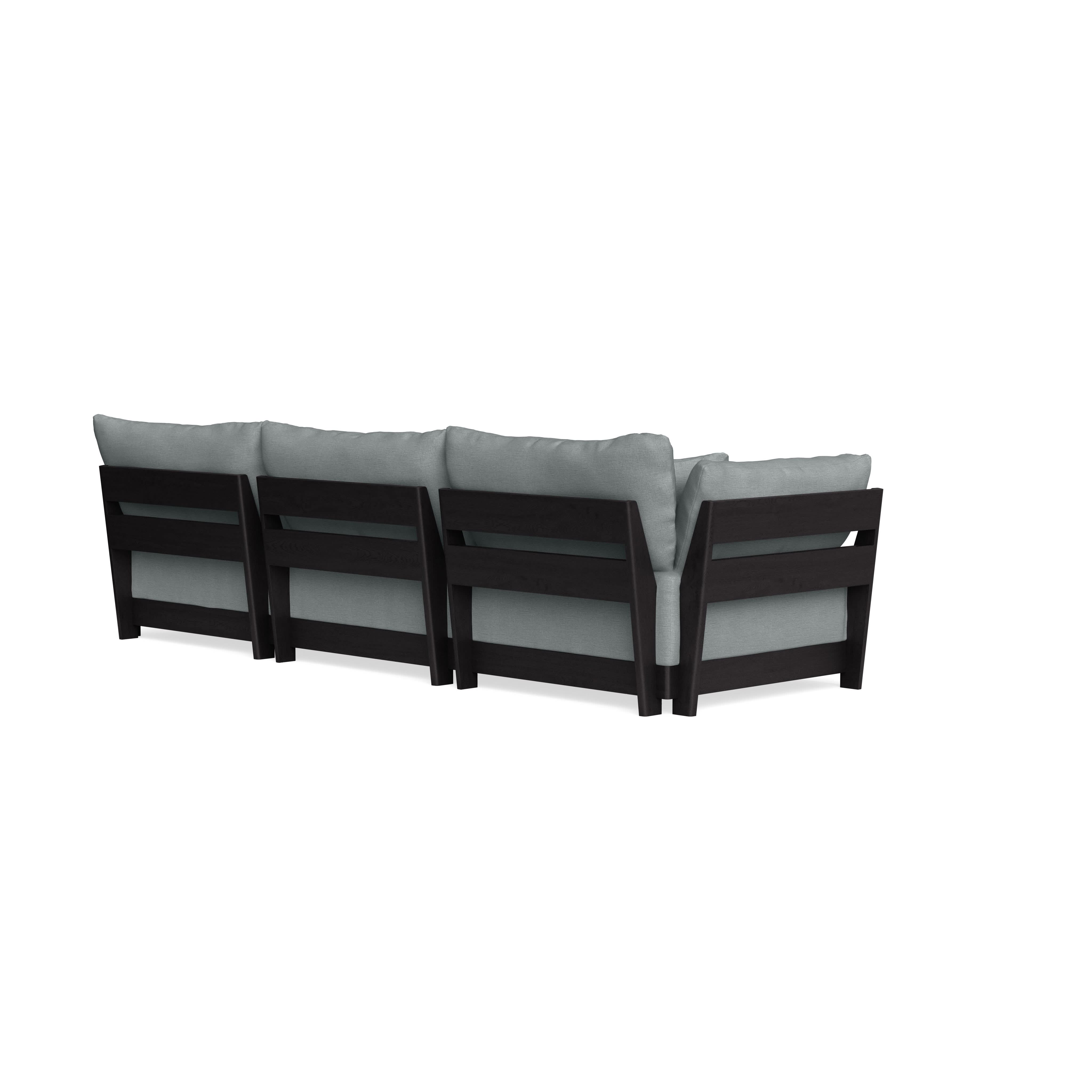 Made to move and adapt with your ever-changing lifestyle. Every patent pending seat block is alike and can be used in the middle, on the end, or as a corner piece in your sofa. Likewise, every slatted solid wood panel is identical and can be used as either an “arm” or a “back”. And the ottomans? Also adaptable! Ottomans can stand alone or serve as an extension to your sofa by connecting to any seat module at its base.