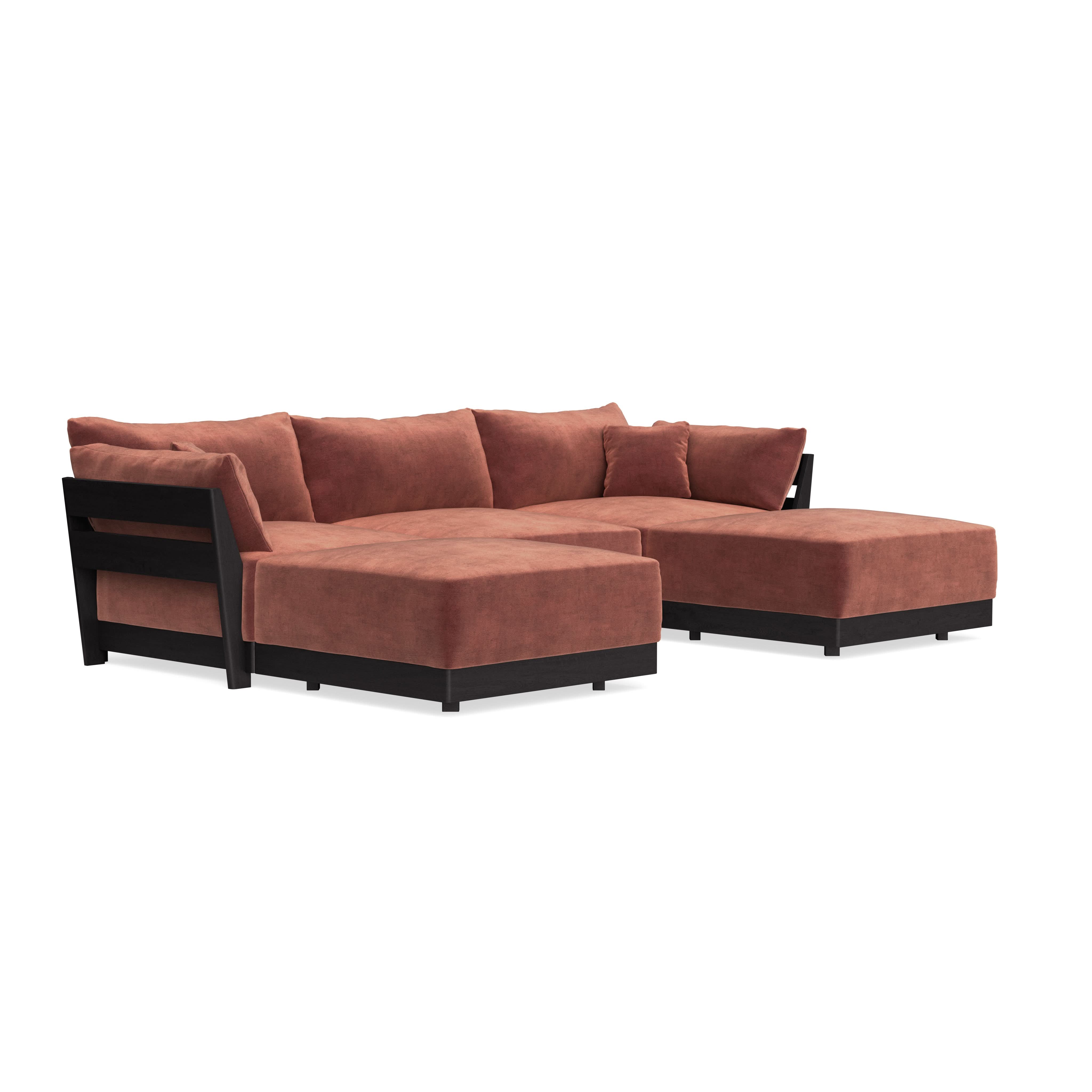 Every seat block is alike and can be used in the middle, on the end, or as a corner piece in your sofa. Each solid wood arm/back panel is identical and can be attached to any three sides of a seat block. Ottomans are adaptable too, as they can stand alone or serve as an extension to your sofa by being attached to any seat block at its base. Note that arm/back panels cannot be attached to an ottoman base.