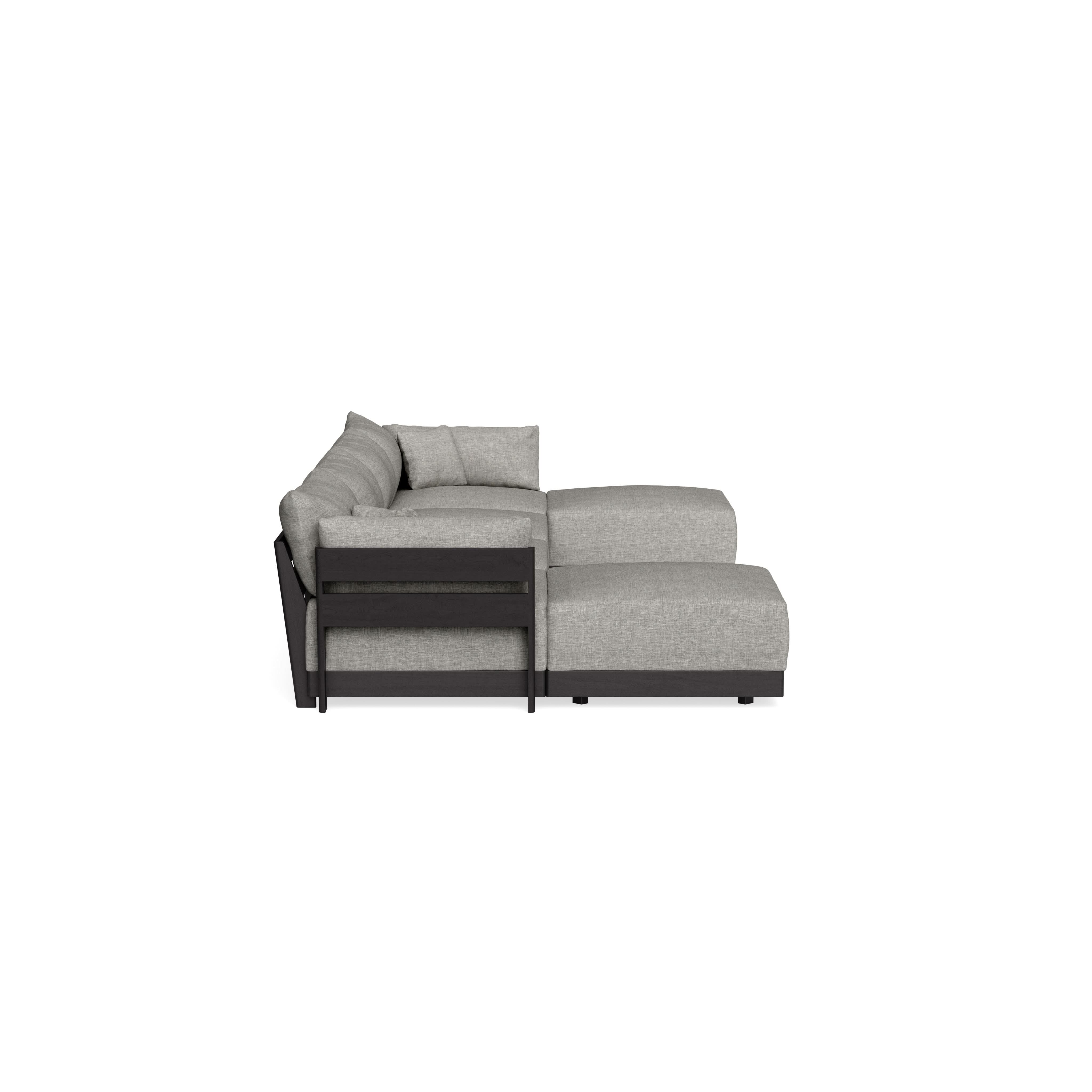 Made to move and adapt with your ever-changing lifestyle. Every patent pending seat block is alike and can be used in the middle, on the end, or as a corner piece in your sofa. Likewise, every slatted solid wood panel is identical and can be used as either an “arm” or a “back”. And the ottomans? Also adaptable! Ottomans can stand alone or serve as an extension to your sofa by connecting to any seat module at its base.