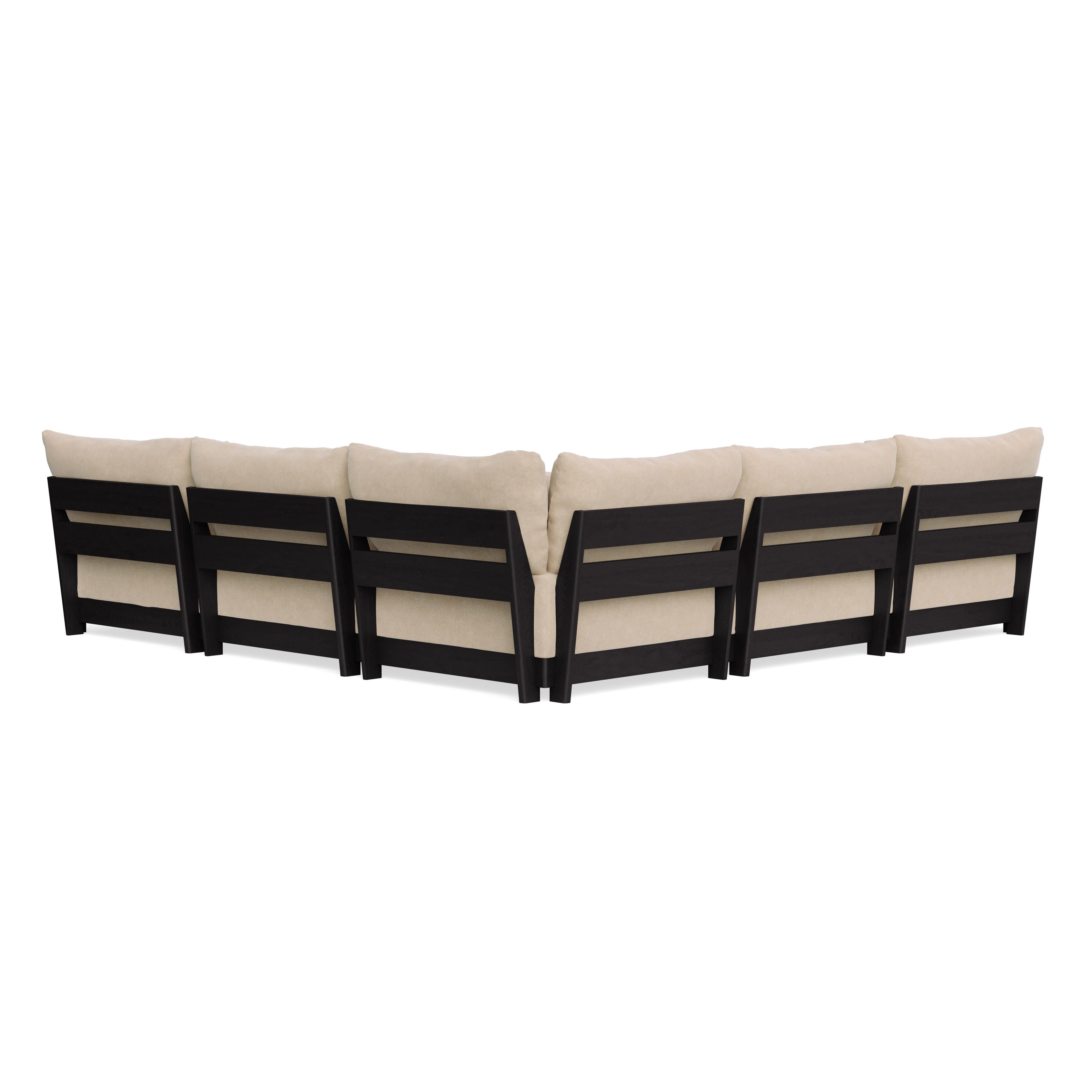 Every seat block is alike and can be used in the middle, on the end, or as a corner piece in your sofa. Each solid wood arm/back panel is identical and can be attached to any three sides of a seat block. Ottomans are adaptable too, as they can stand alone or serve as an extension to your sofa by being attached to any seat block at its base. Note that arm/back panels cannot be attached to an ottoman base.