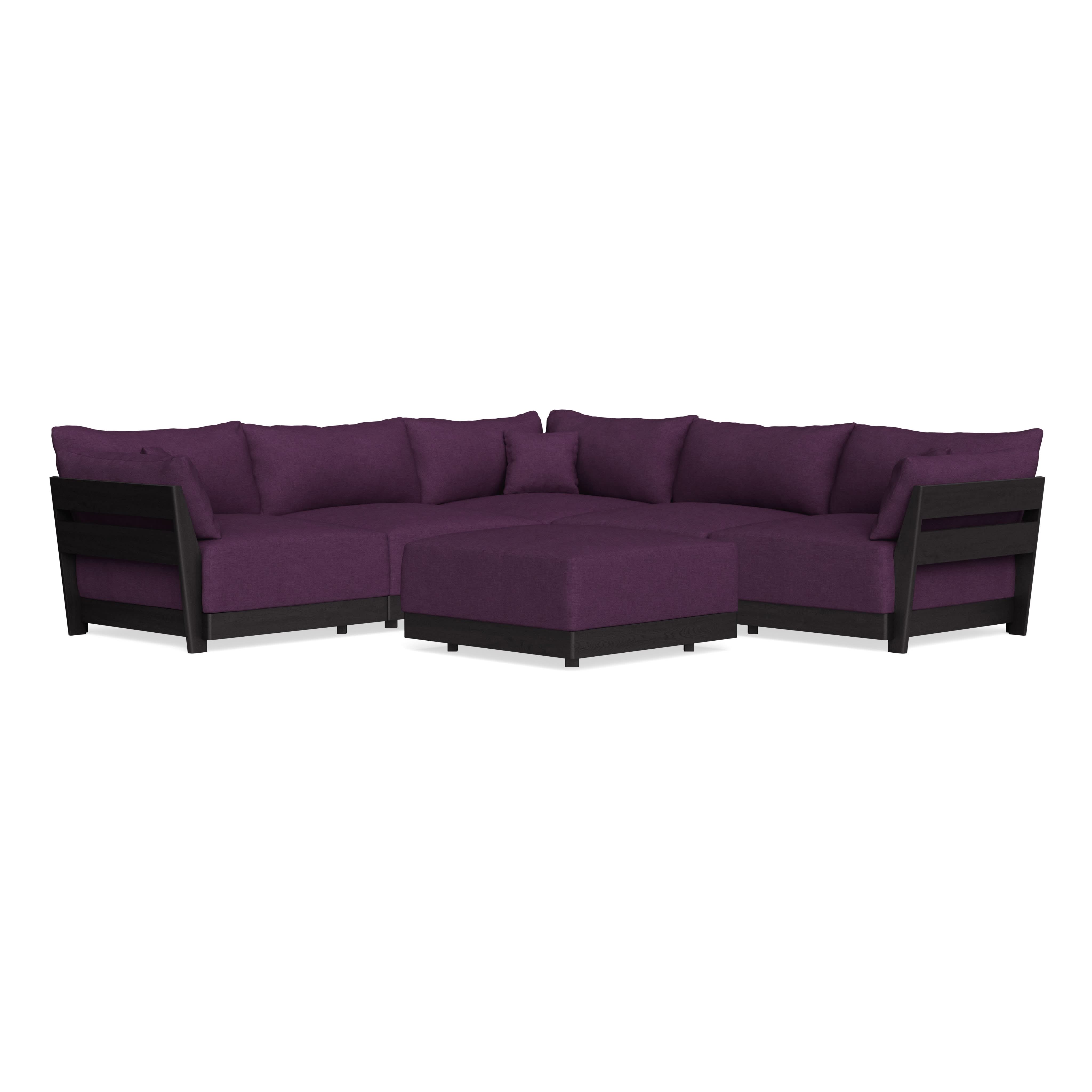 Modular Bondi Black 5-Seater Corner Sectional + Ottoman in Aubergine | Classic Blend