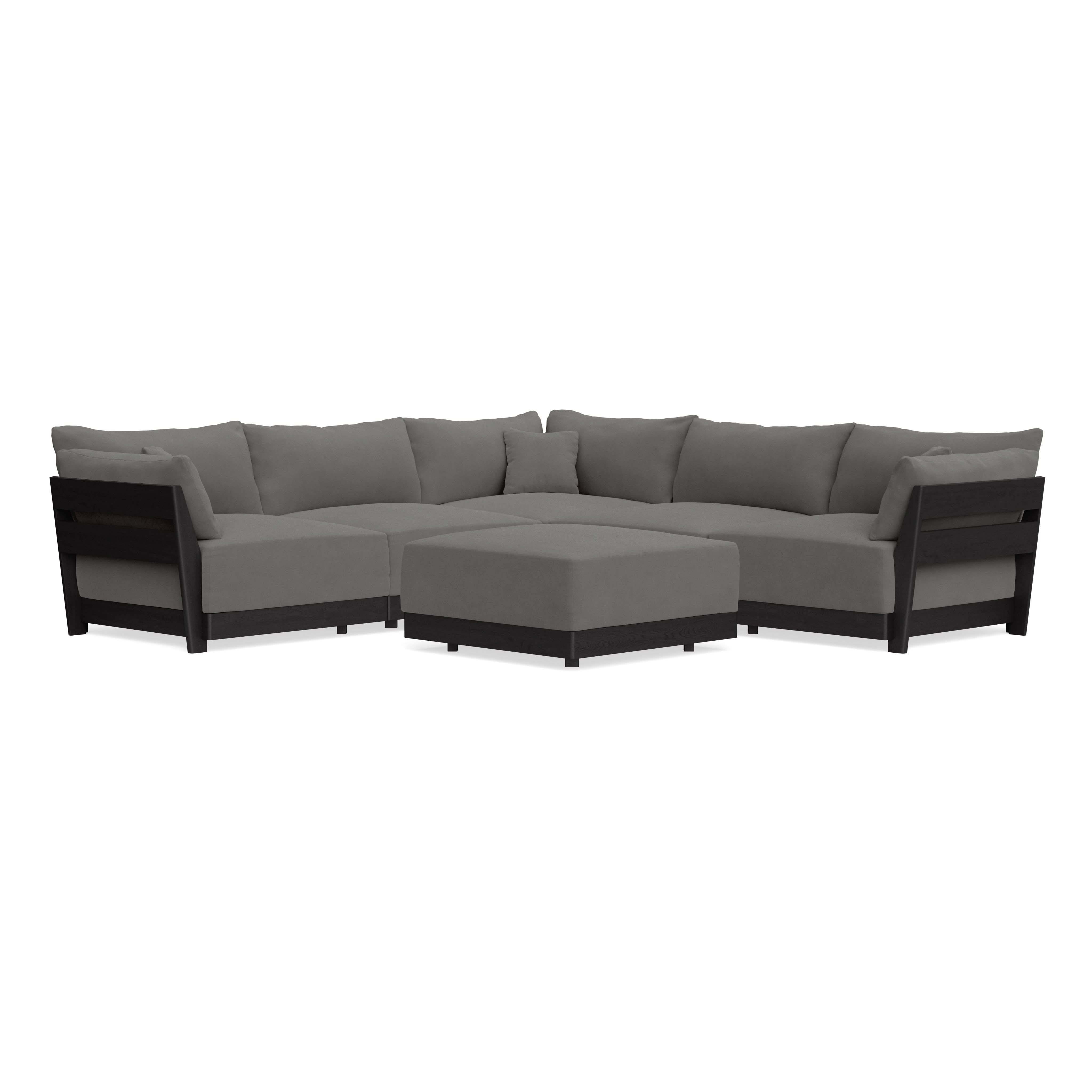 Modular Bondi Black 5-Seater Corner Sectional + Ottoman in Burnt Ember | Classic Blend