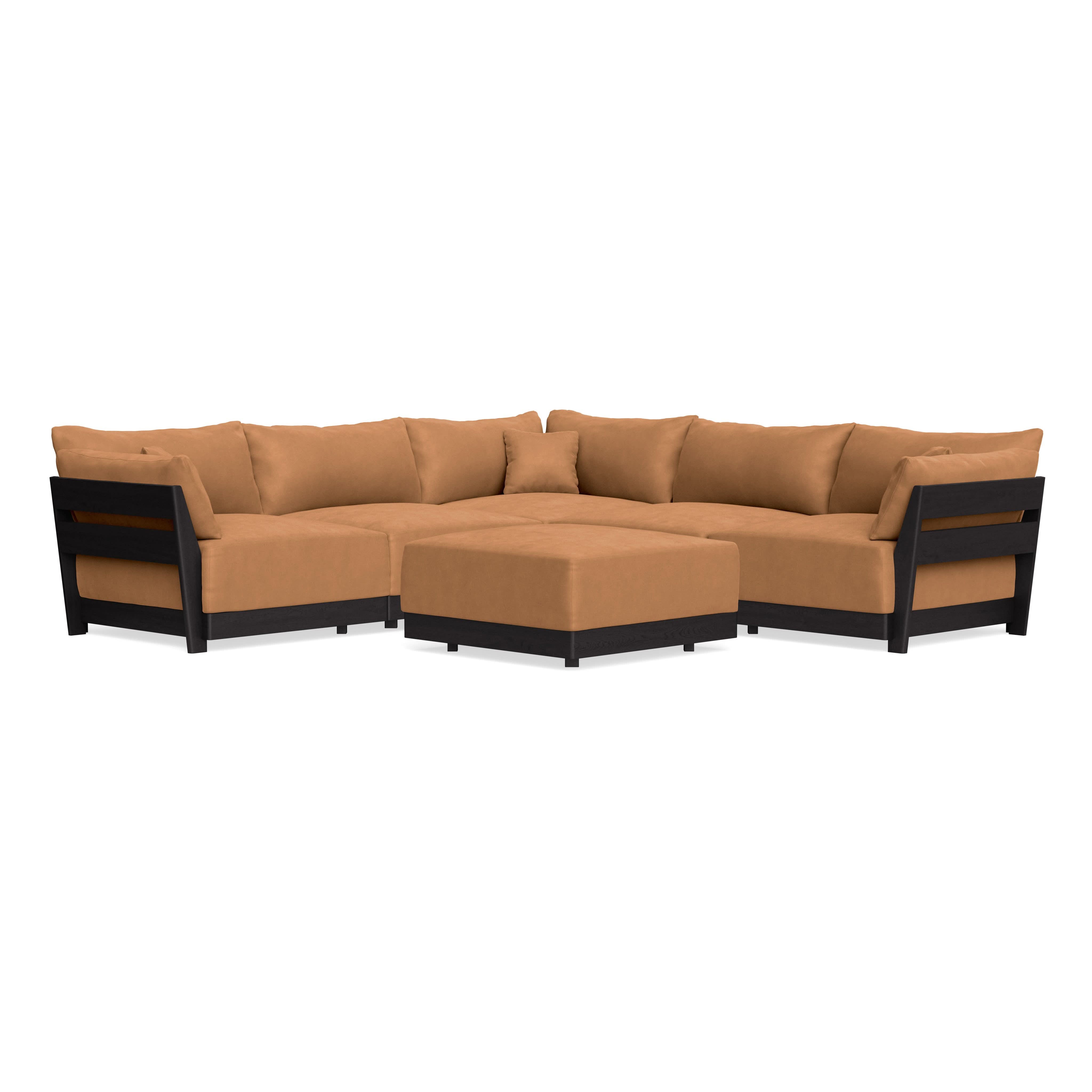 Modular Bondi Black 5-Seater Corner Sectional + Ottoman in Cheddar | Memory Foam Blend