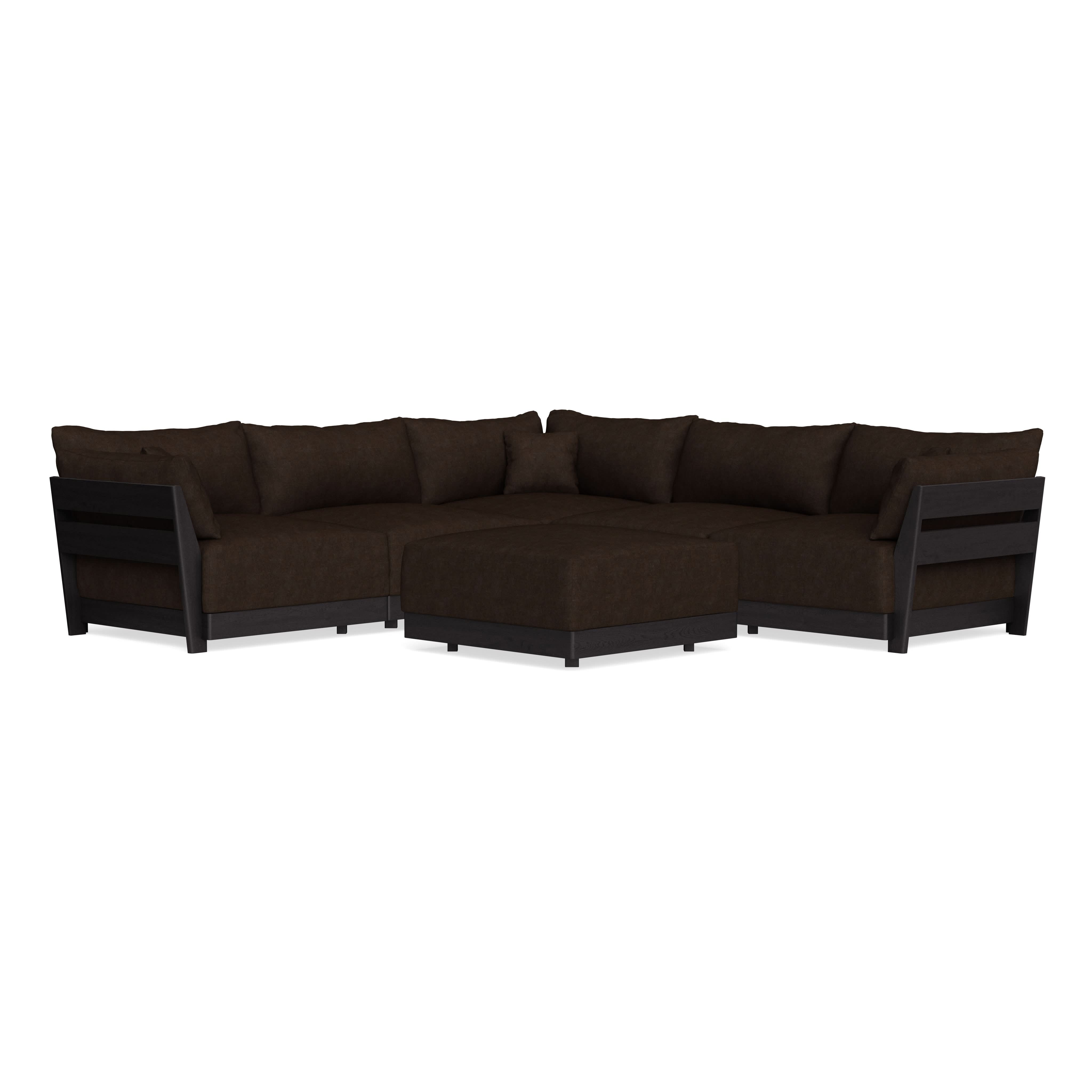 Modular Bondi Black 5-Seater Corner Sectional + Ottoman in Espresso | Classic Blend