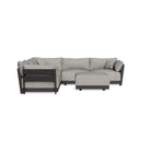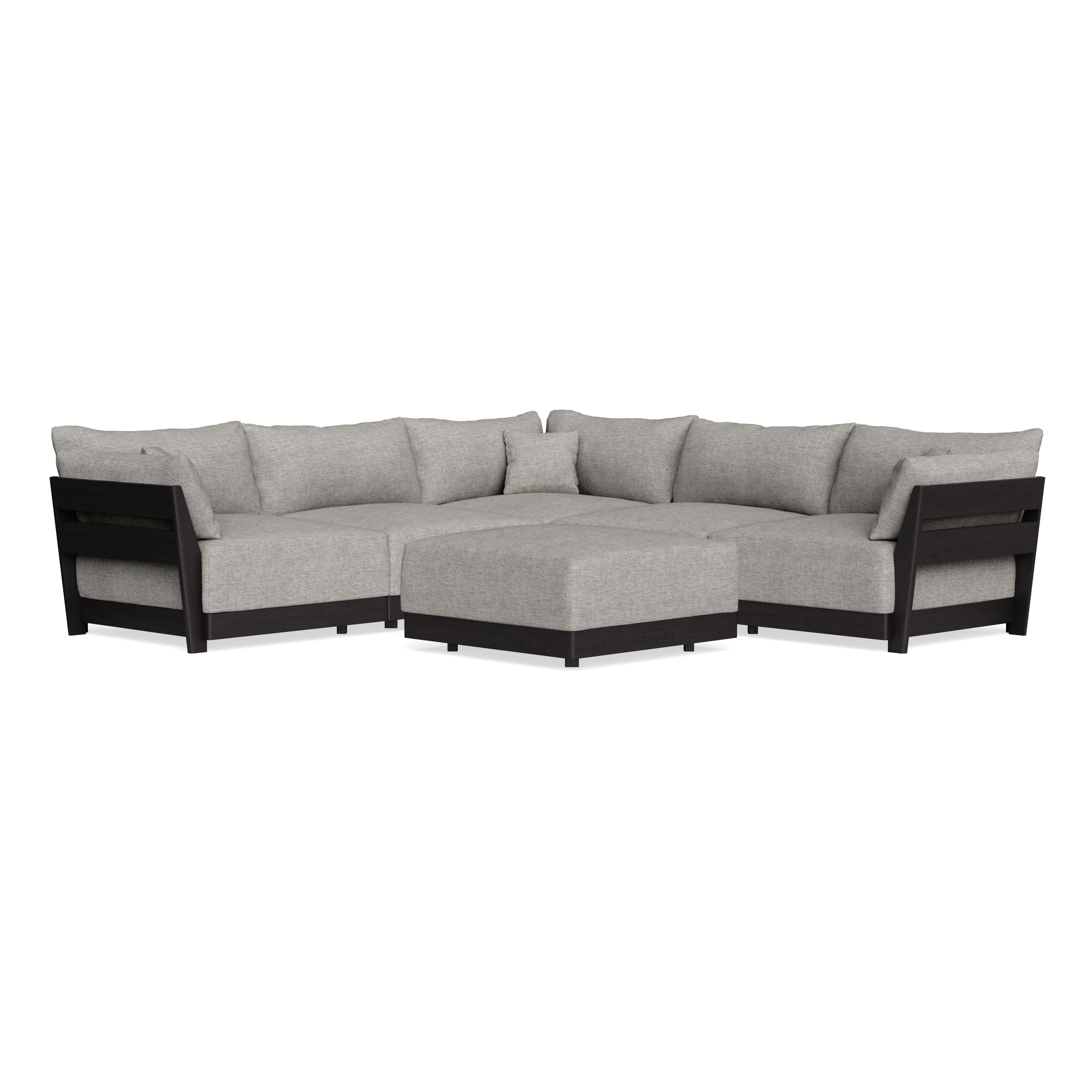 Modular Bondi Black 5-Seater Corner Sectional + Ottoman in Fog | Classic Blend