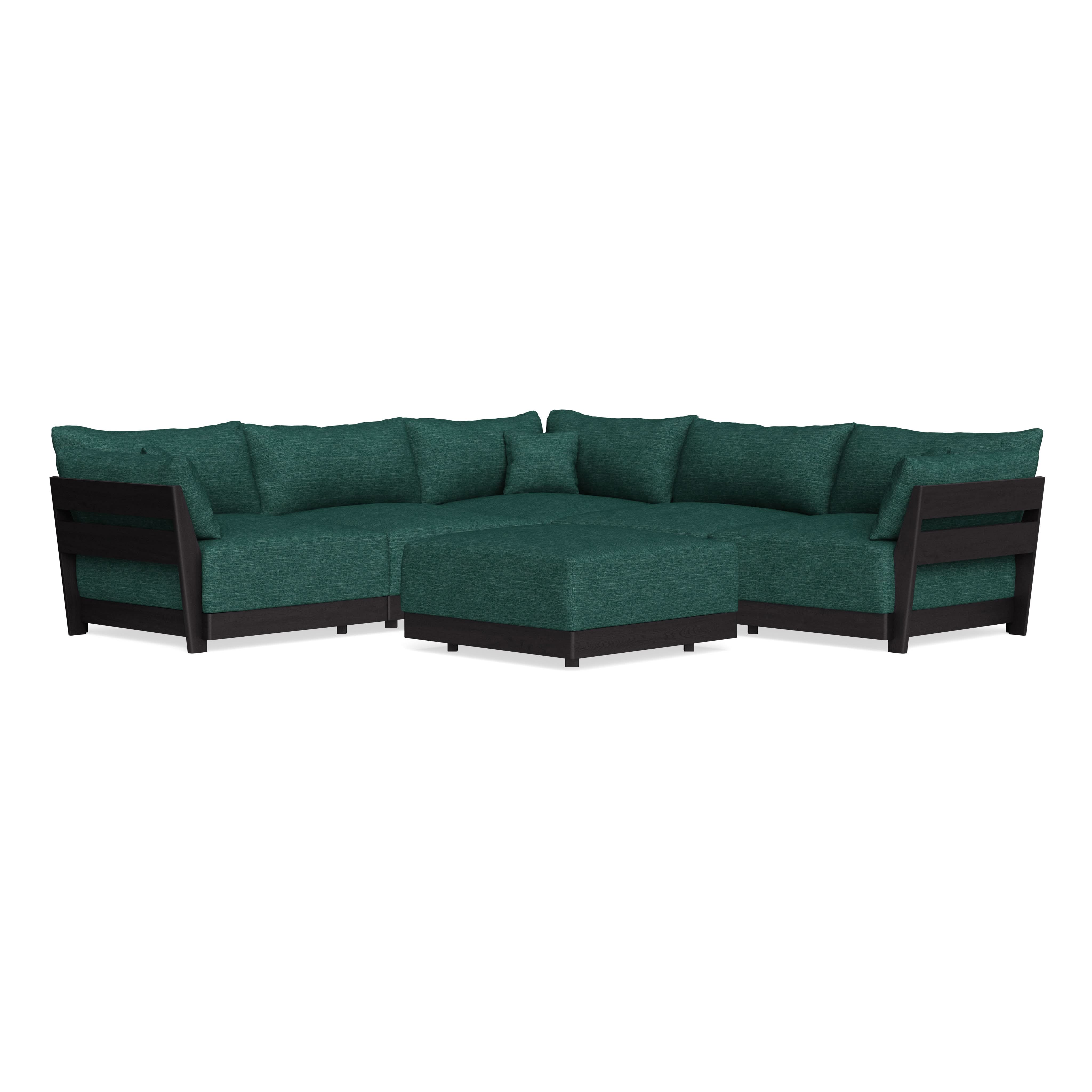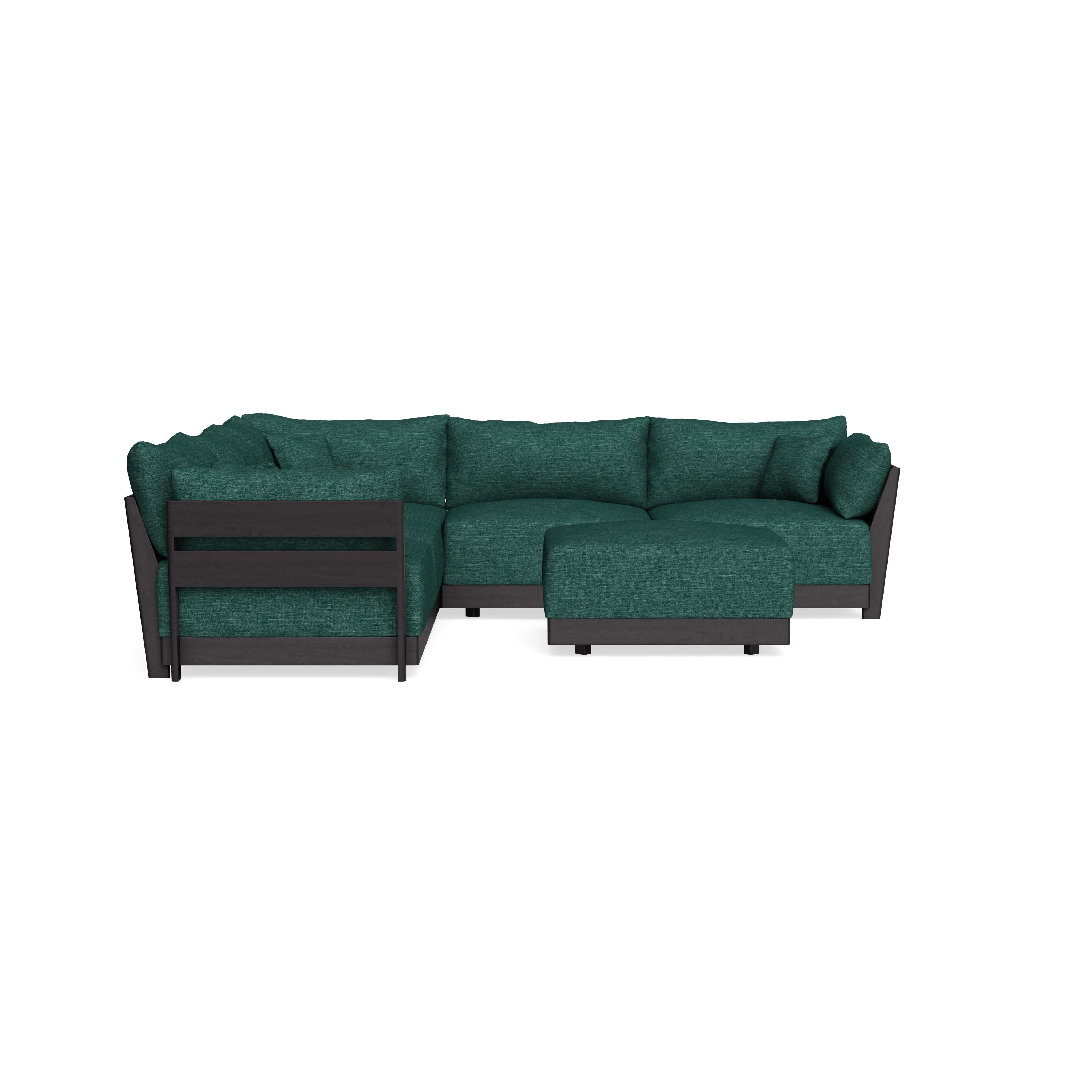 Modular Bondi Black 5-Seater Corner Sectional + Ottoman in Forest Green | Memory Foam Blend