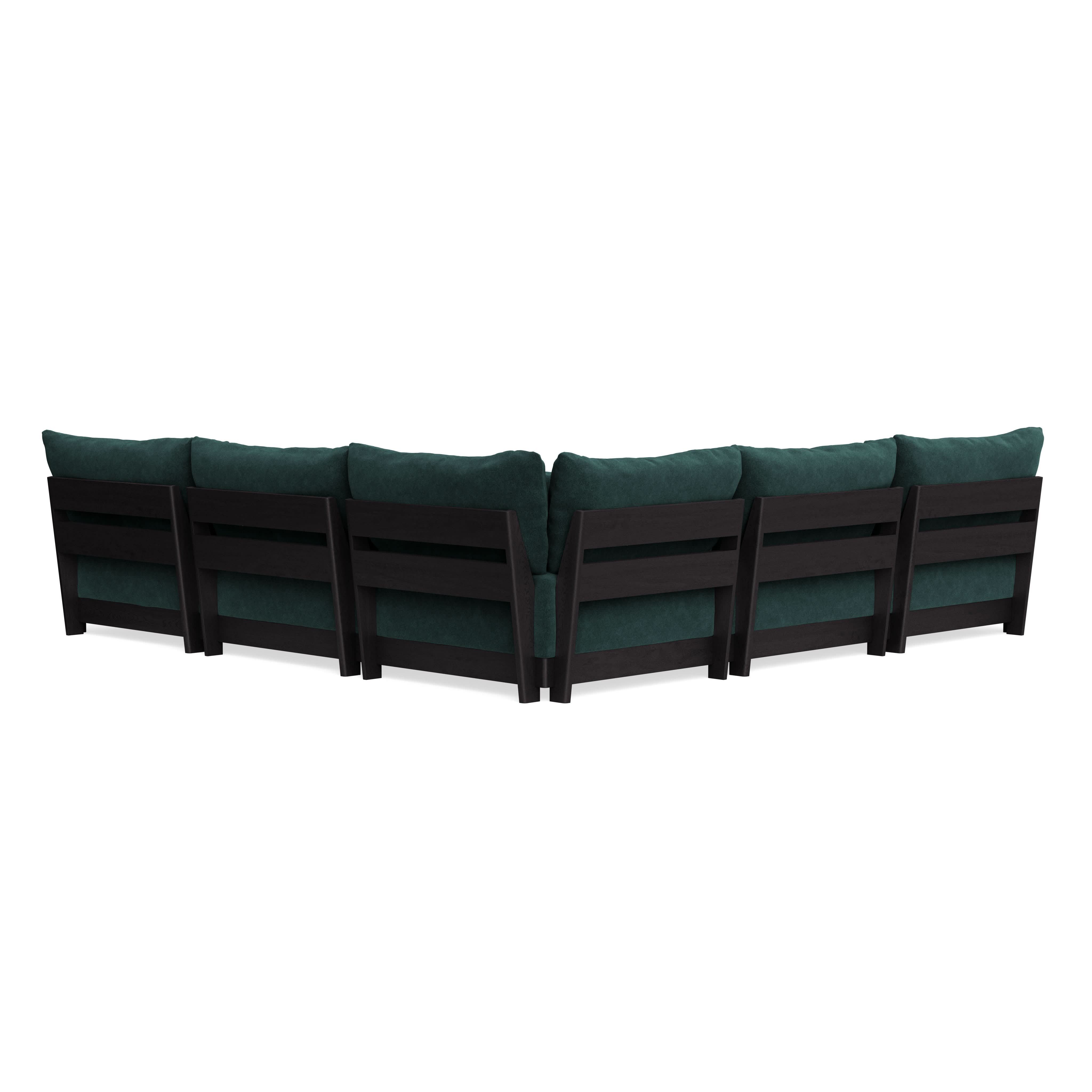 Modular Bondi Black 5-Seater Corner Sectional + Ottoman in Harbor Blue | Classic Blend