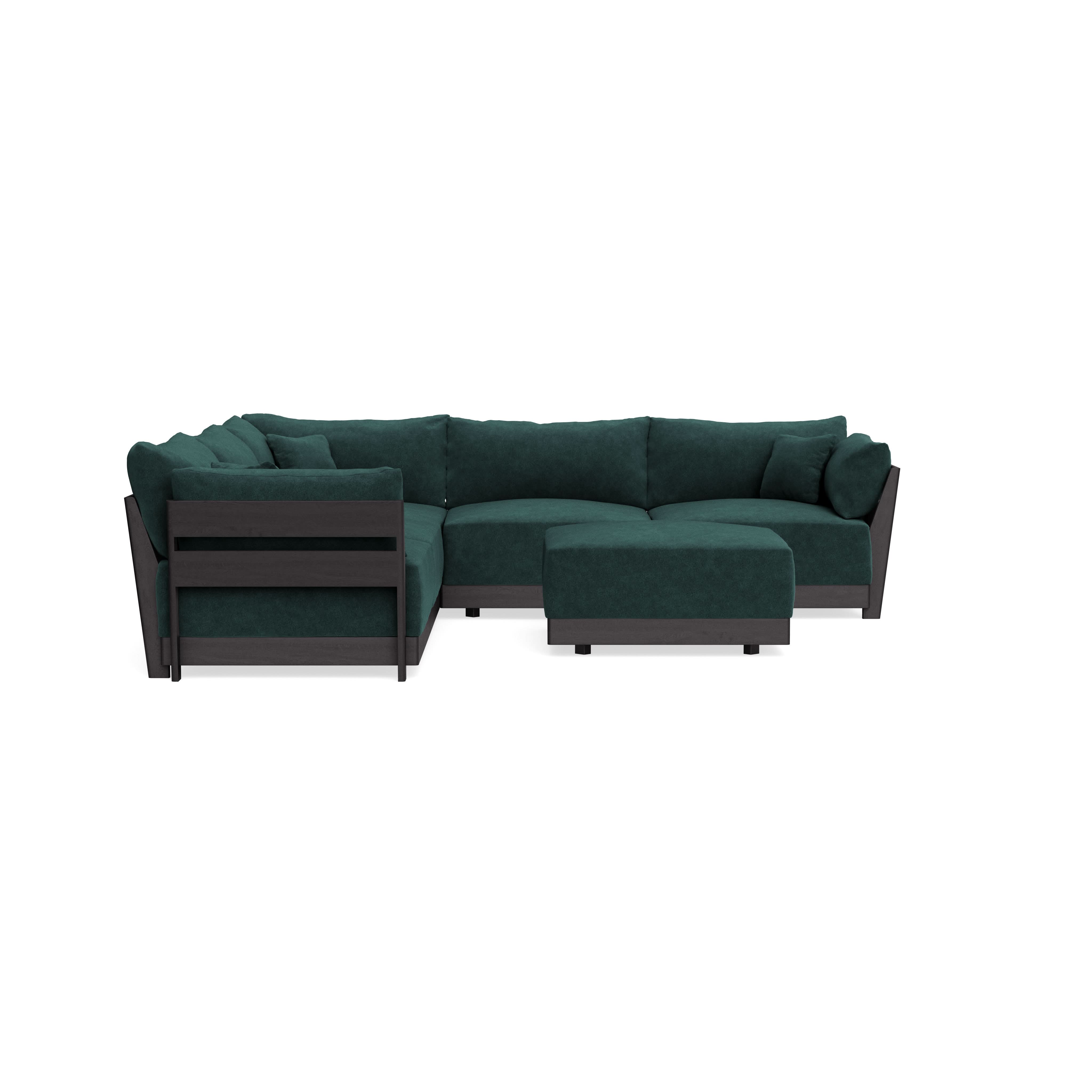 Modular Bondi Black 5-Seater Corner Sectional + Ottoman in Harbor Blue | Memory Foam Blend