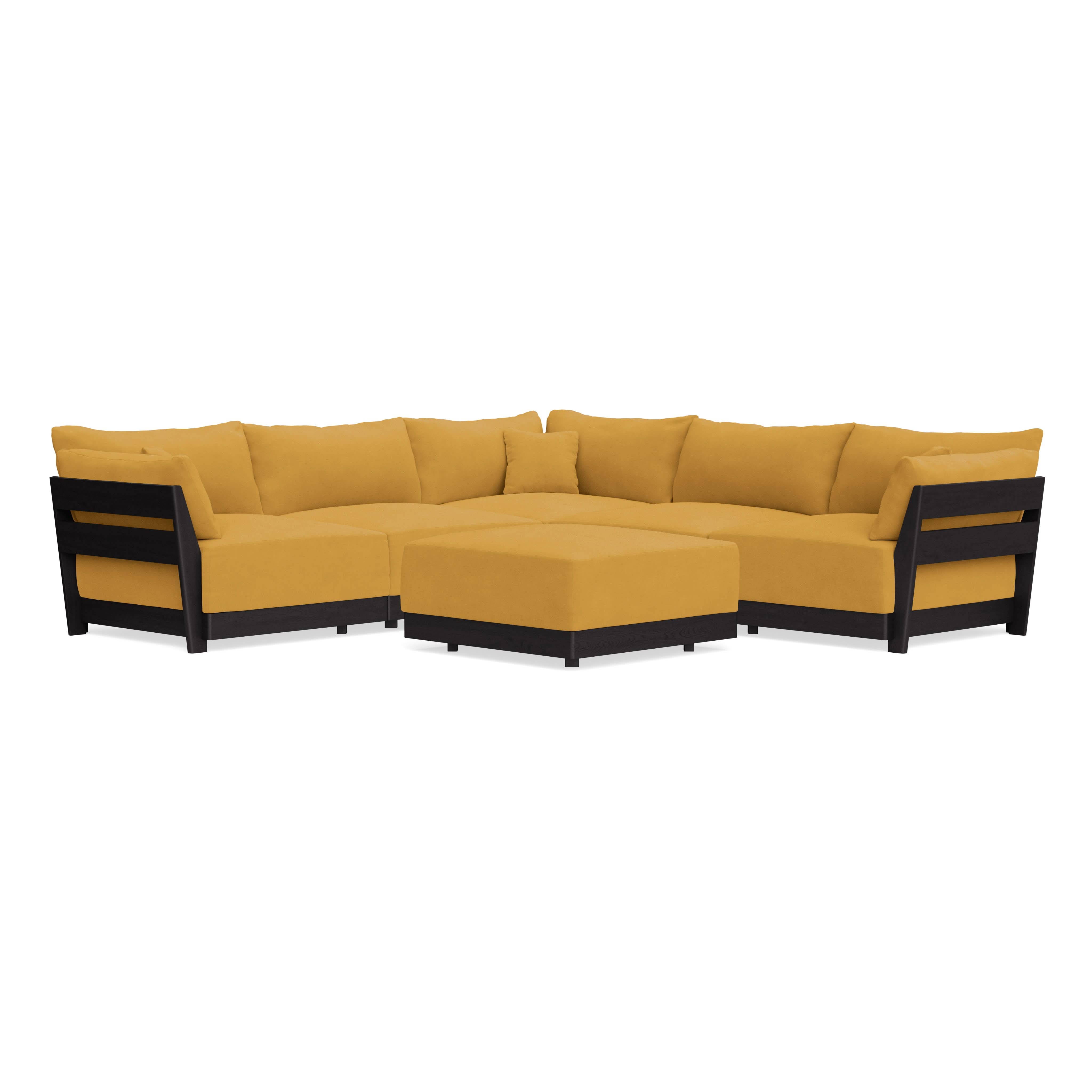 Modular Bondi Black 5-Seater Corner Sectional + Ottoman in Honey | Memory Foam Blend