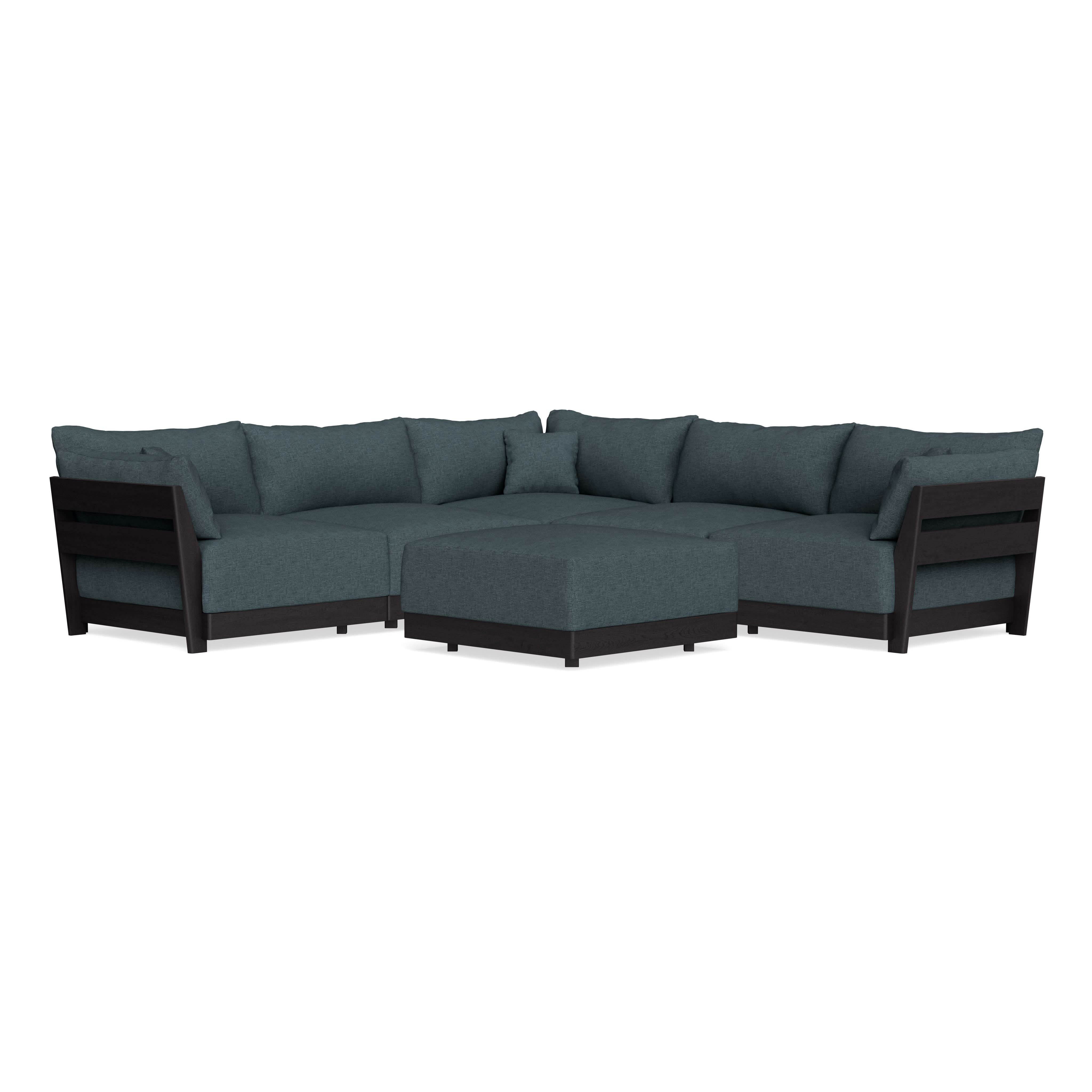 Modular Bondi Black 5-Seater Corner Sectional + Ottoman in Ocean Gray | Memory Foam Blend