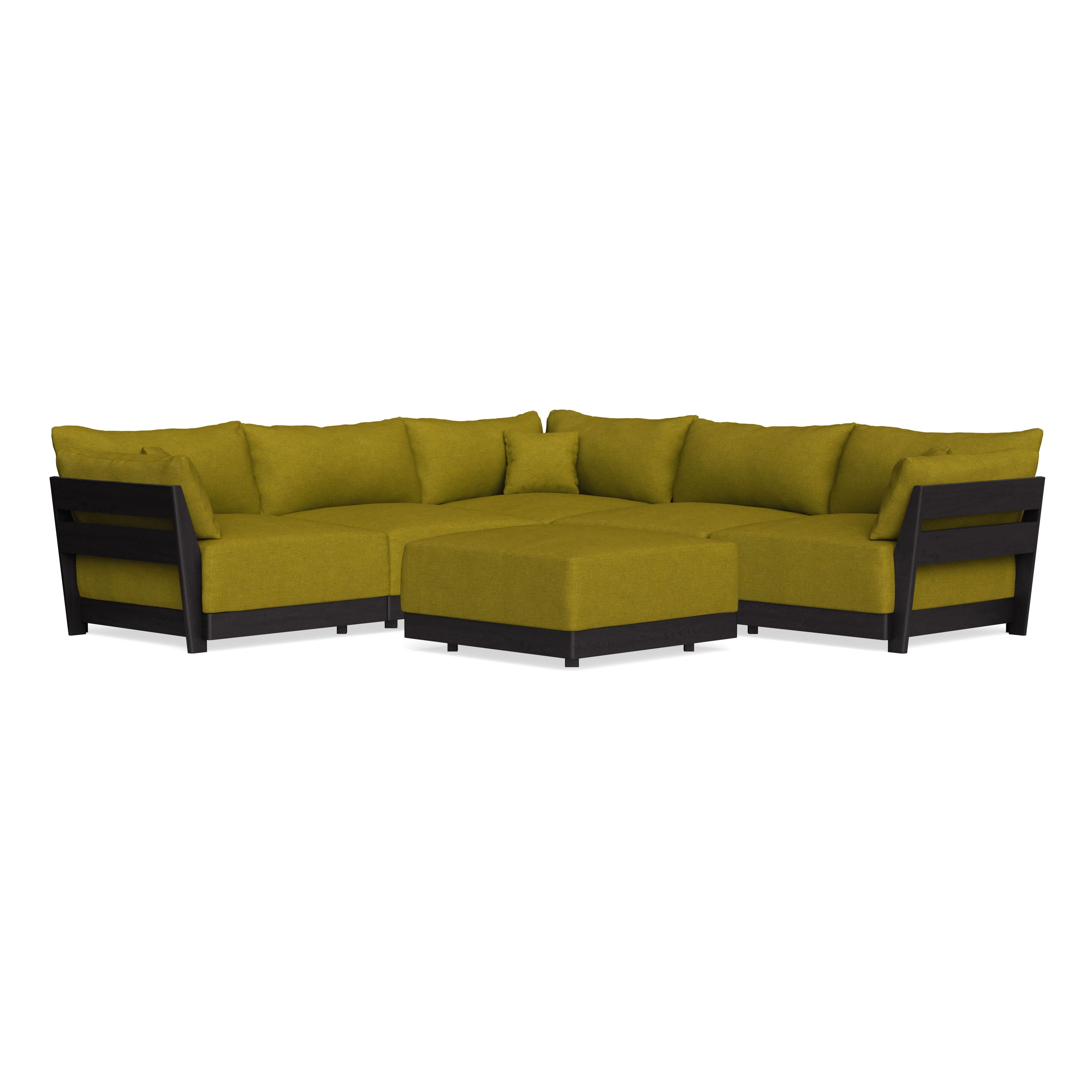 Modular Bondi Black 5-Seater Corner Sectional + Ottoman in Olive Green | Classic Blend