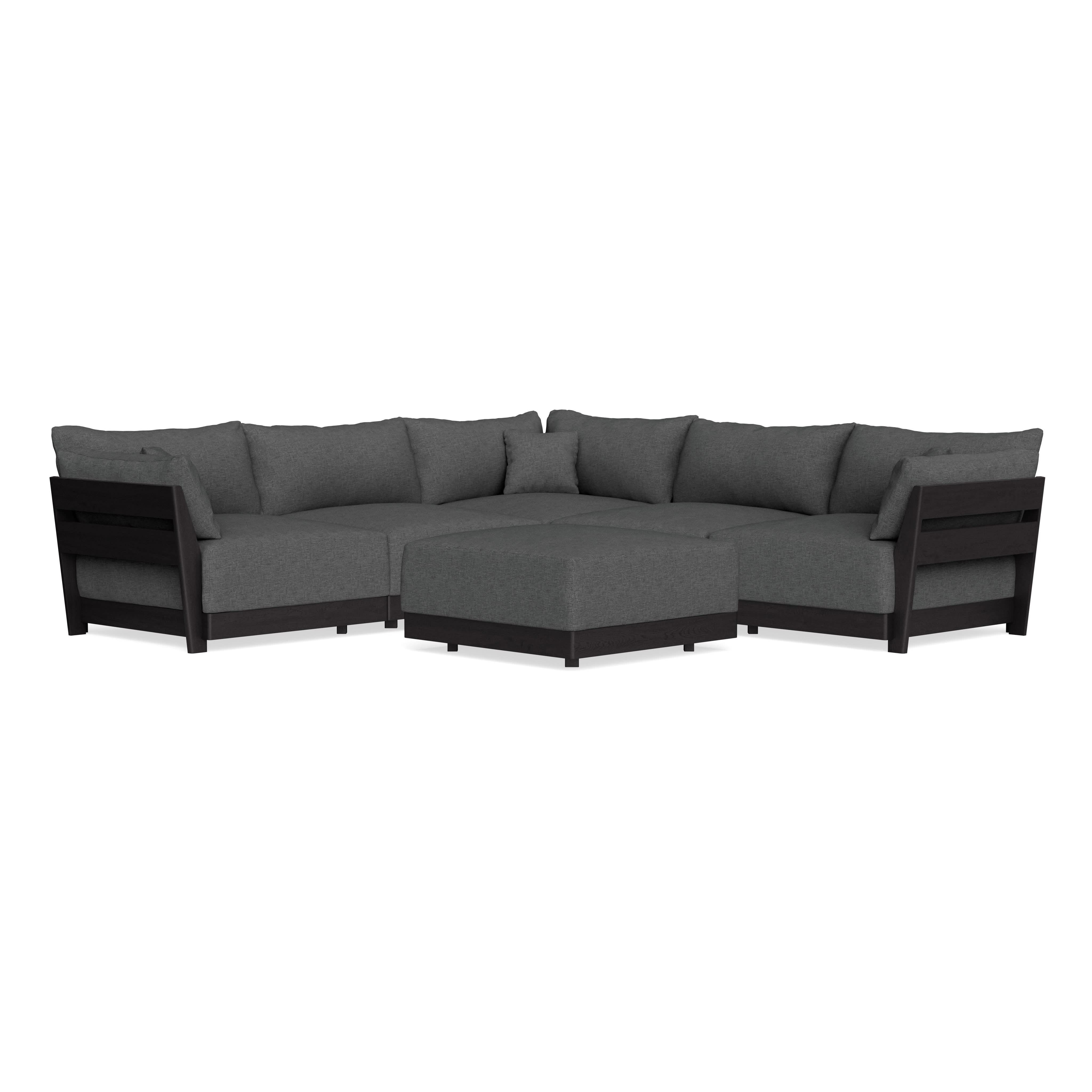 Modular Bondi Black 5-Seater Corner Sectional + Ottoman in Pebble | Classic Blend
