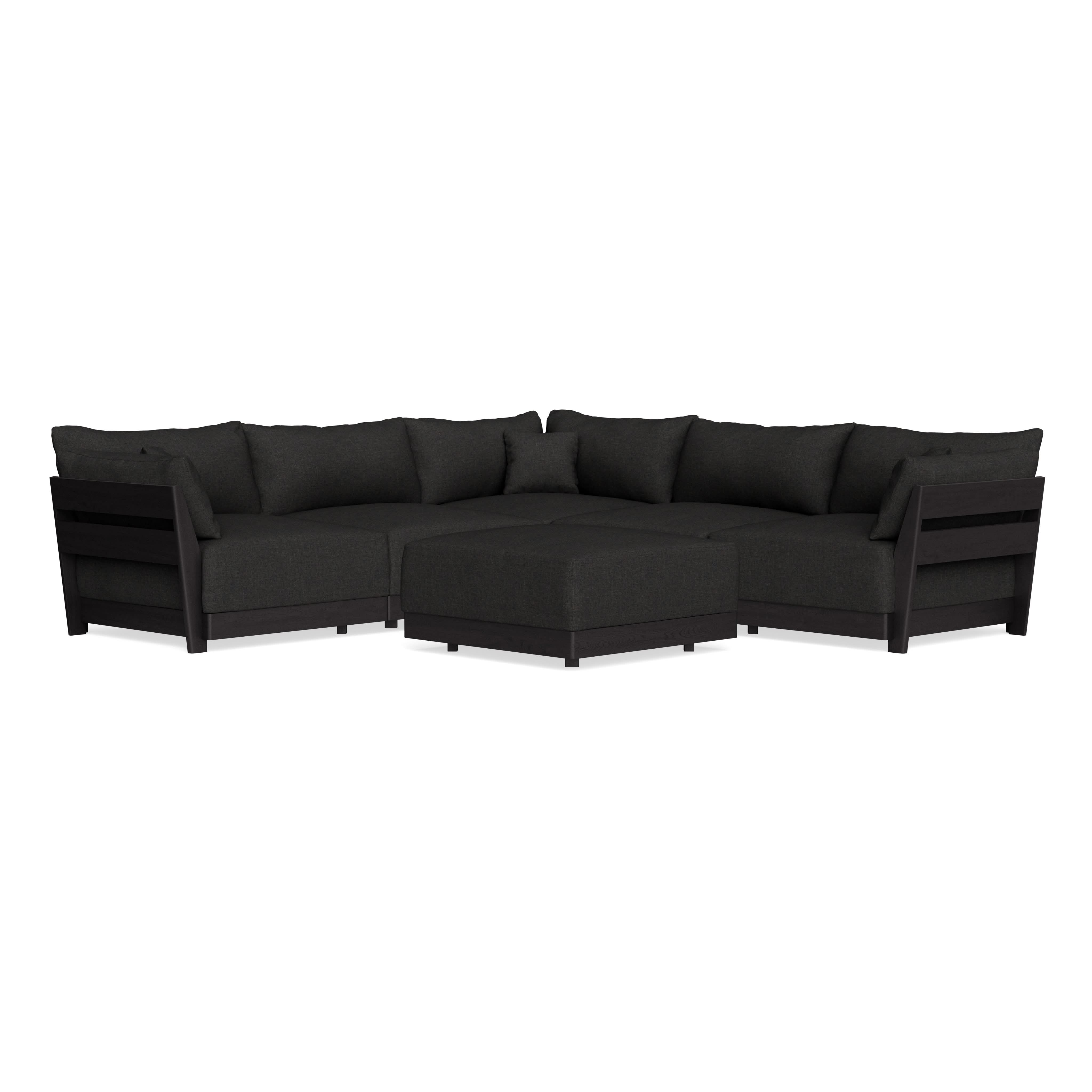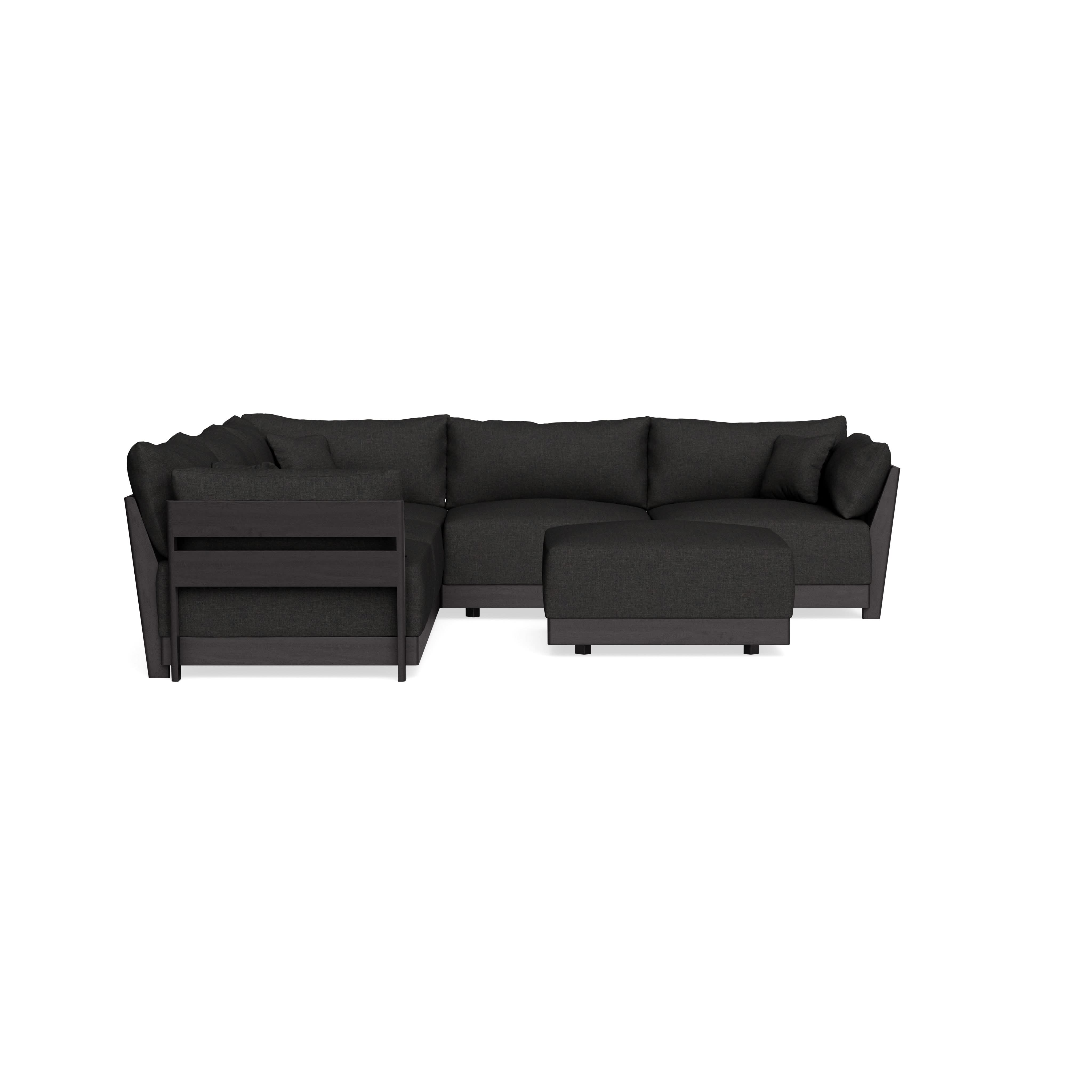 Modular Bondi Black 5-Seater Corner Sectional + Ottoman in Peppercorn | Classic Blend