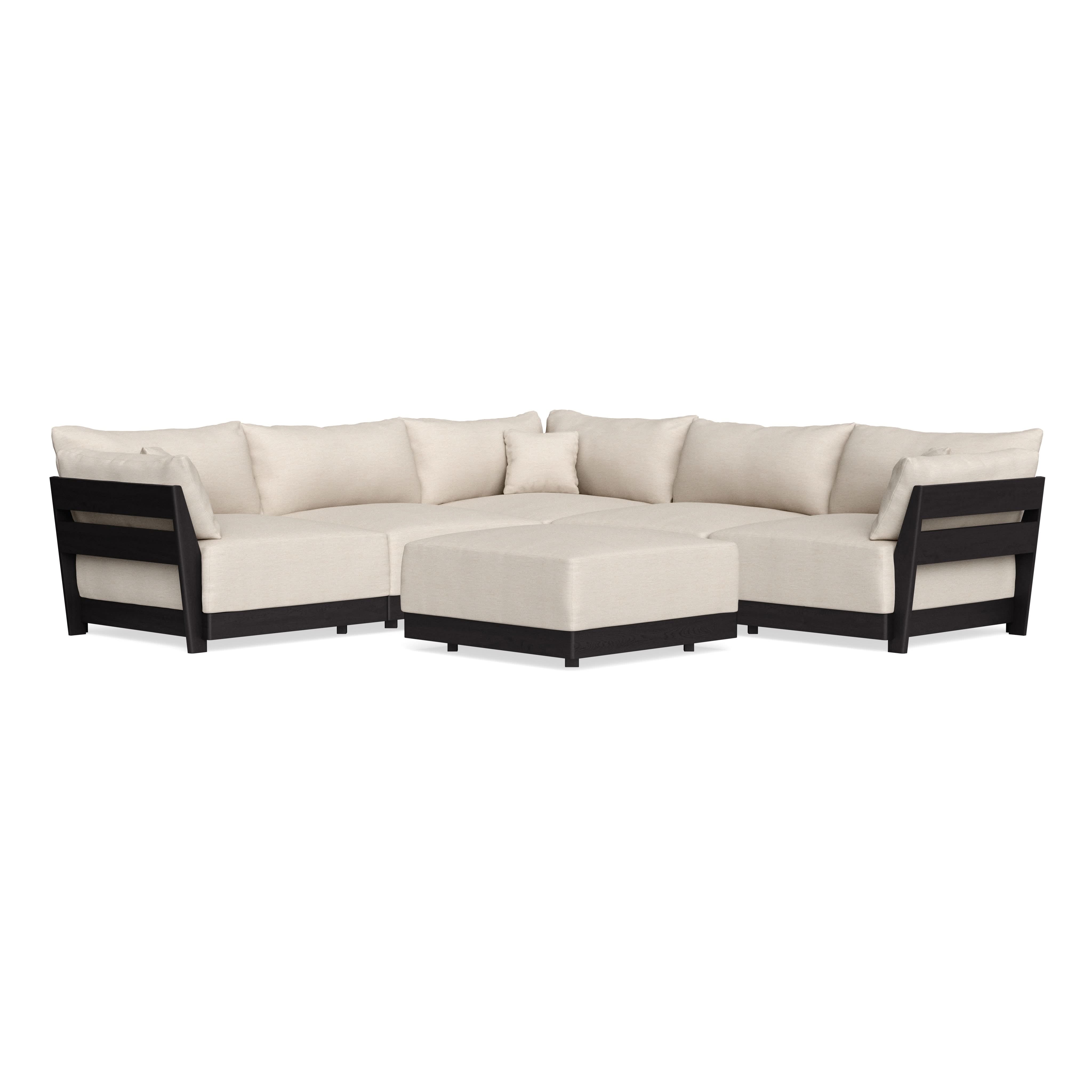 Modular Bondi Black 5-Seater Corner Sectional + Ottoman in Seashell | Classic Blend