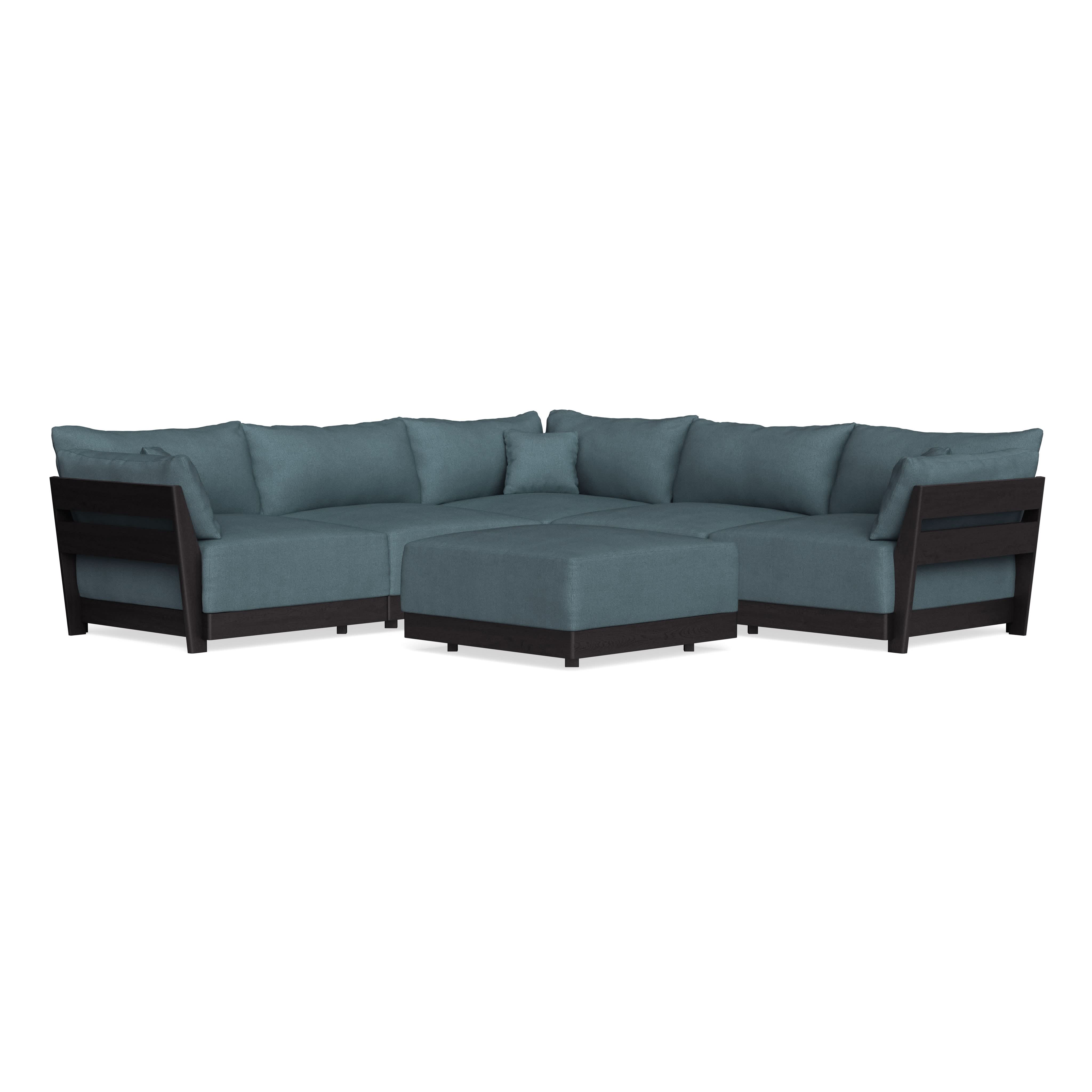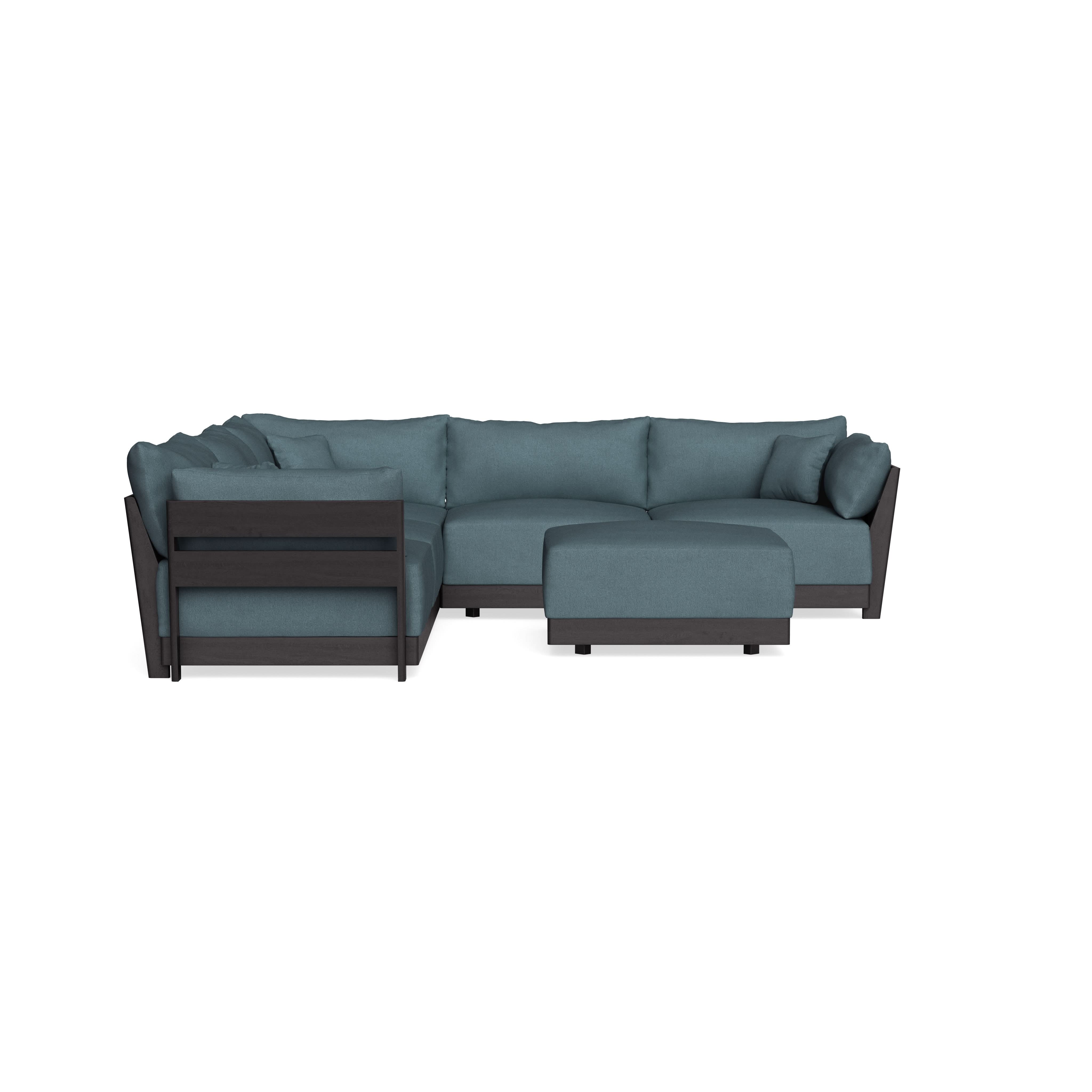 Modular Bondi Black 5-Seater Corner Sectional + Ottoman in Slate Blue | Classic Blend