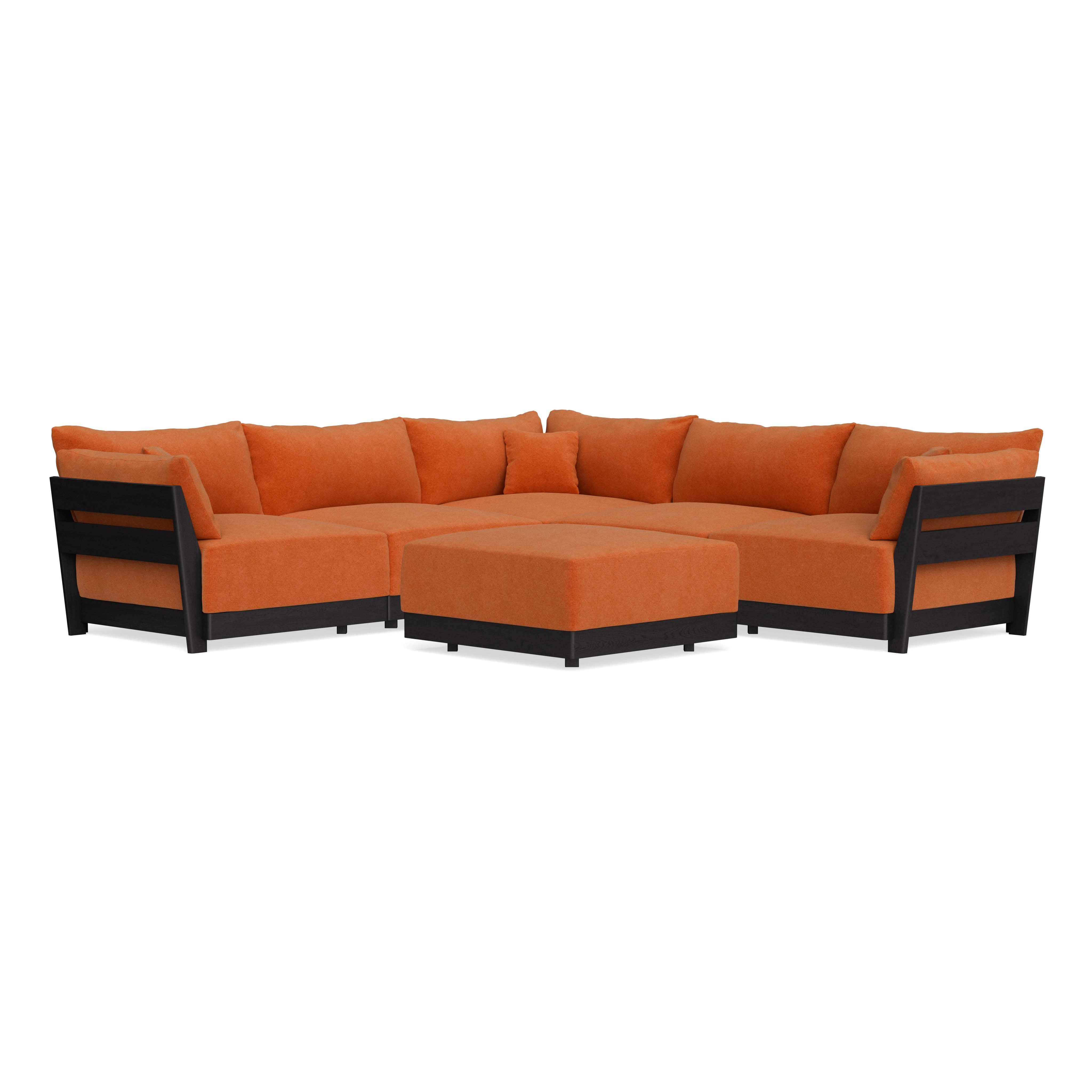 Modular Bondi Black 5-Seater Corner Sectional + Ottoman in Terracotta | Memory Foam Blend