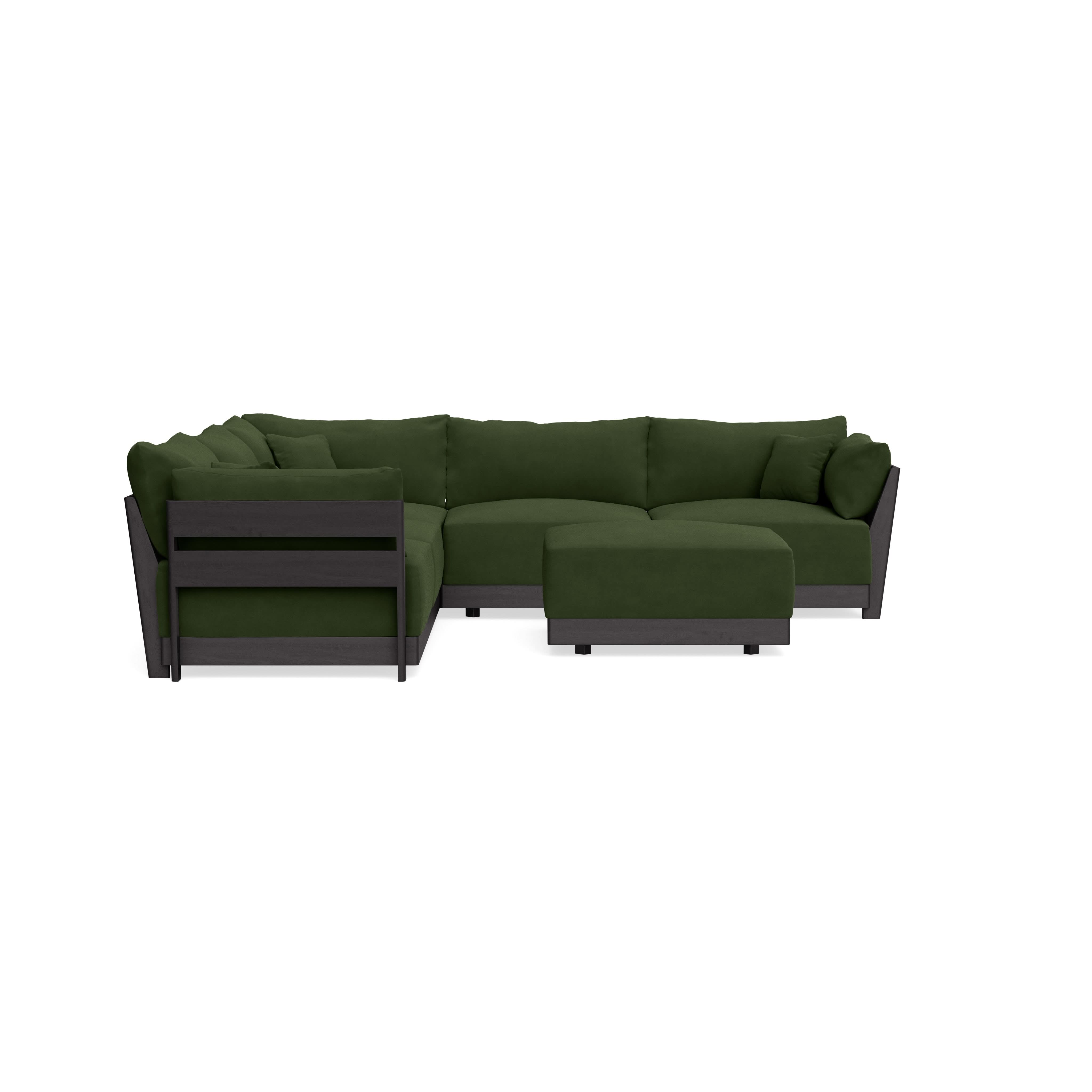 Modular Bondi Black 5-Seater Corner Sectional + Ottoman in Tuscan Green | Memory Foam Blend