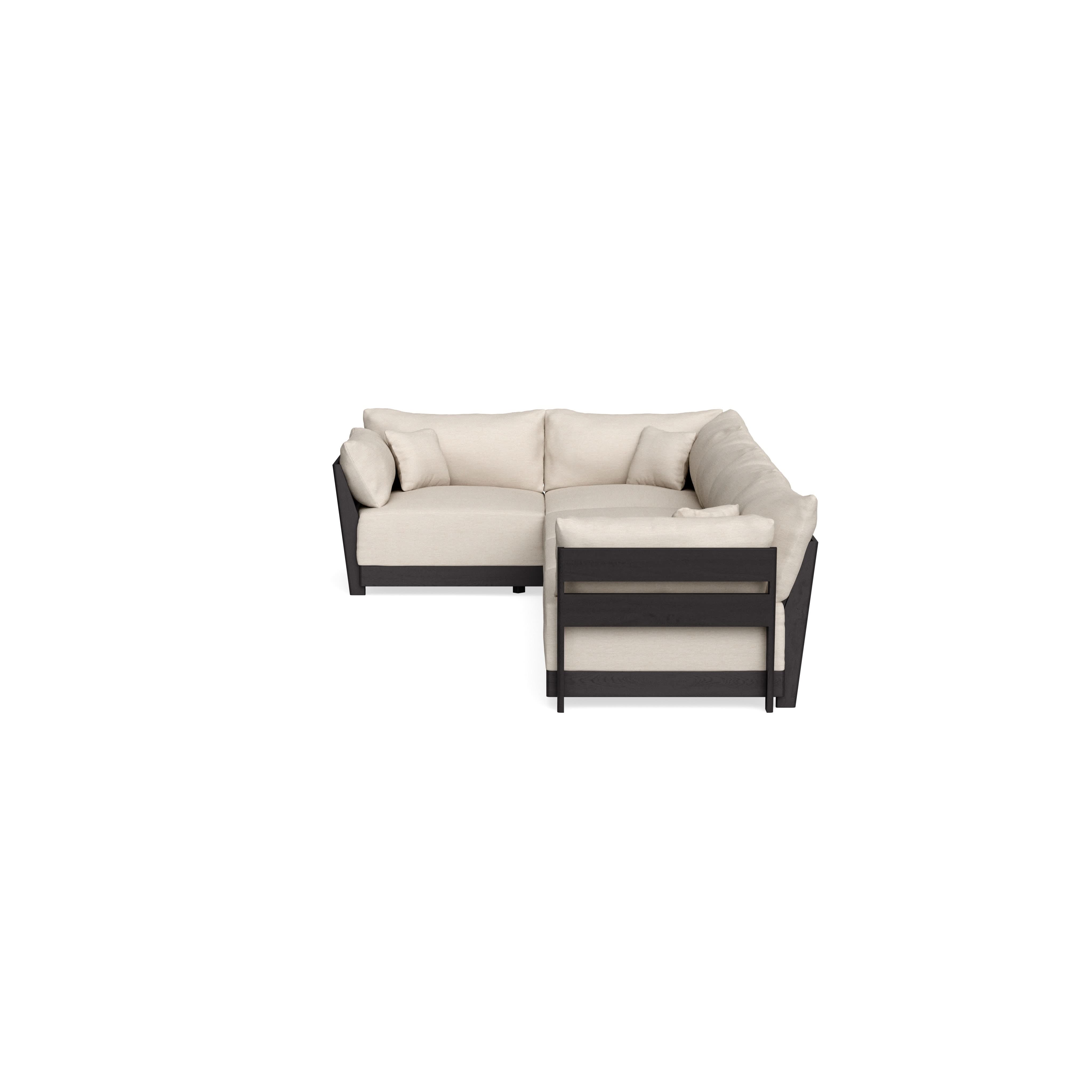 Every seat block is alike and can be used in the middle, on the end, or as a corner piece in your sofa. Each solid wood arm/back panel is identical and can be attached to any three sides of a seat block. Ottomans are adaptable too, as they can stand alone or serve as an extension to your sofa by being attached to any seat block at its base. Note that arm/back panels cannot be attached to an ottoman base.