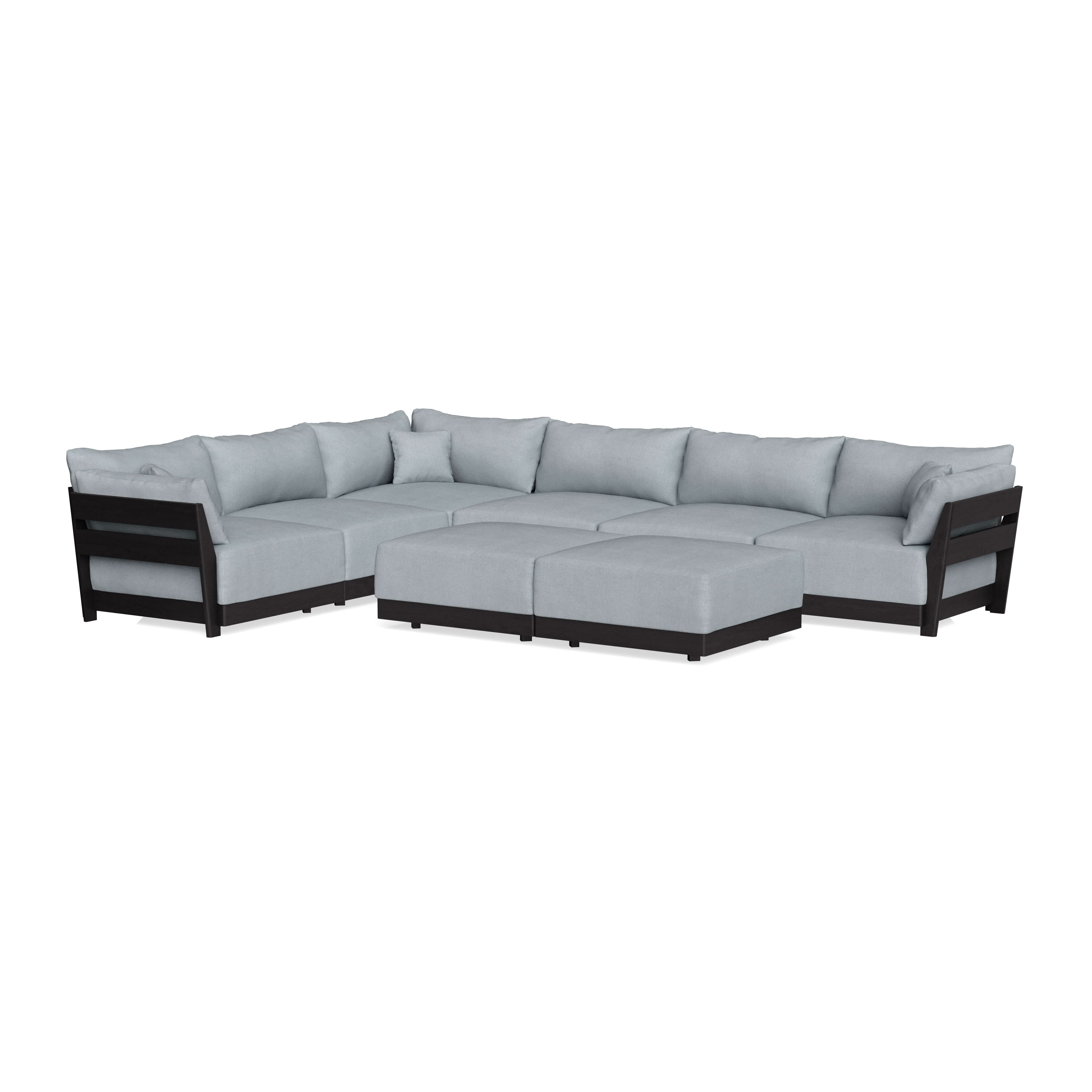 Modular Bondi Black 6-Seater Corner Sectional + Bench Ottoman in Ash | Memory Foam Blend