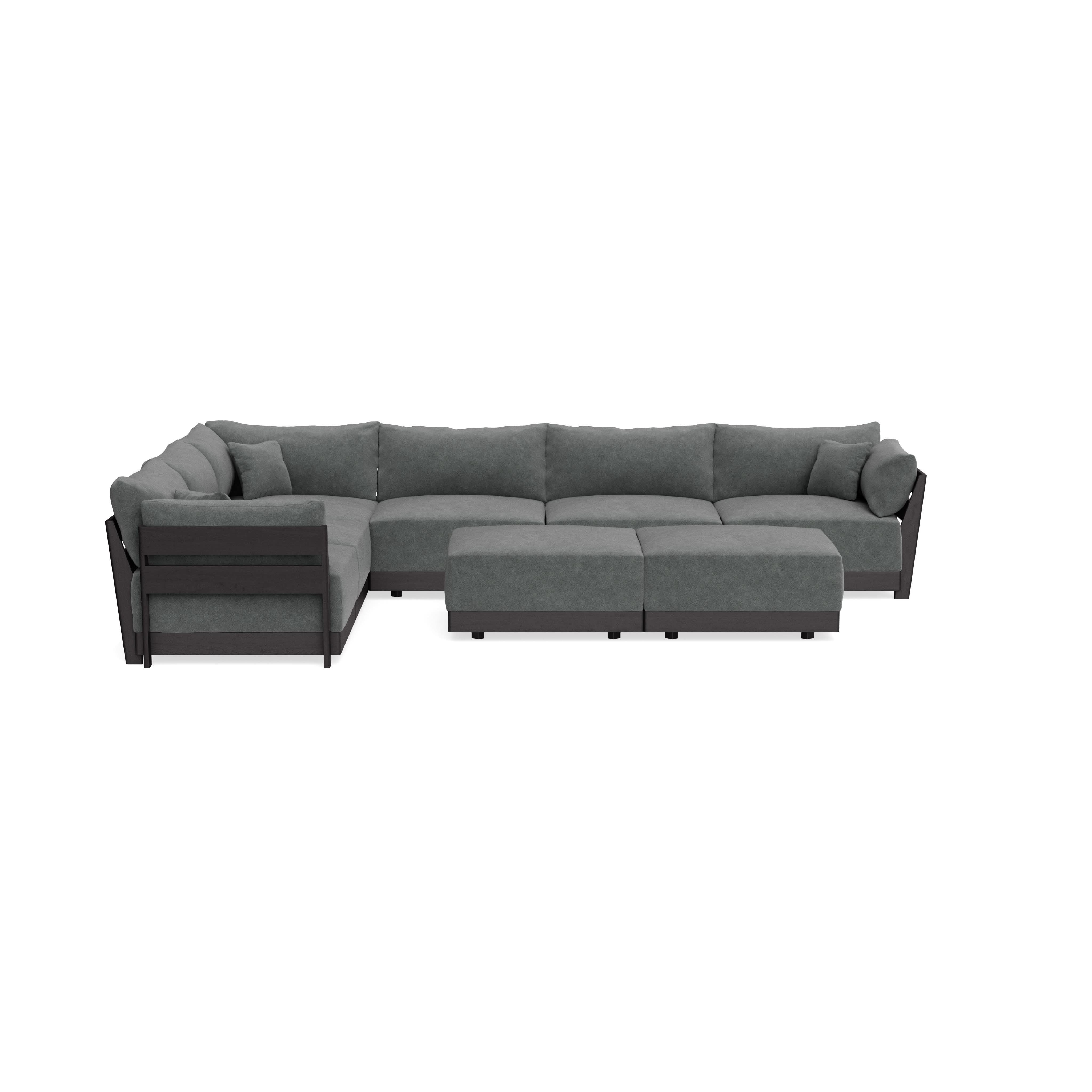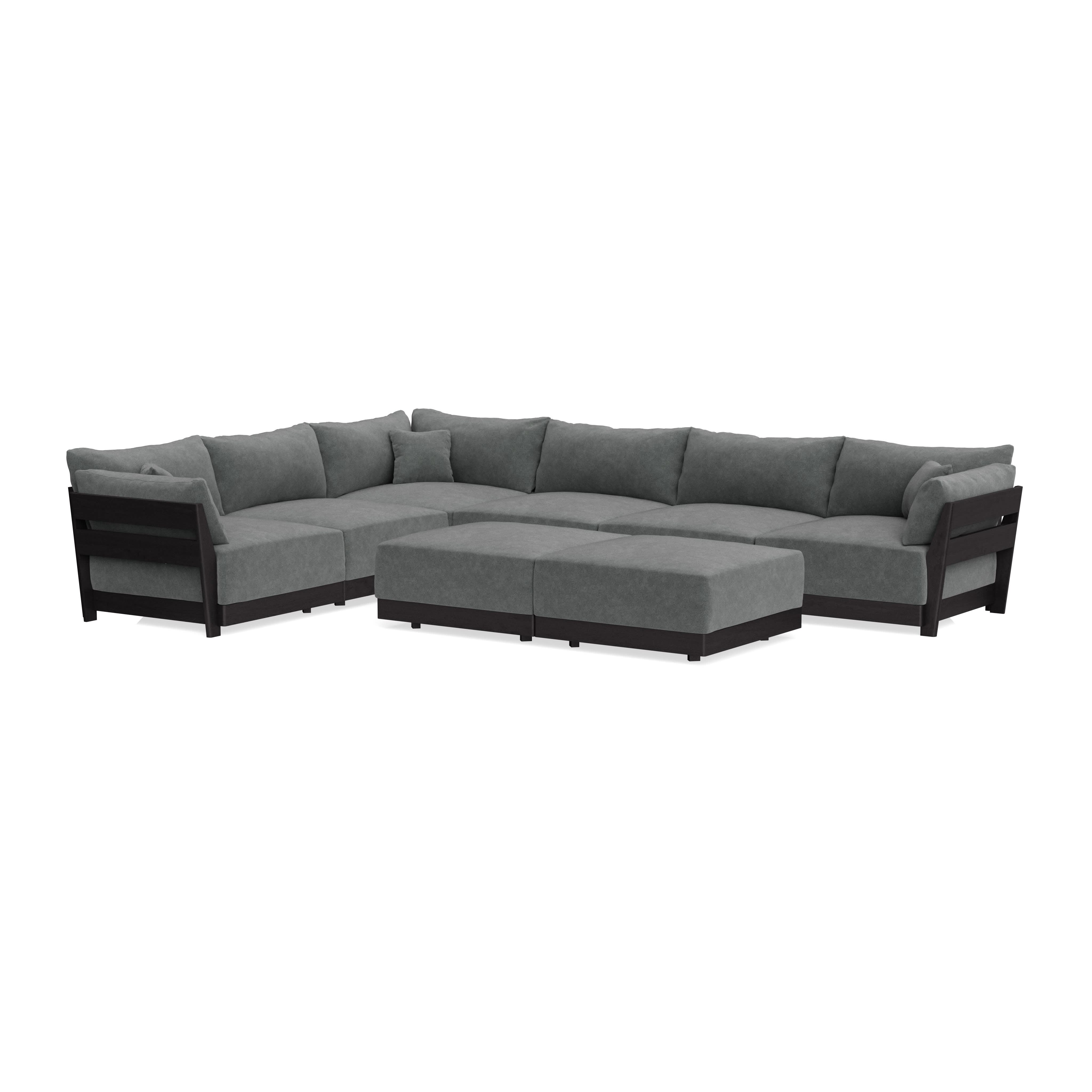Modular Bondi Black 6-Seater Corner Sectional + Bench Ottoman in Chimney Gray | Classic Blend