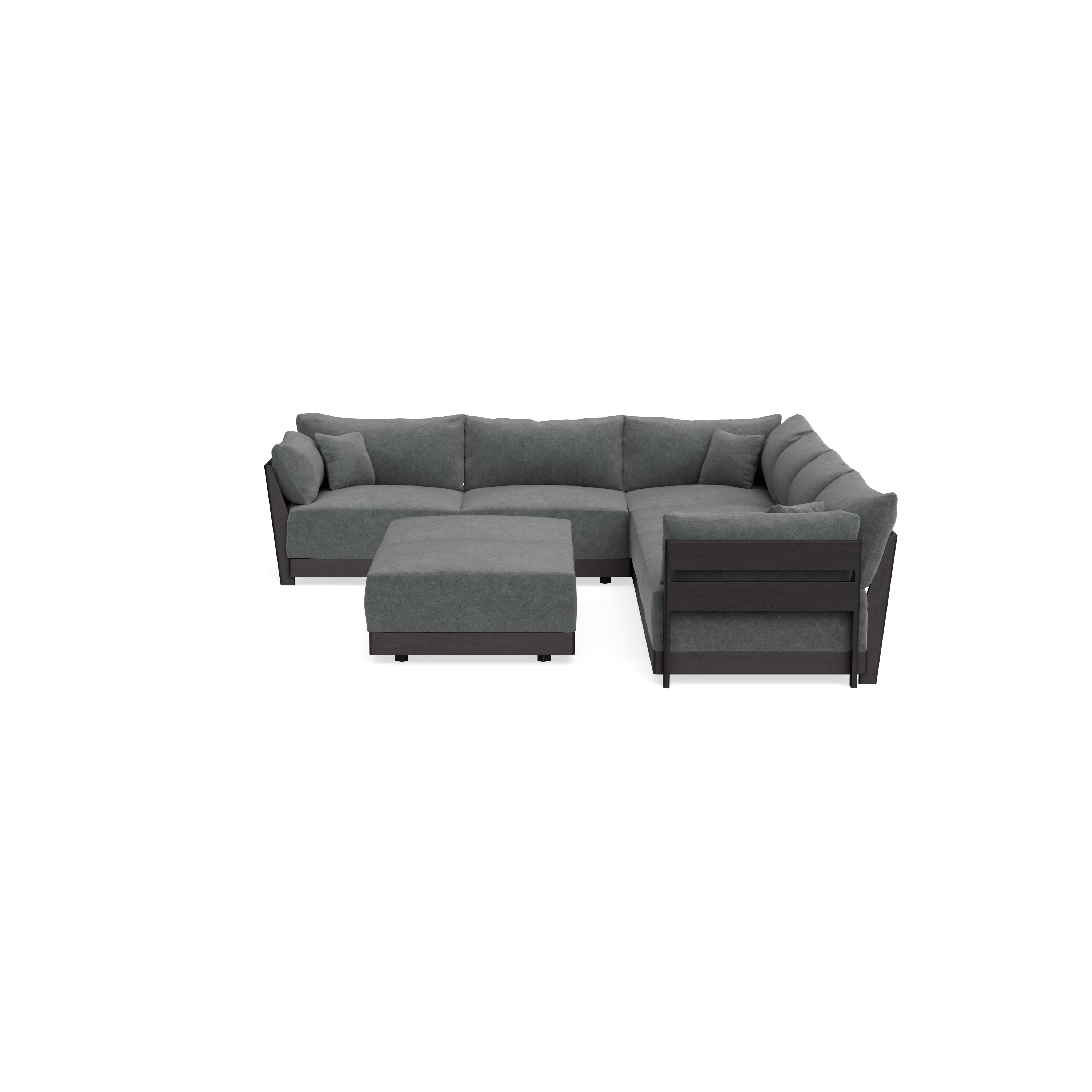 Modular Bondi Black 6-Seater Corner Sectional + Bench Ottoman in Chimney Gray | Memory Foam Blend