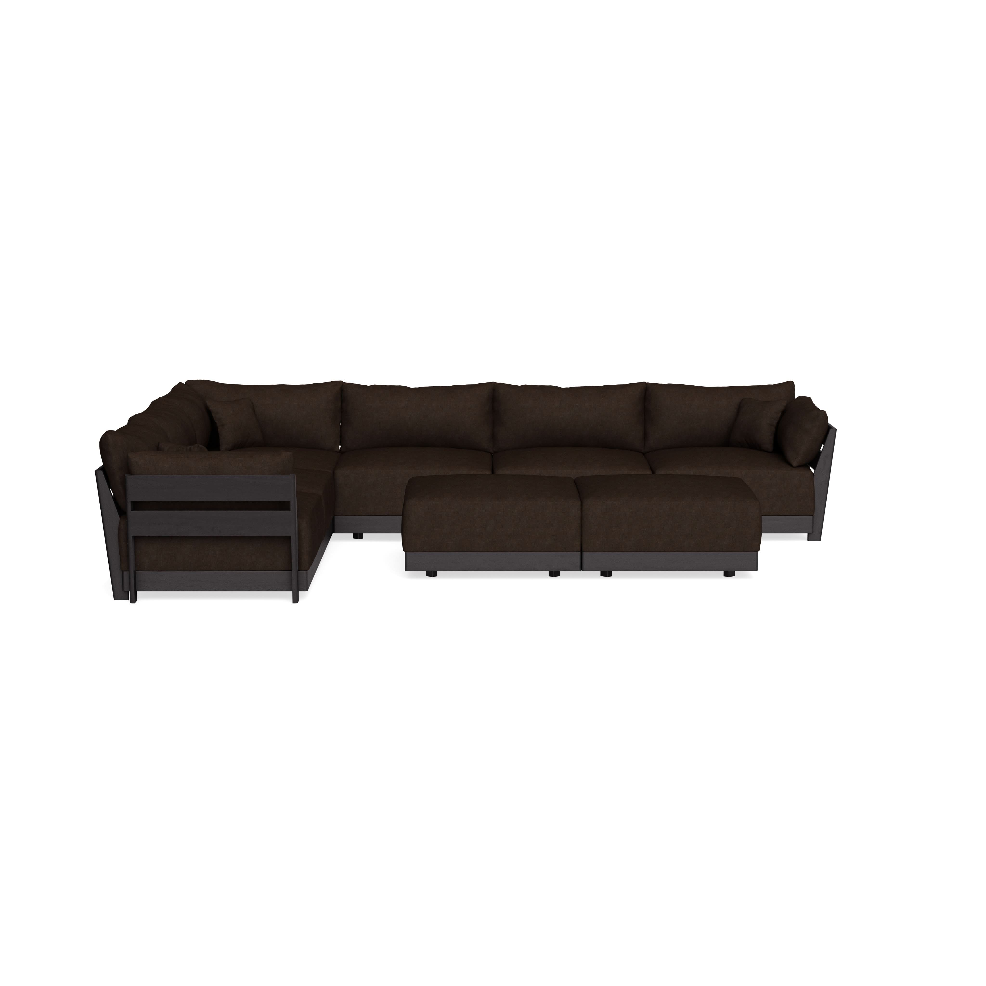 Modular Bondi Black 6-Seater Corner Sectional + Bench Ottoman in Espresso | Memory Foam Blend