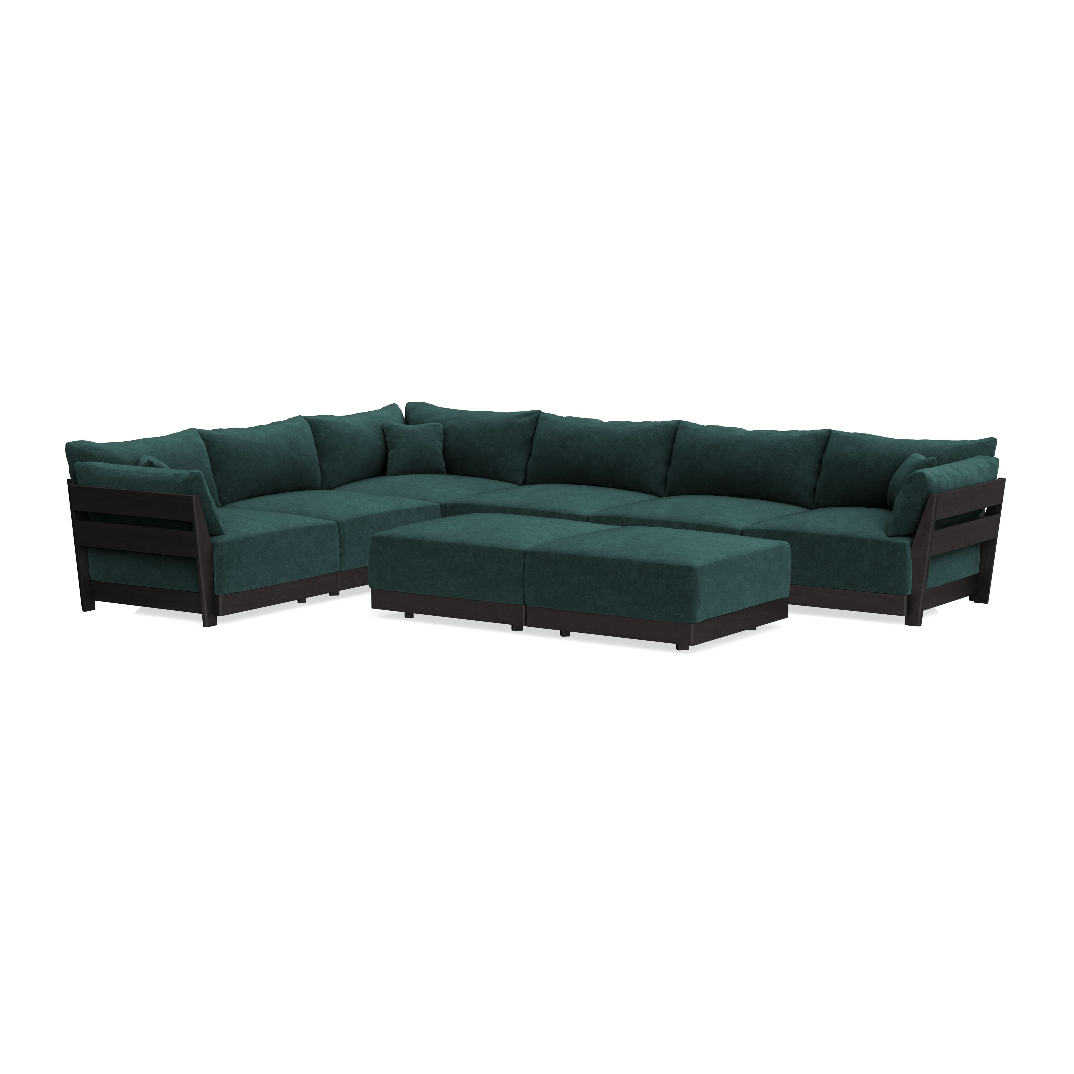 Modular Bondi Black 6-Seater Corner Sectional + Bench Ottoman in Harbor Blue | Memory Foam Blend