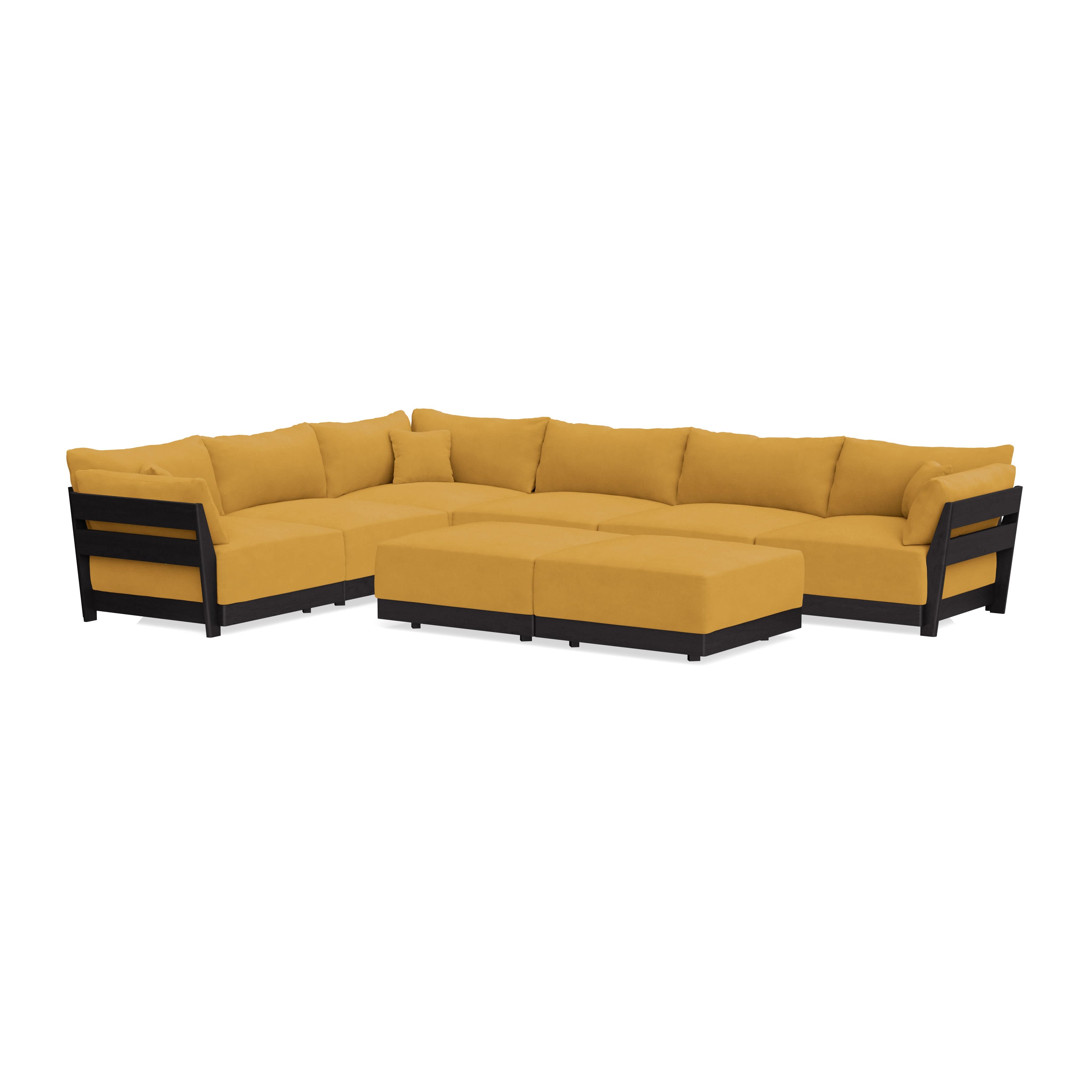 Modular Bondi Black 6-Seater Corner Sectional + Bench Ottoman in Honey | Memory Foam Blend