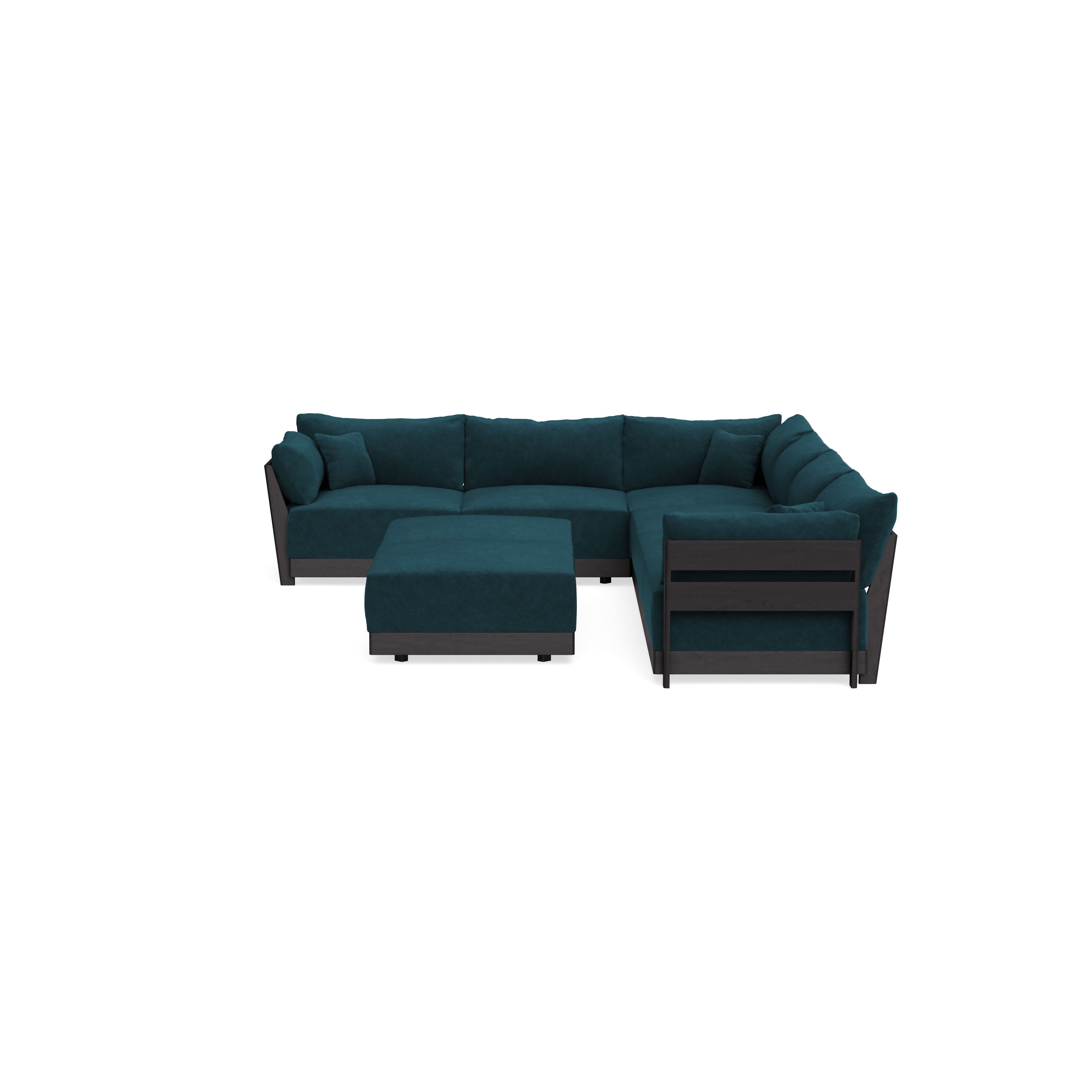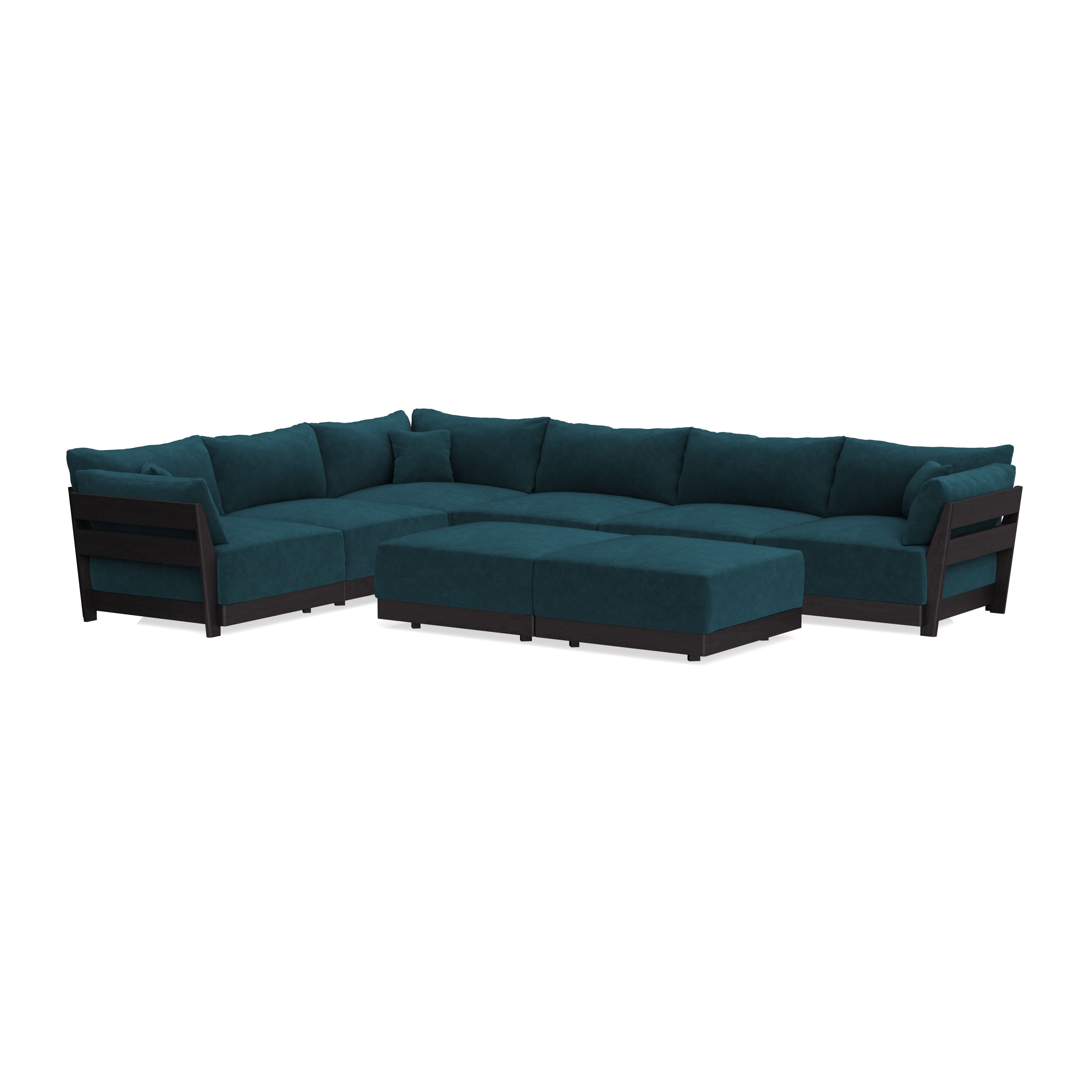 Modular Bondi Black 6-Seater Corner Sectional + Bench Ottoman in Indigo | Classic Blend