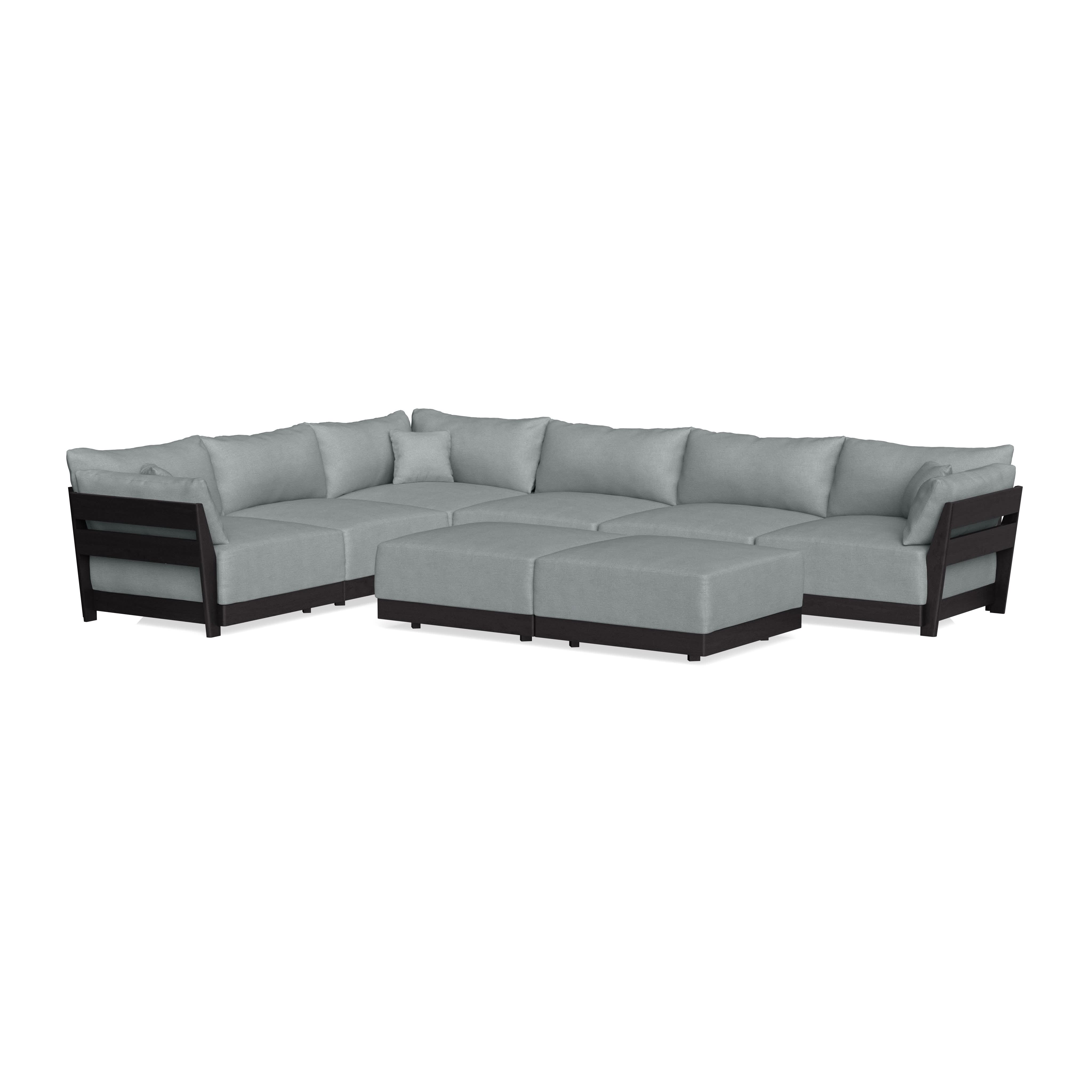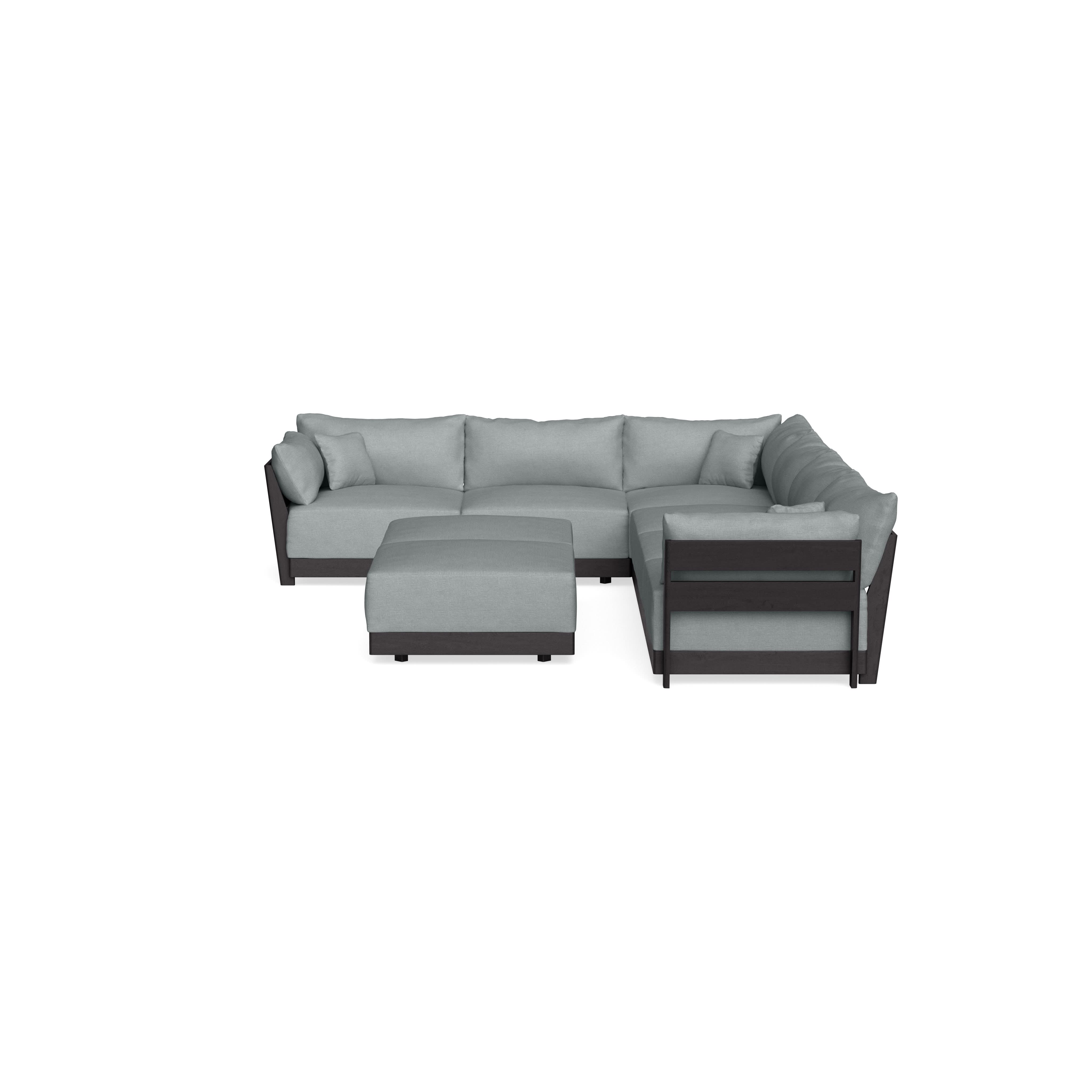 Modular Bondi Black 6-Seater Corner Sectional + Bench Ottoman in Light Steel | Memory Foam Blend