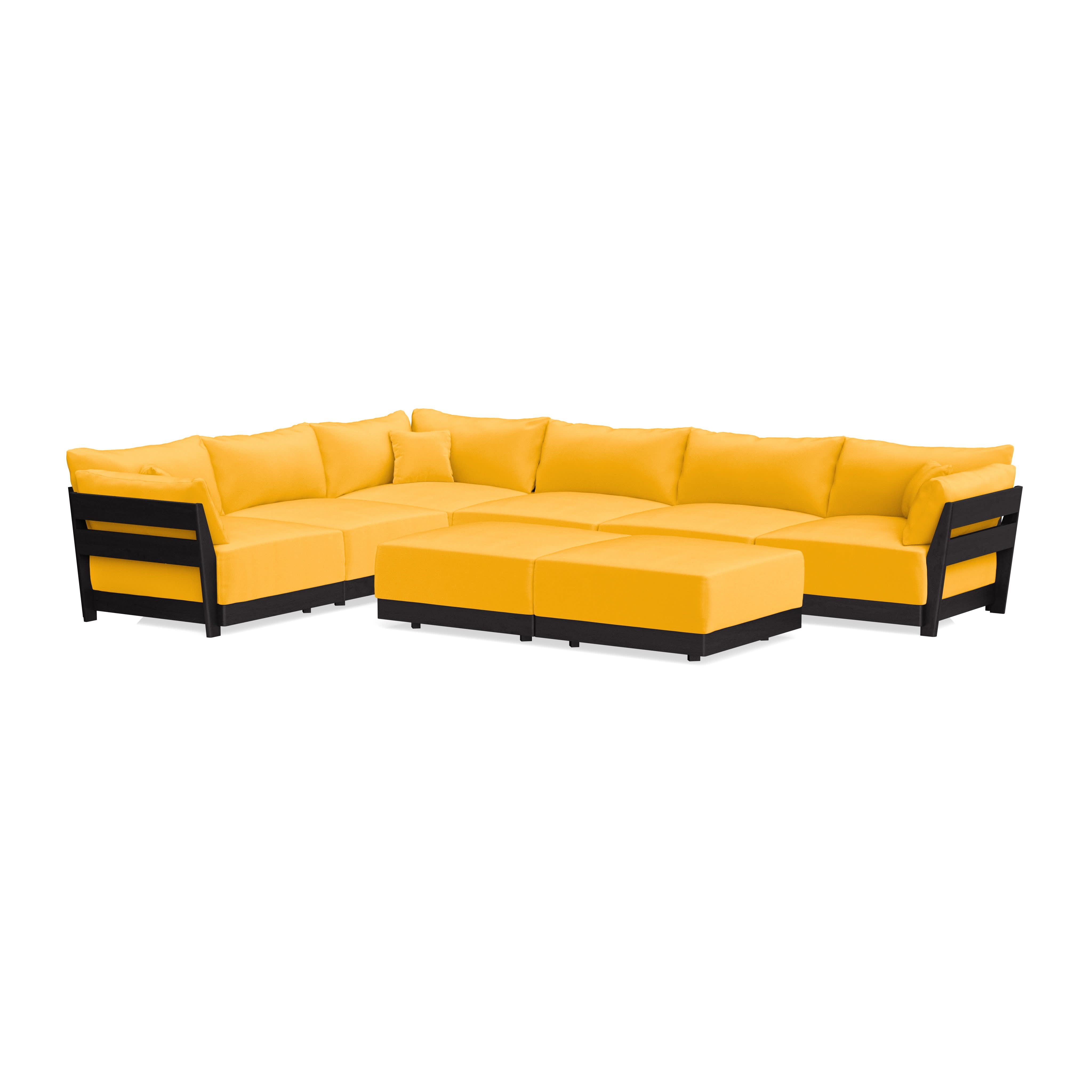 Modular Bondi Black 6-Seater Corner Sectional + Bench Ottoman in Marigold | Memory Foam Blend