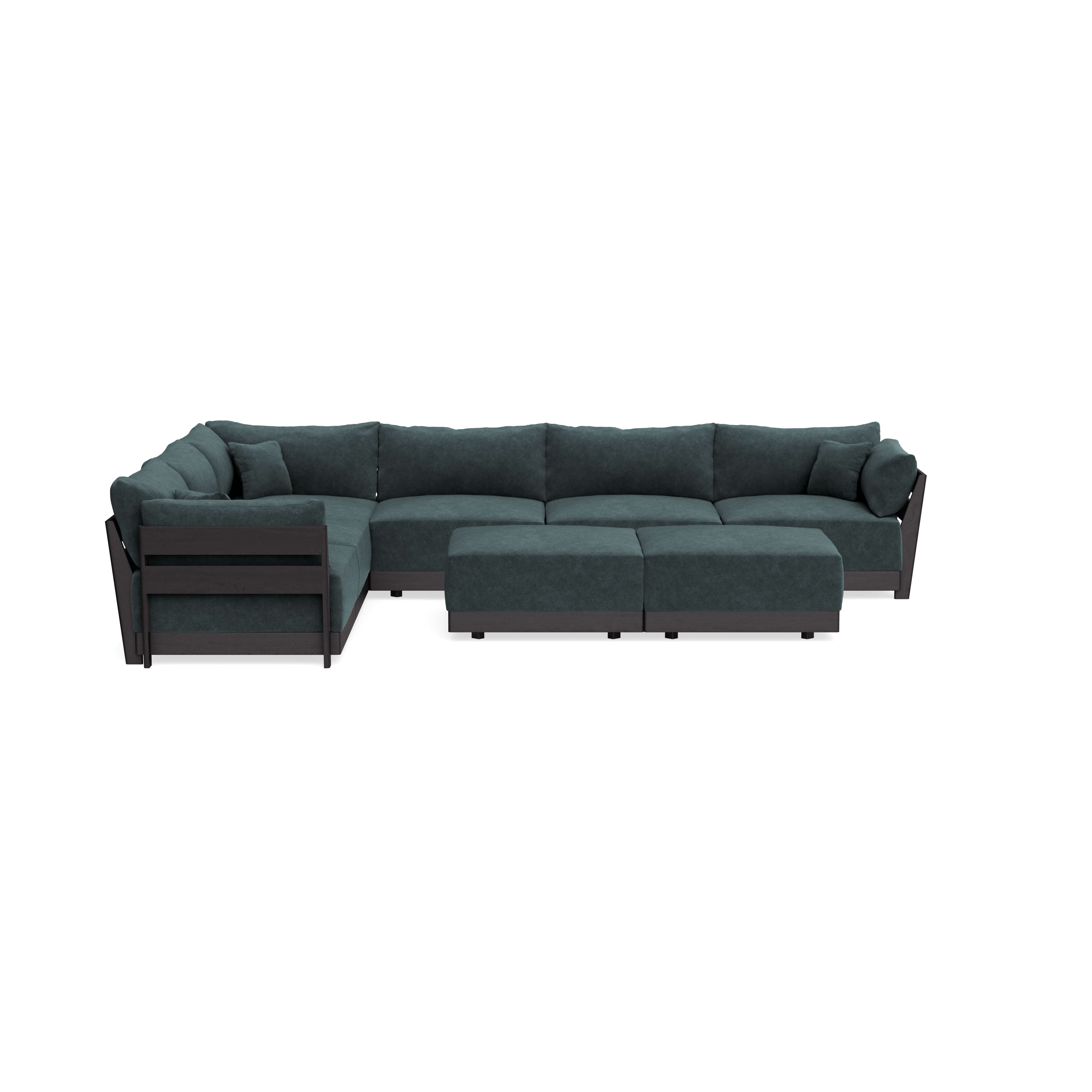 Modular Bondi Black 6-Seater Corner Sectional + Bench Ottoman in Nightfall | Classic Blend
