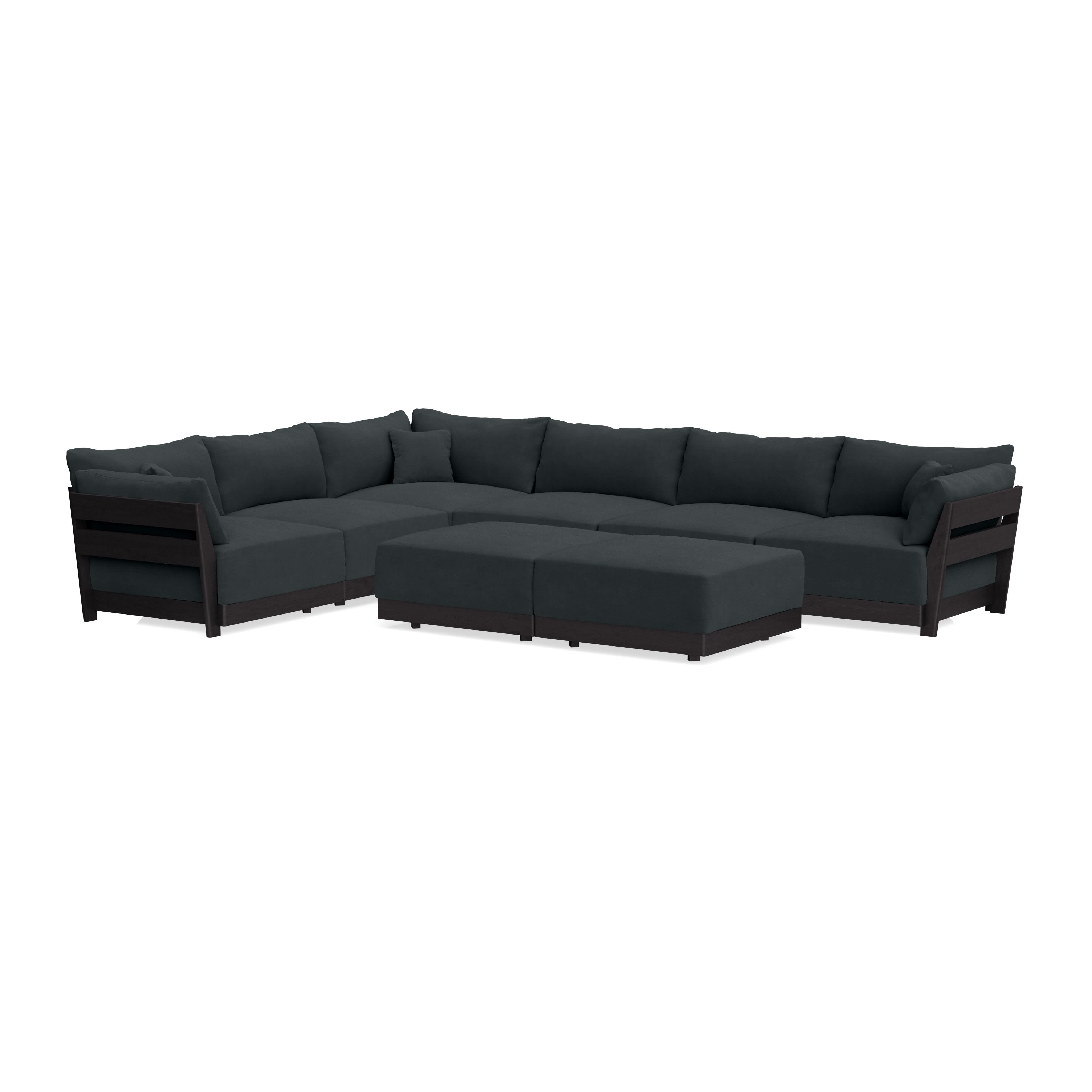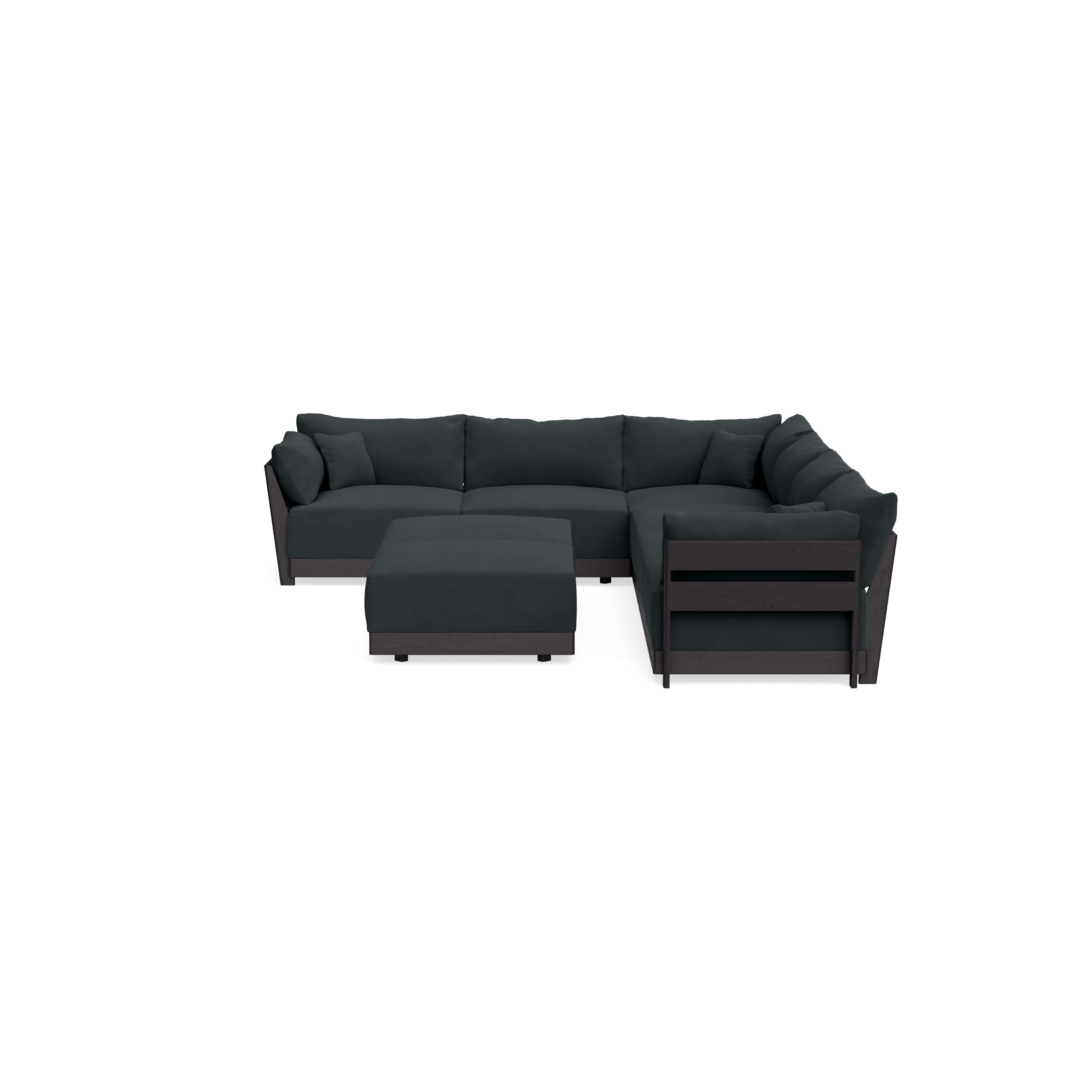 Modular Bondi Black 6-Seater Corner Sectional + Bench Ottoman in Obsidian | Memory Foam Blend