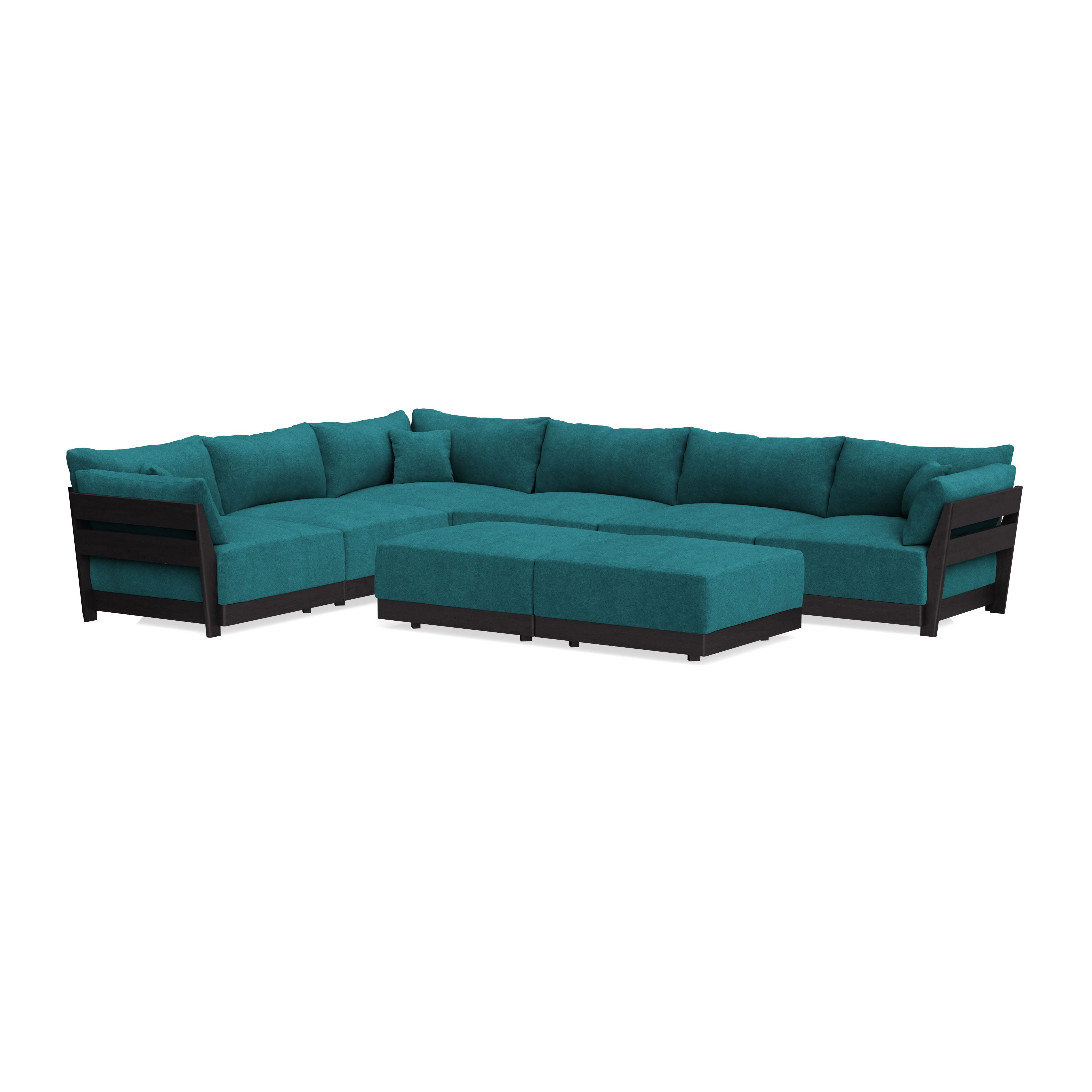 Modular Bondi Black 6-Seater Corner Sectional + Bench Ottoman in Ocean | Memory Foam Blend