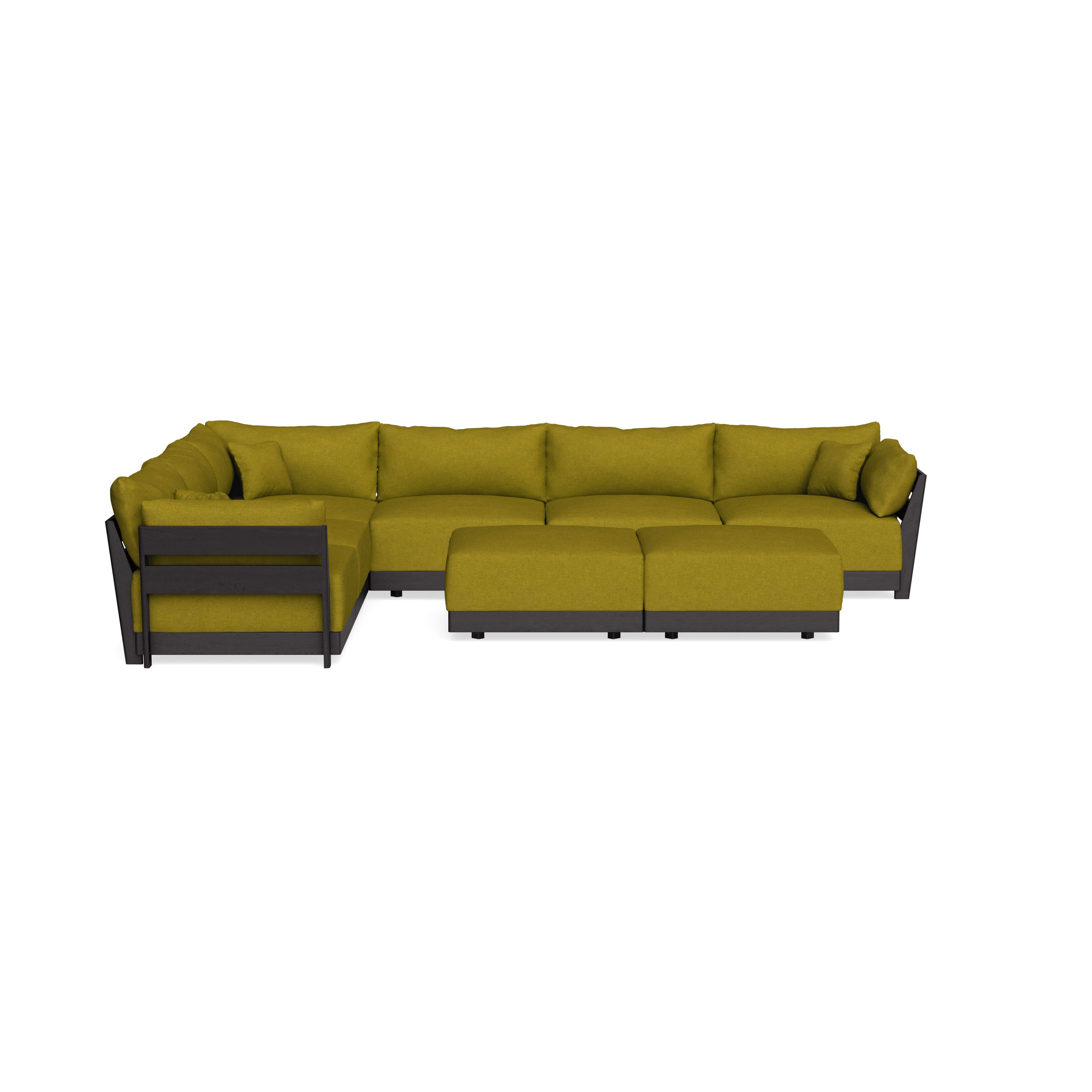 Modular Bondi Black 6-Seater Corner Sectional + Bench Ottoman in Olive Green | Classic Blend
