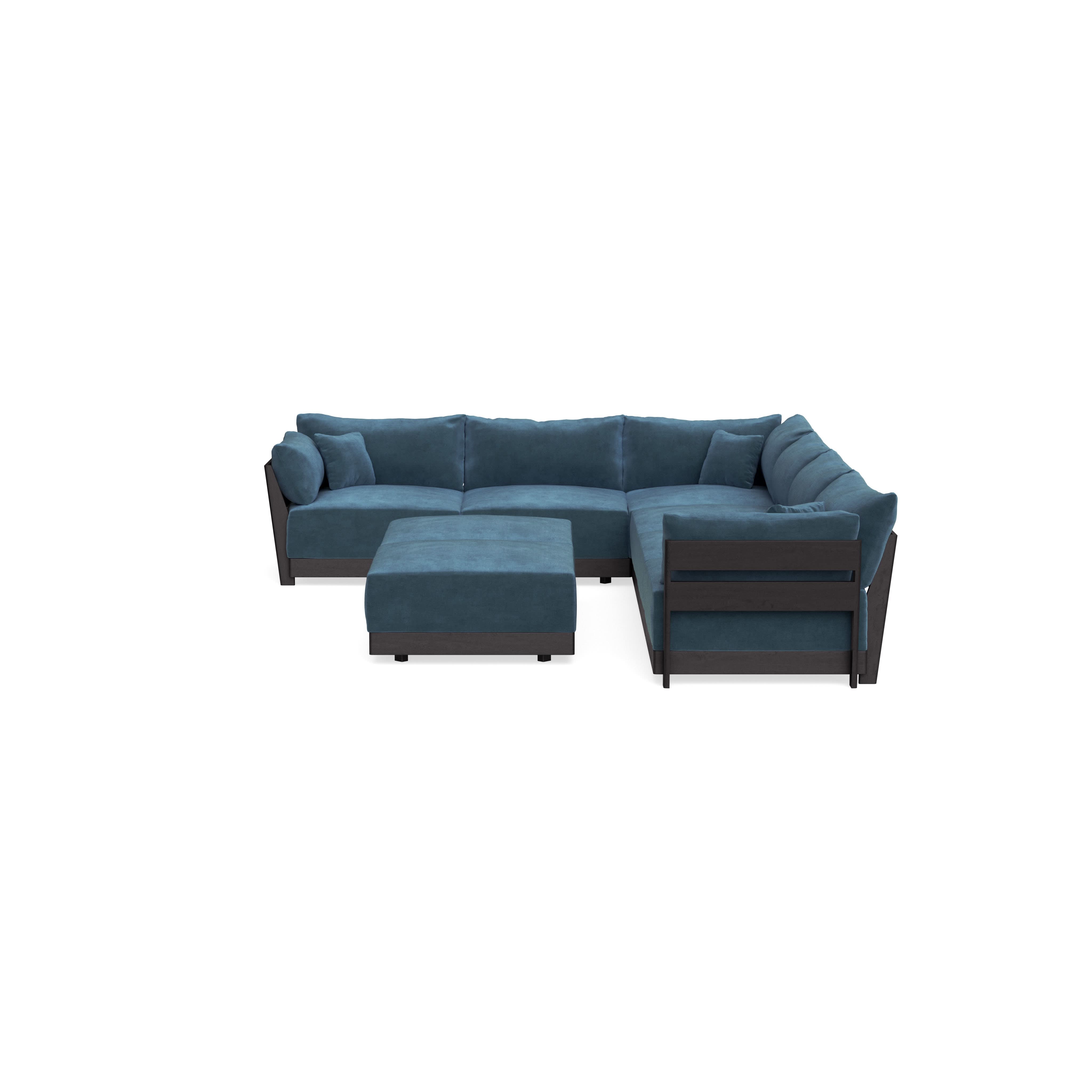 Modular Bondi Black 6-Seater Corner Sectional + Bench Ottoman in Oxford Blue | Classic Blend