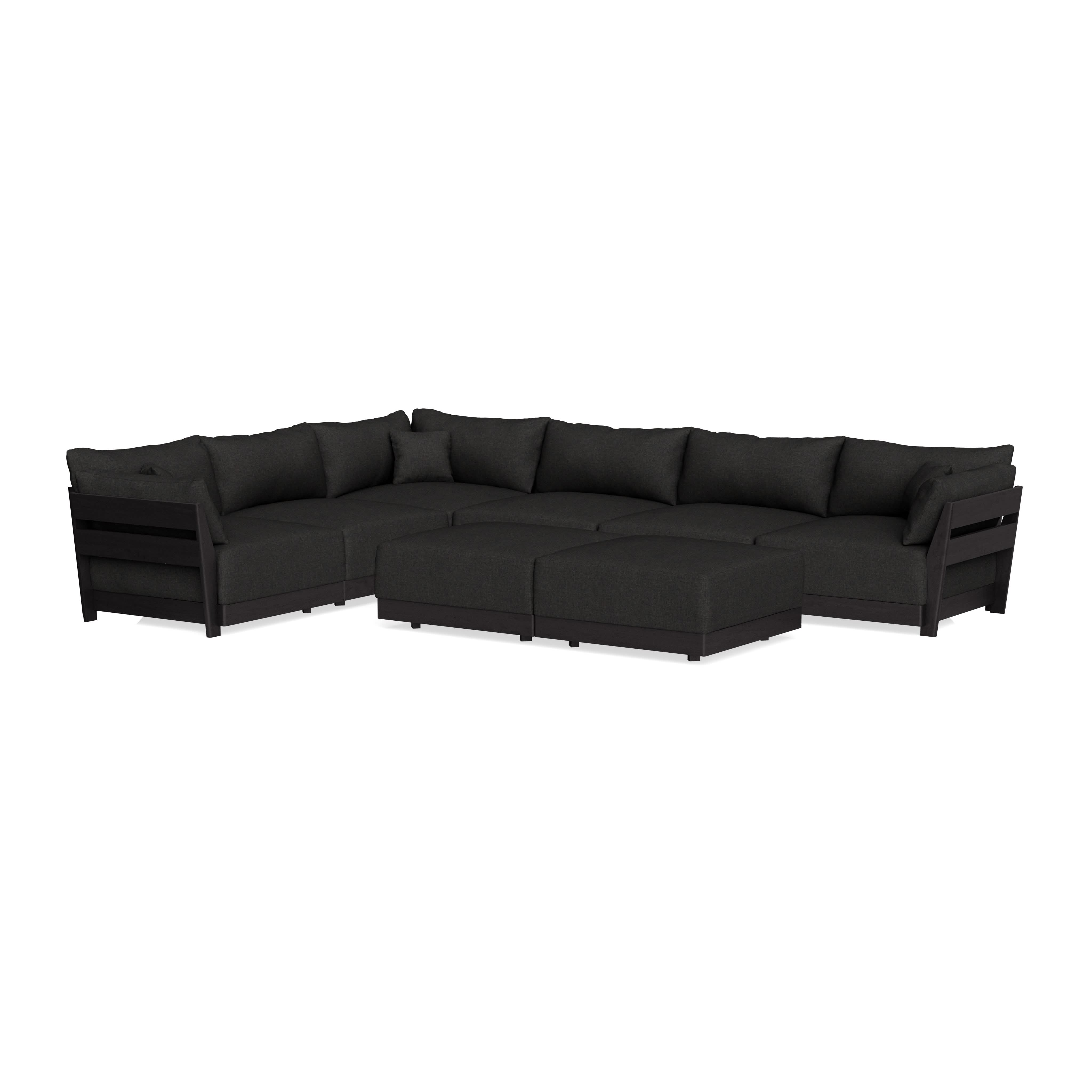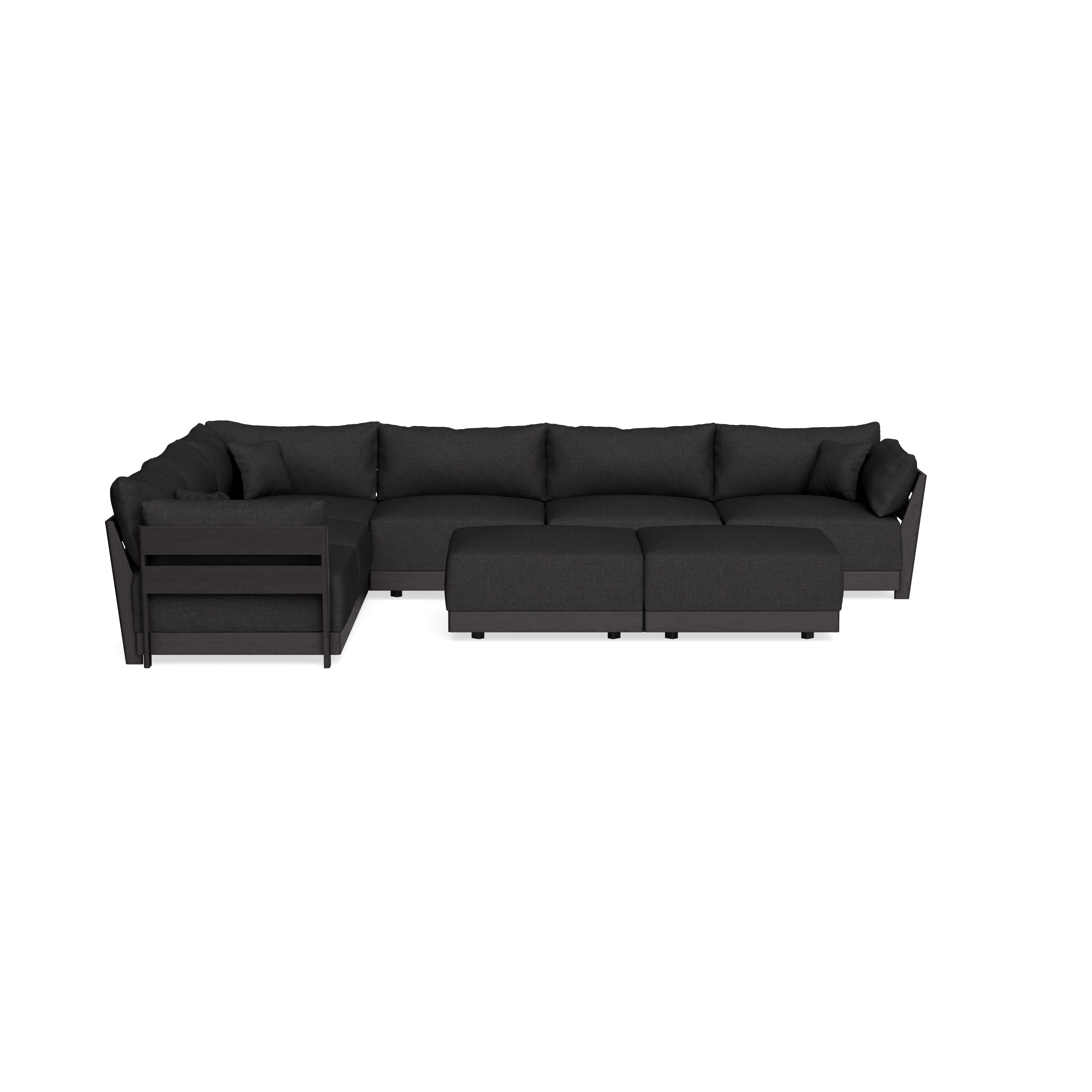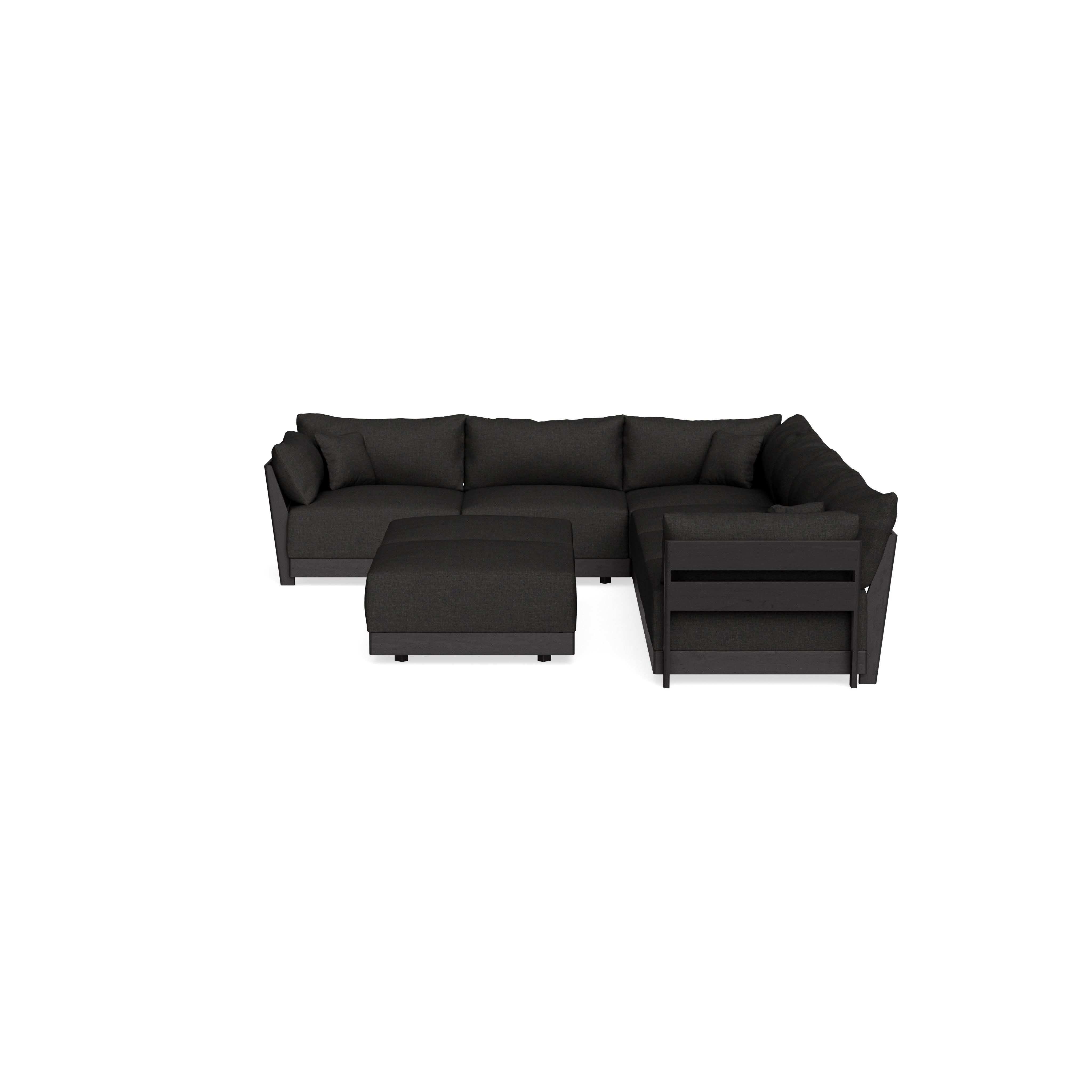 Modular Bondi Black 6-Seater Corner Sectional + Bench Ottoman in Peppercorn | Memory Foam Blend