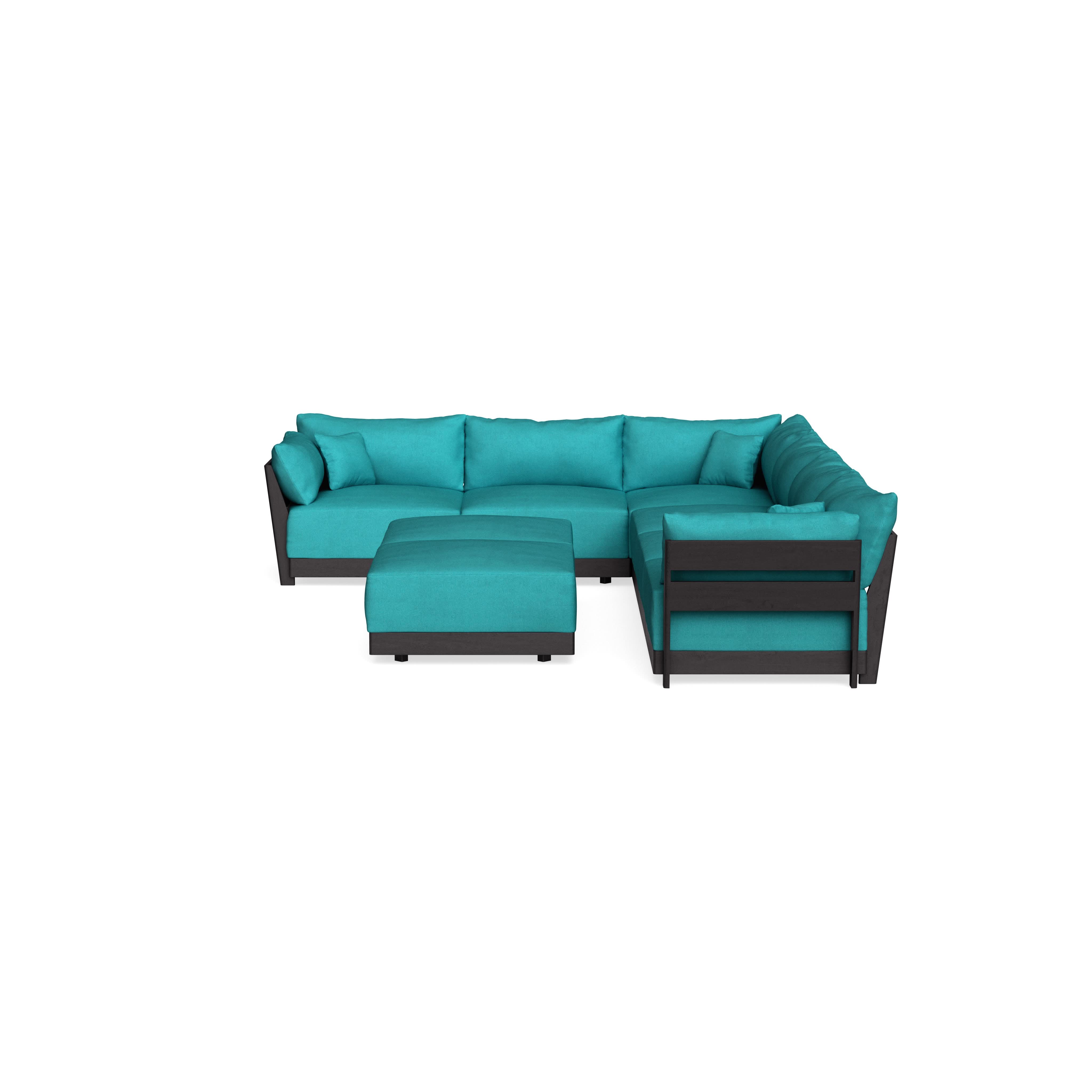 Modular Bondi Black 6-Seater Corner Sectional + Bench Ottoman in Pool | Memory Foam Blend