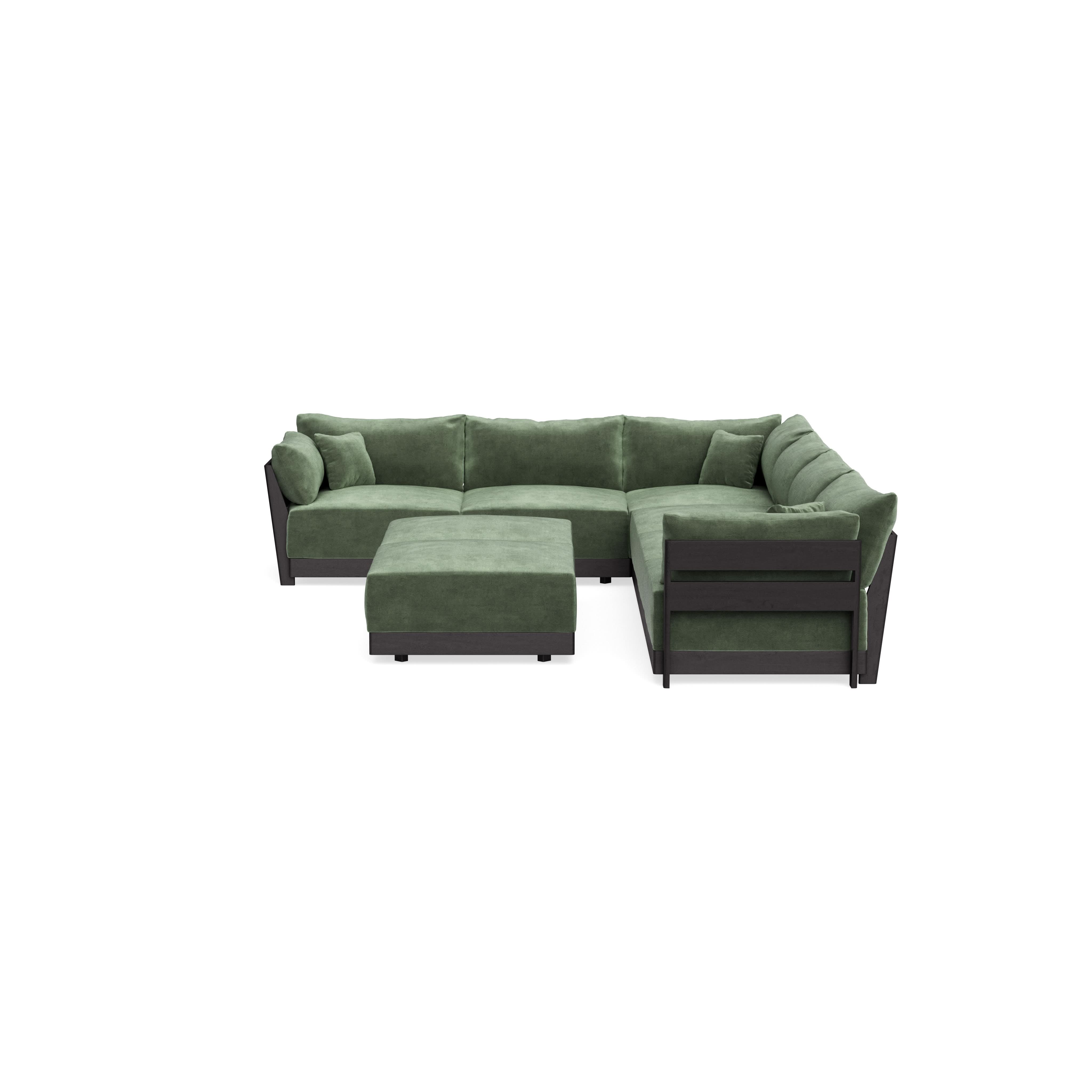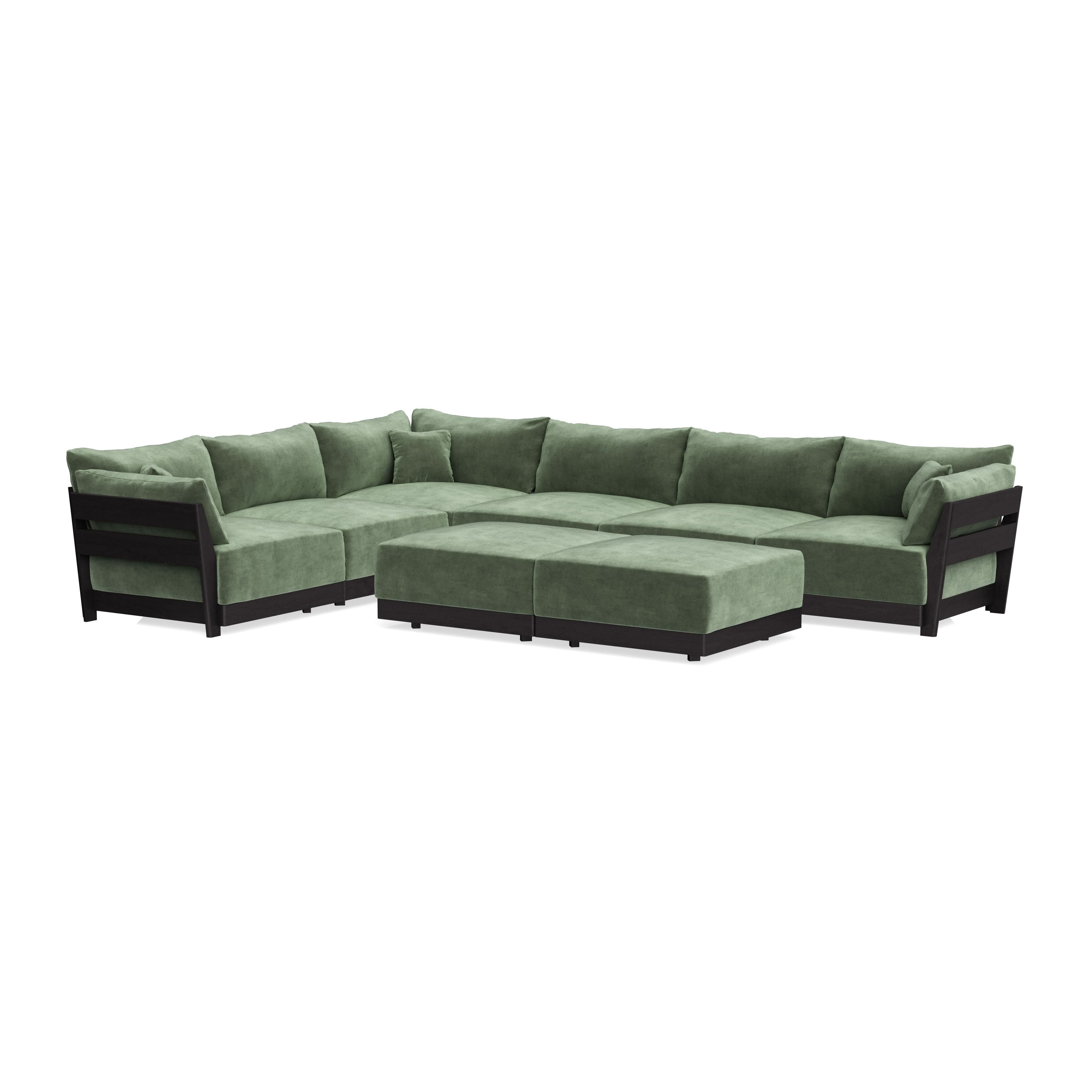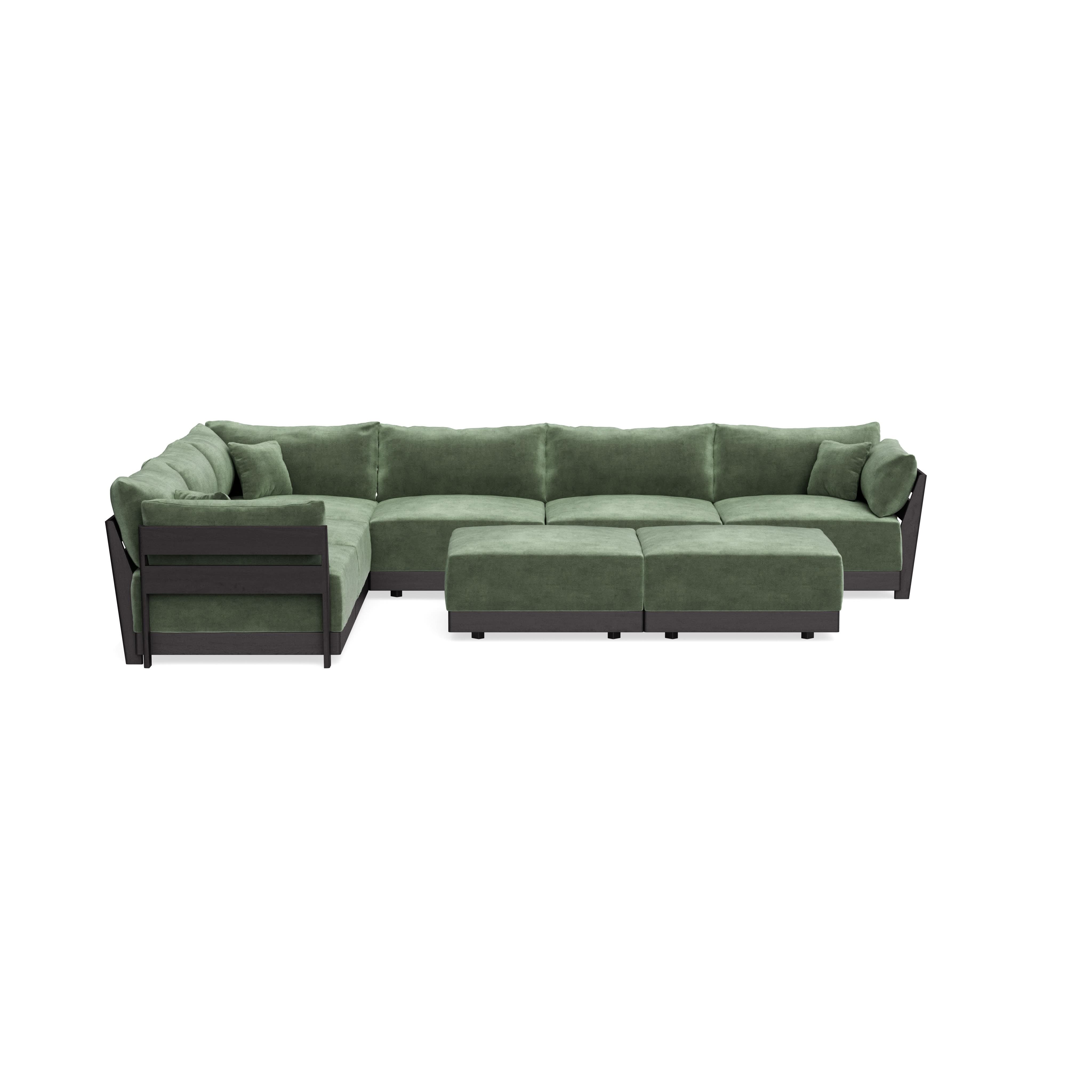 Modular Bondi Black 6-Seater Corner Sectional + Bench Ottoman in Rosemary | Classic Blend