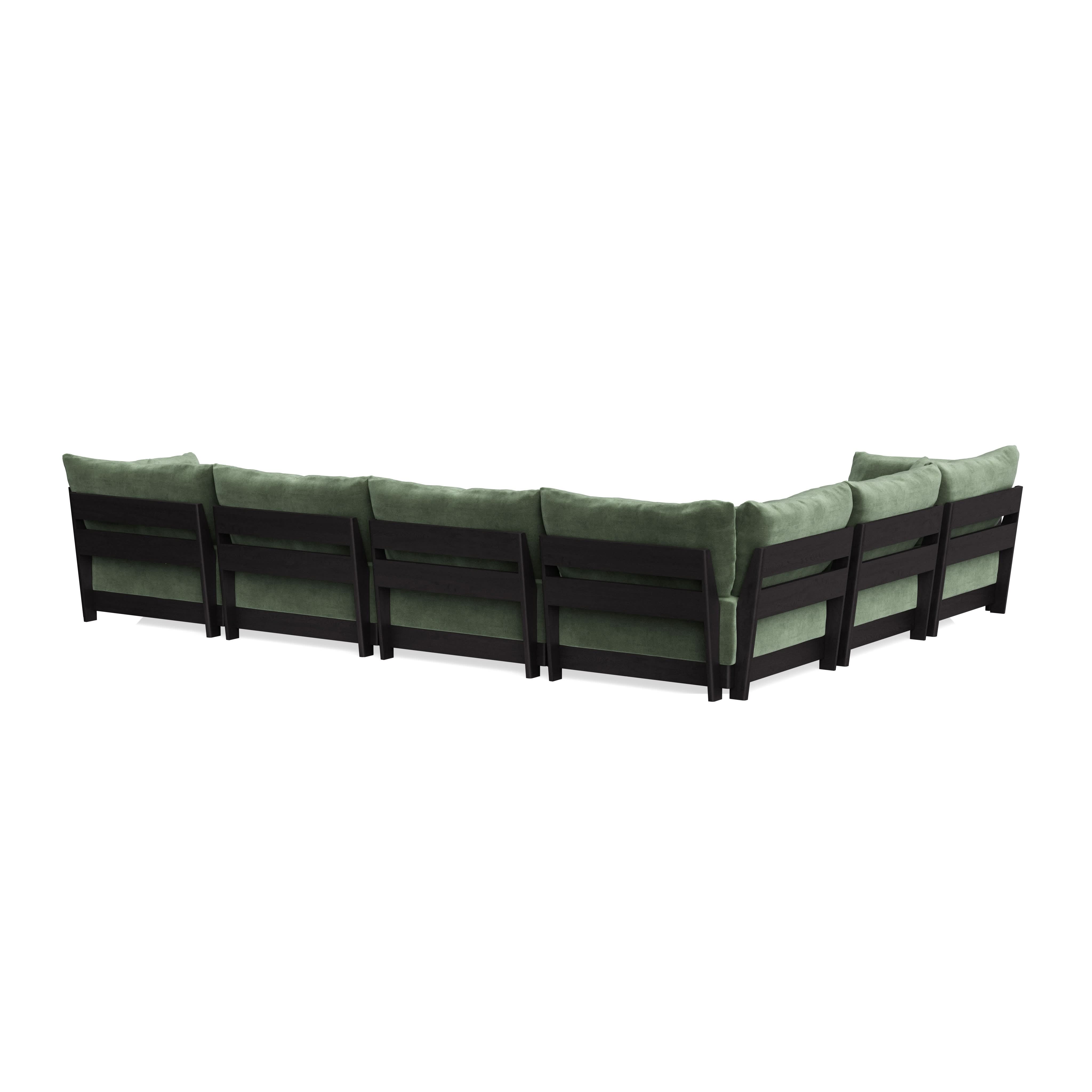 Modular Bondi Black 6-Seater Corner Sectional + Bench Ottoman in Rosemary | Memory Foam Blend