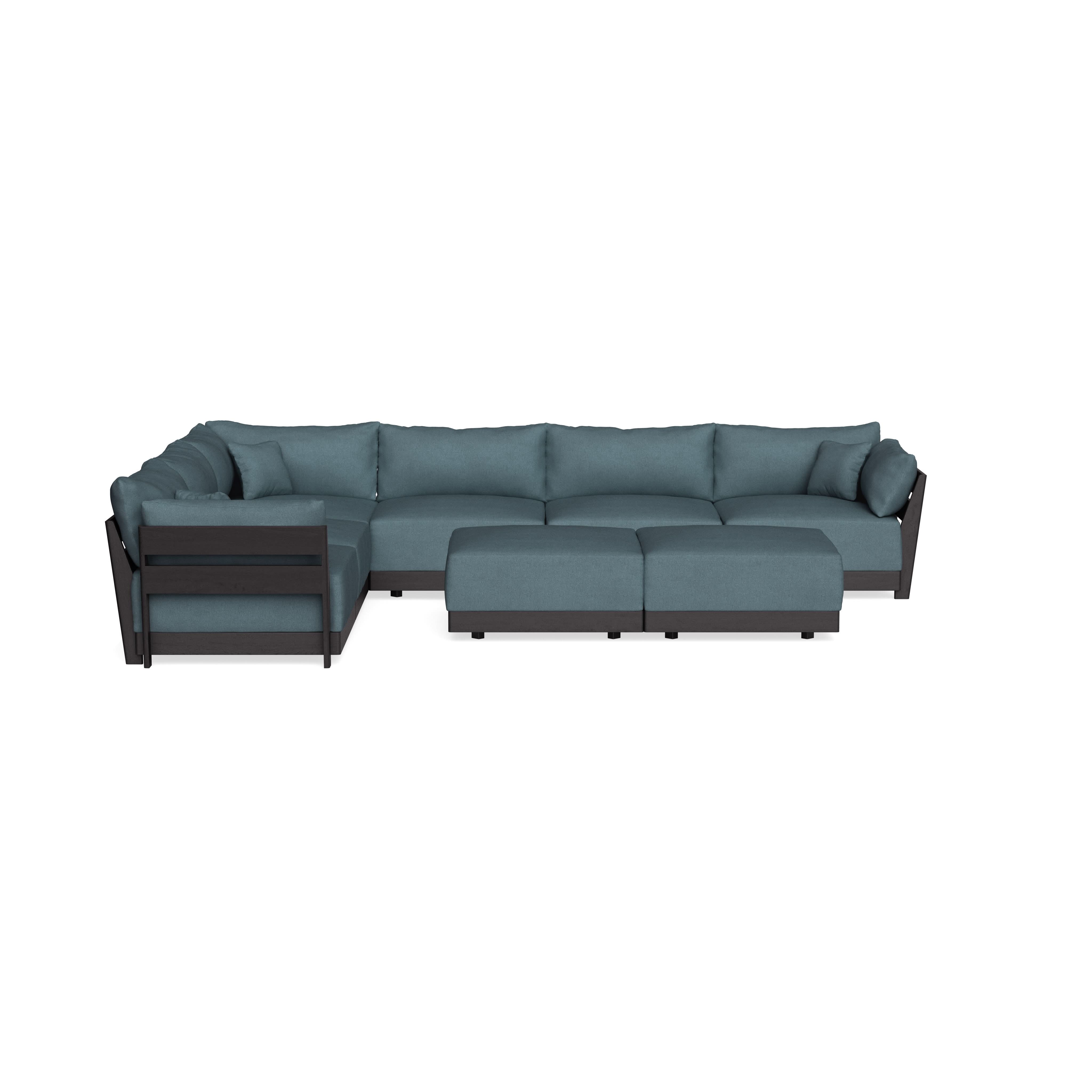 Modular Bondi Black 6-Seater Corner Sectional + Bench Ottoman in Slate Blue | Classic Blend
