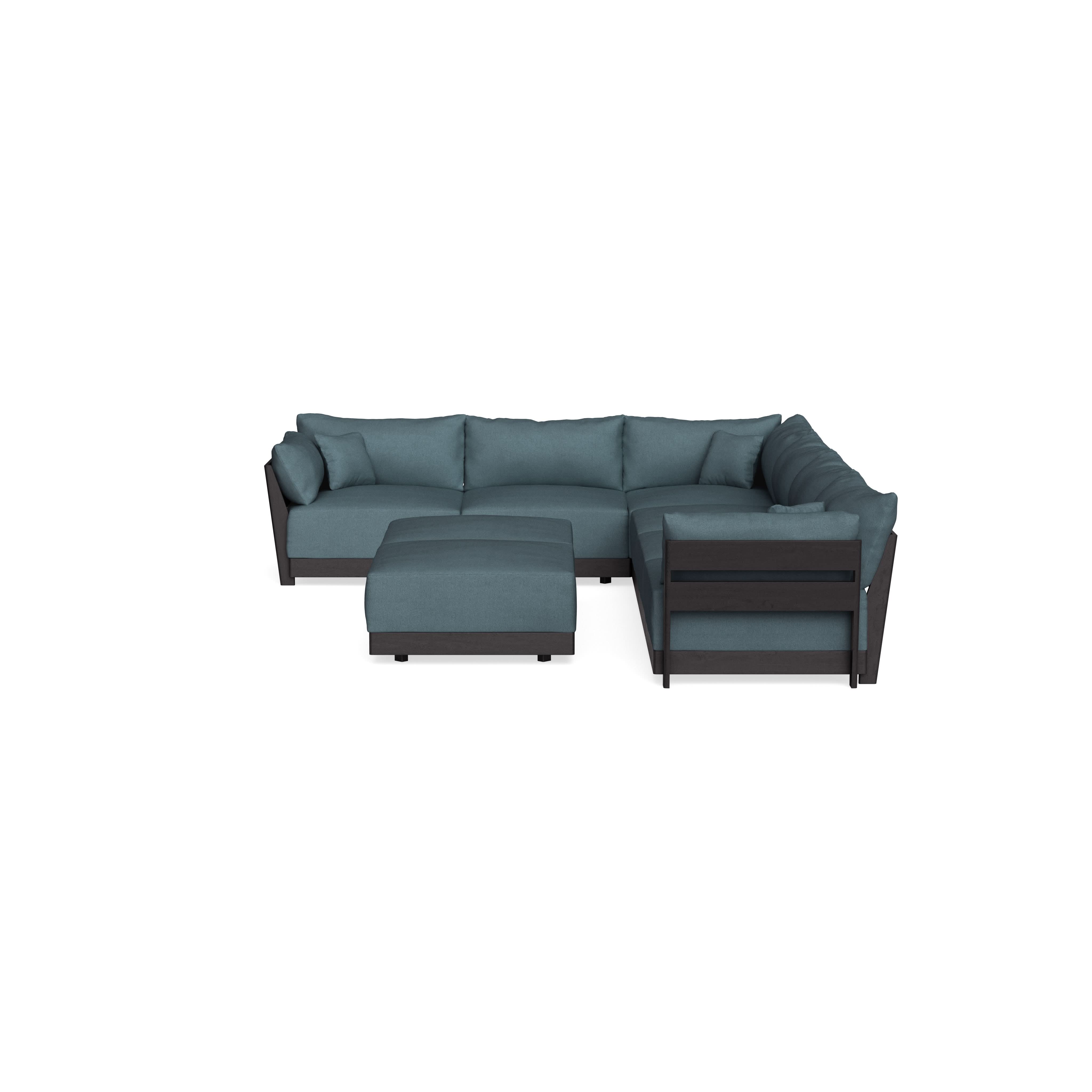 Modular Bondi Black 6-Seater Corner Sectional + Bench Ottoman in Slate Blue | Memory Foam Blend
